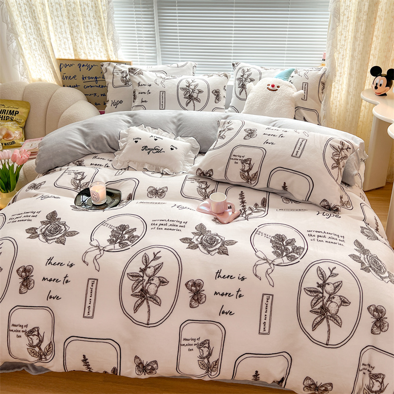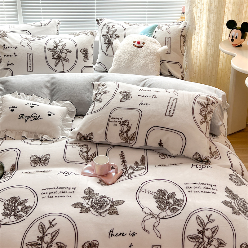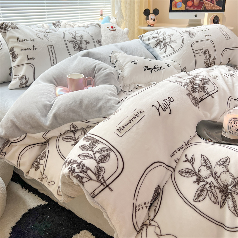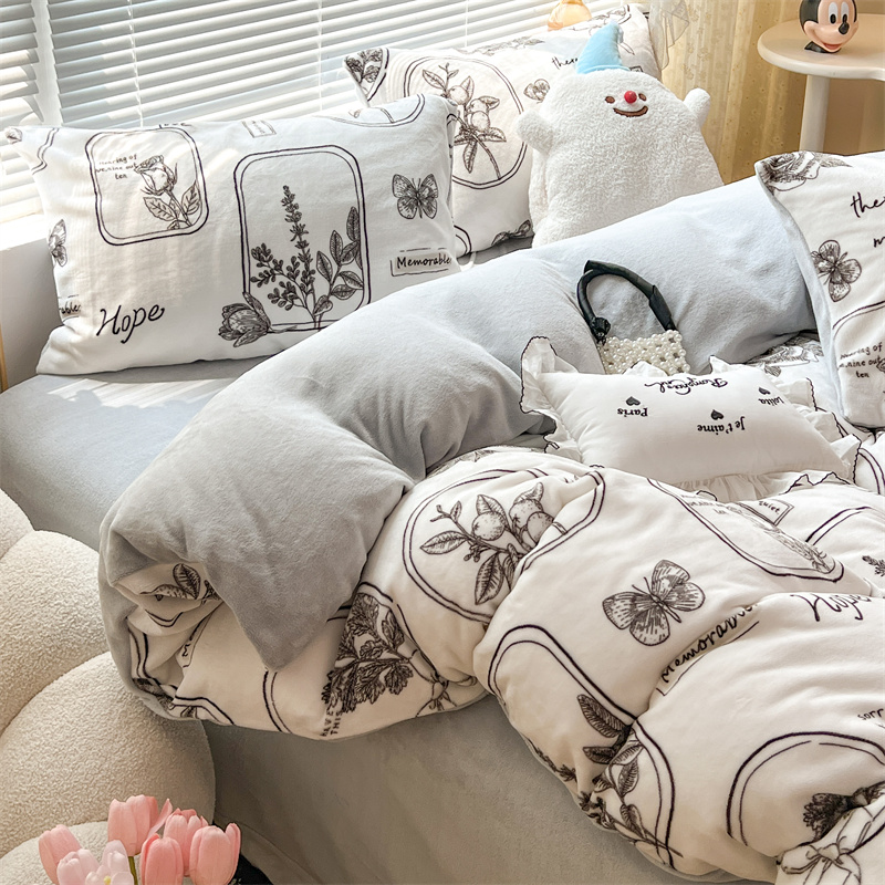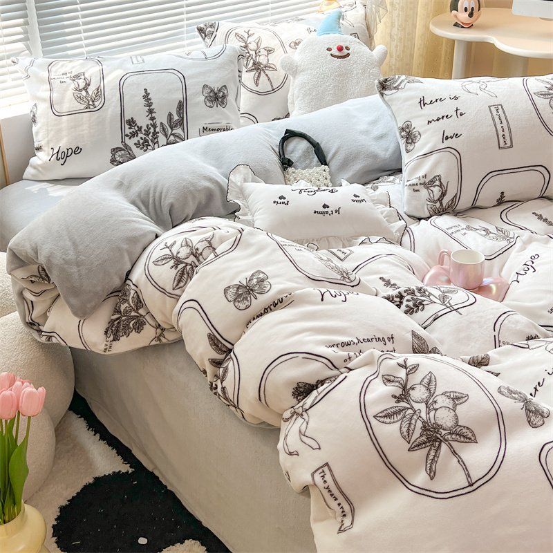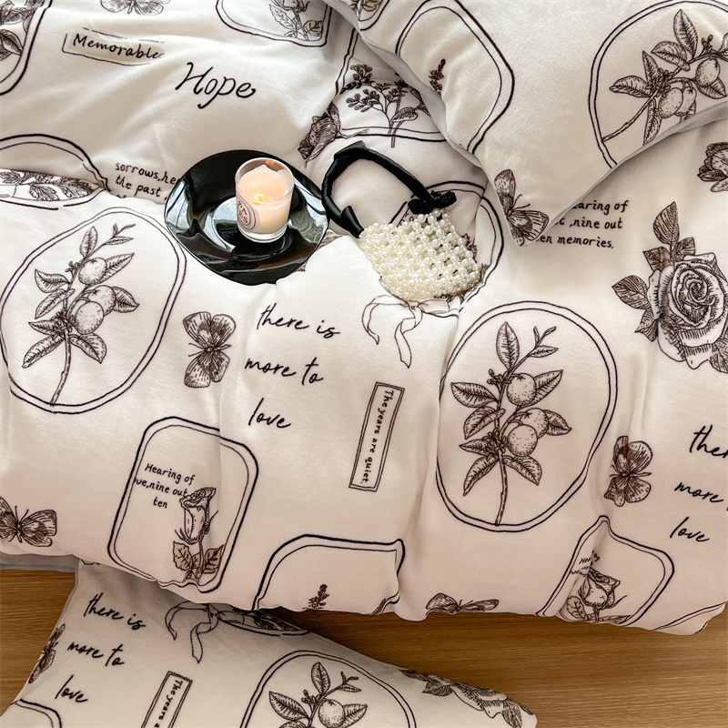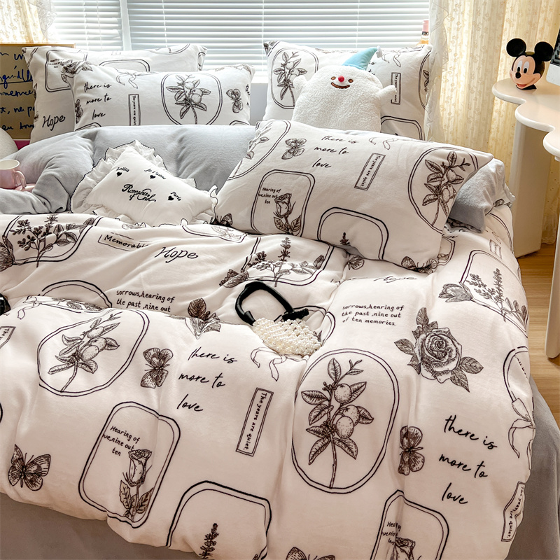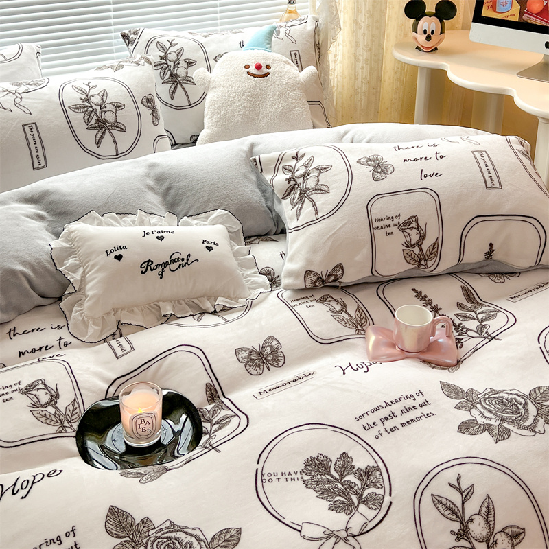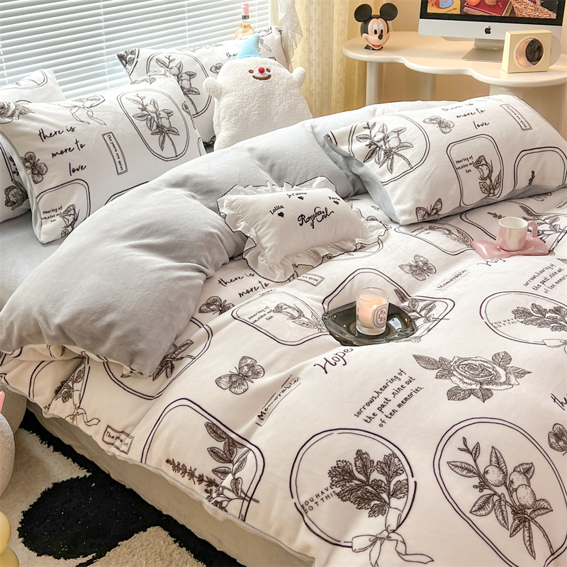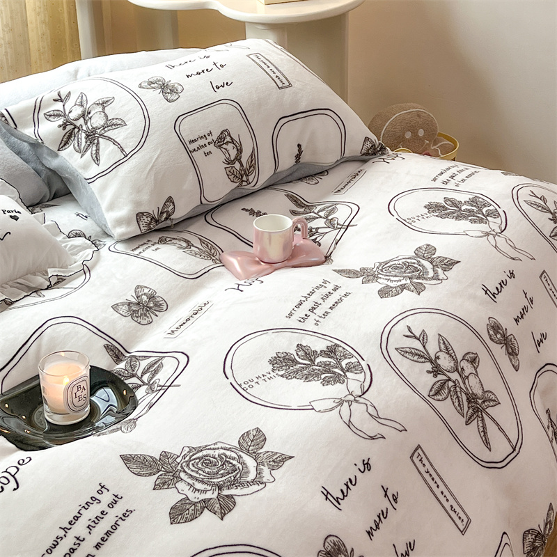 顾里家纺 新款ins少女保暖牛奶绒四件套第二批 素描园林