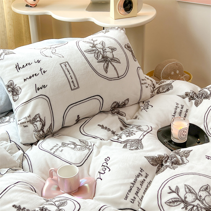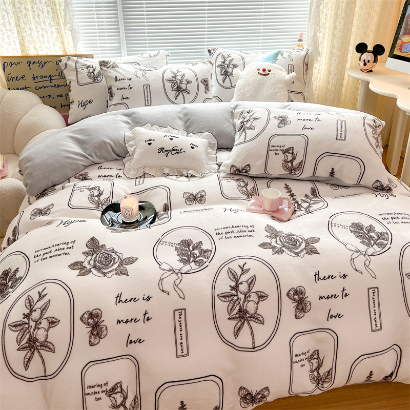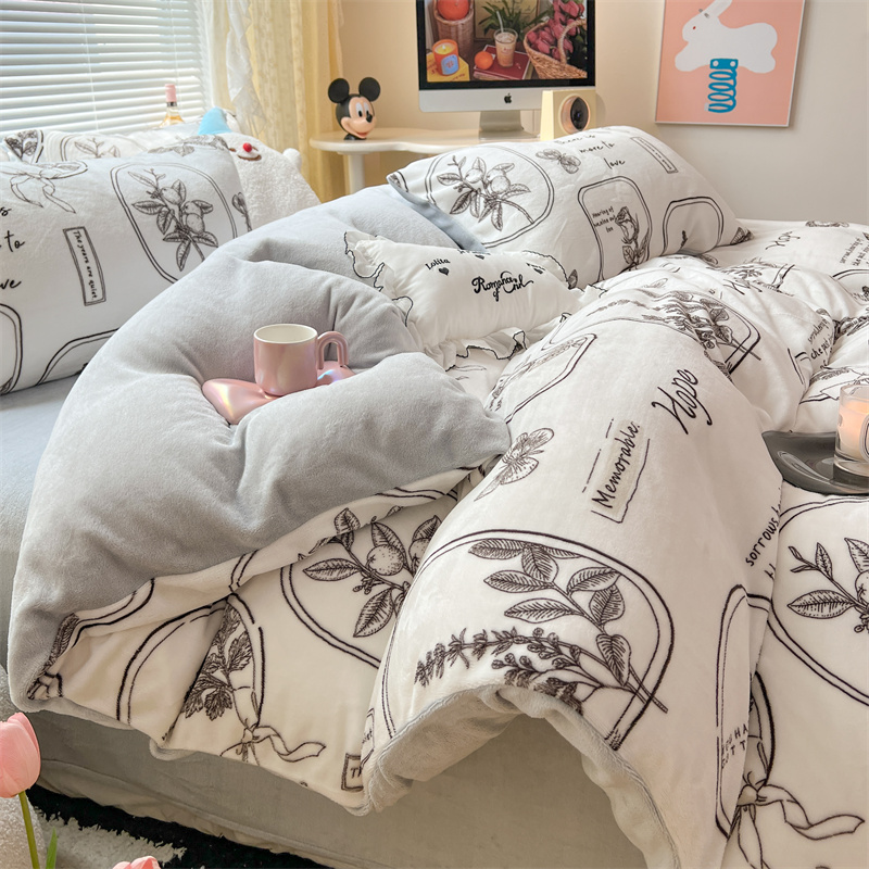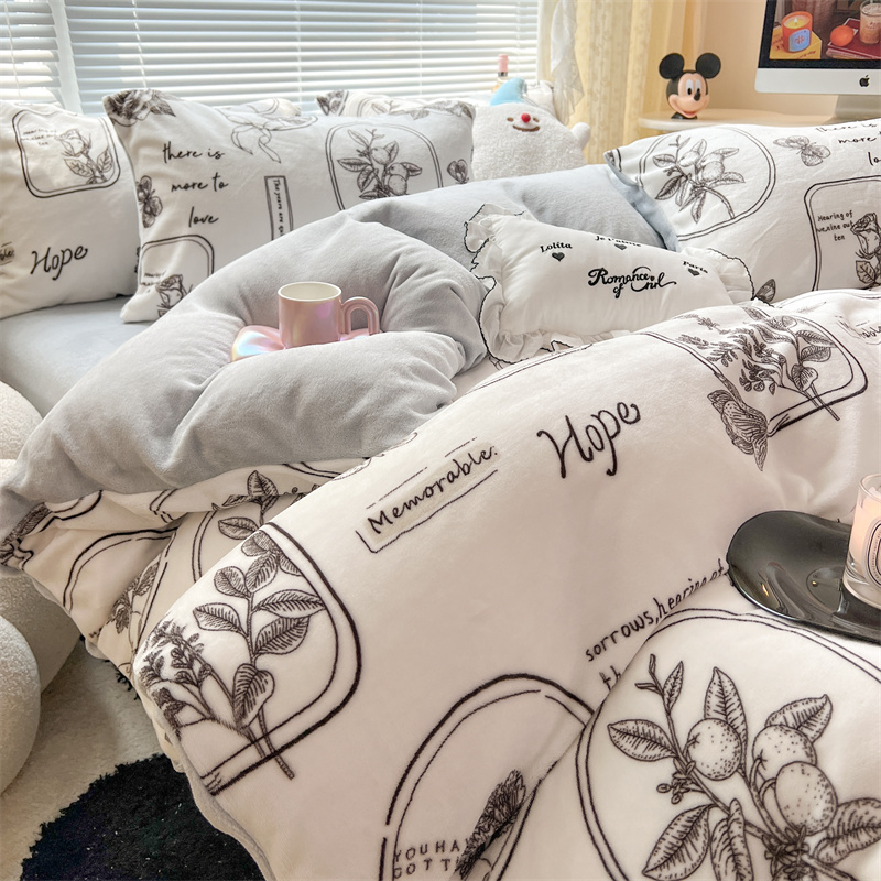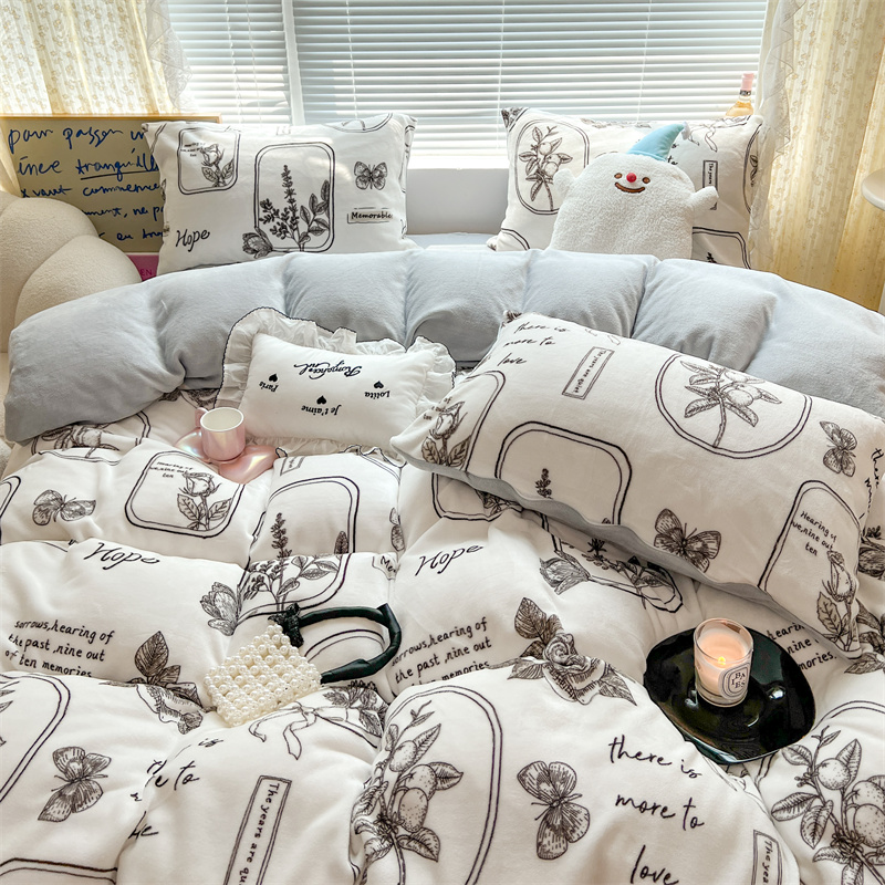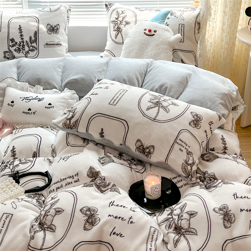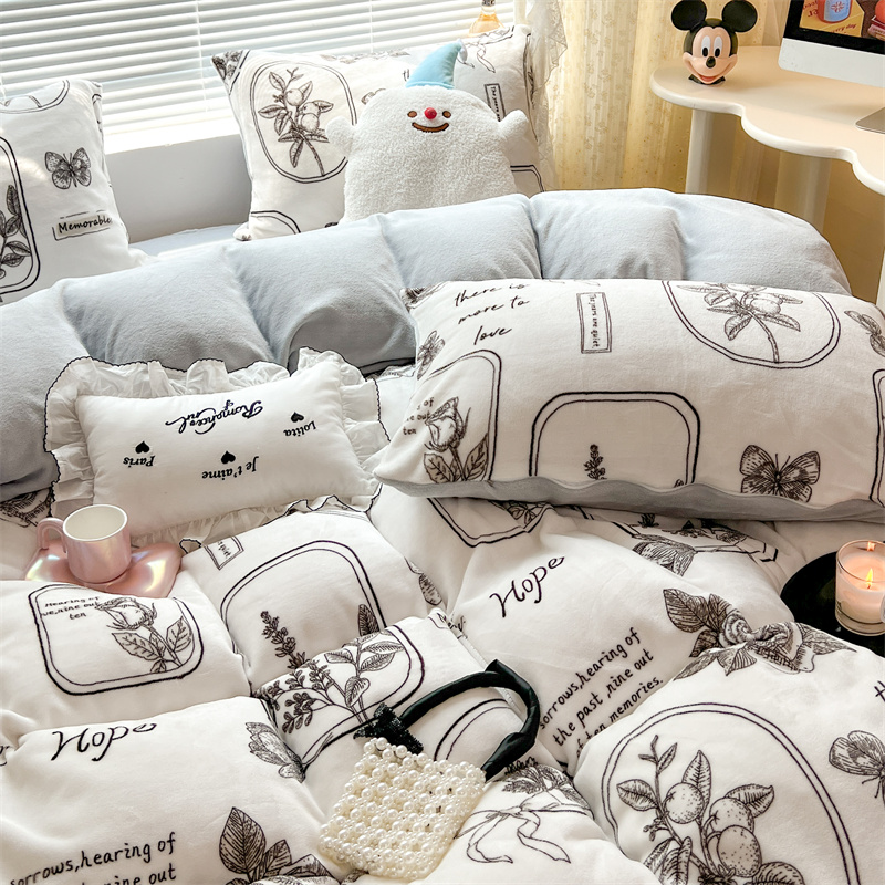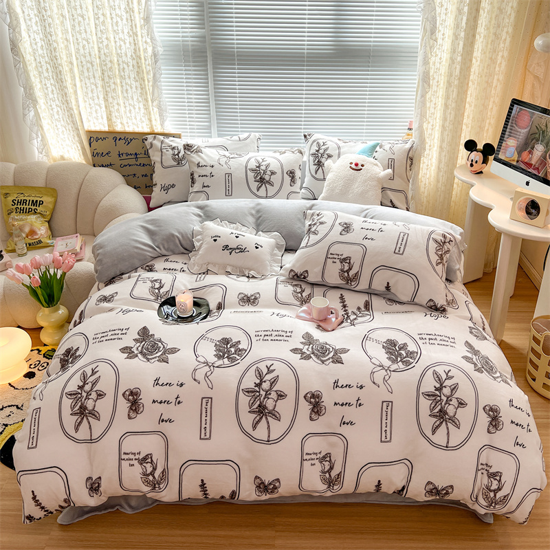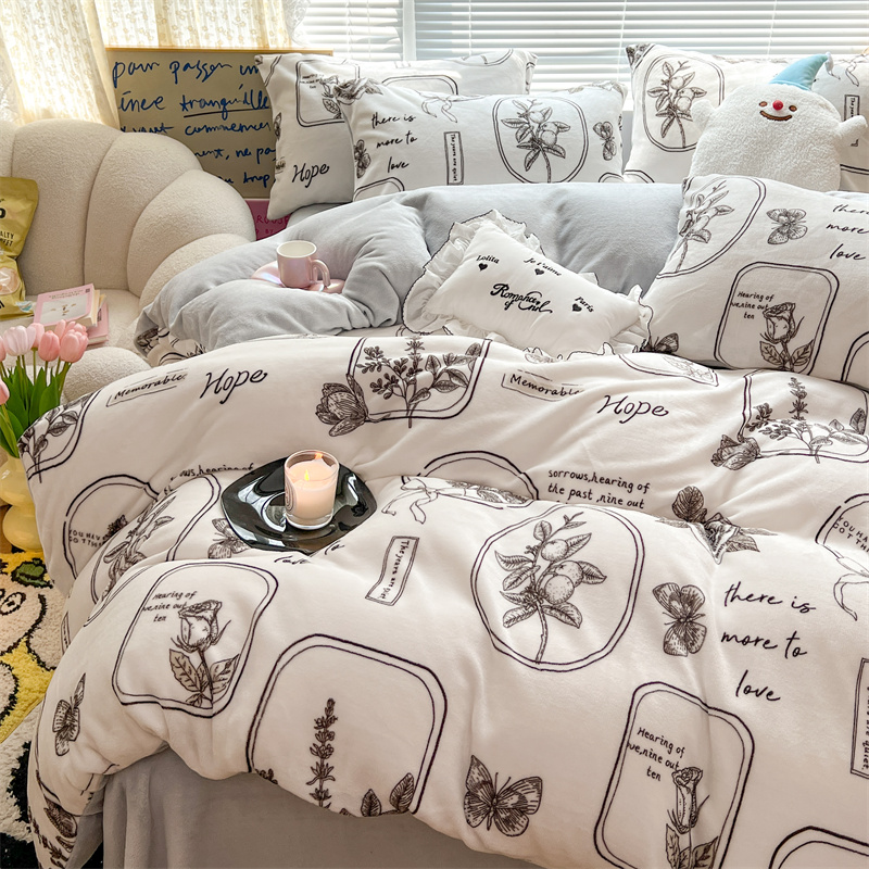 顾里家纺 新款ins少女保暖牛奶绒四件套第二批 素描园林