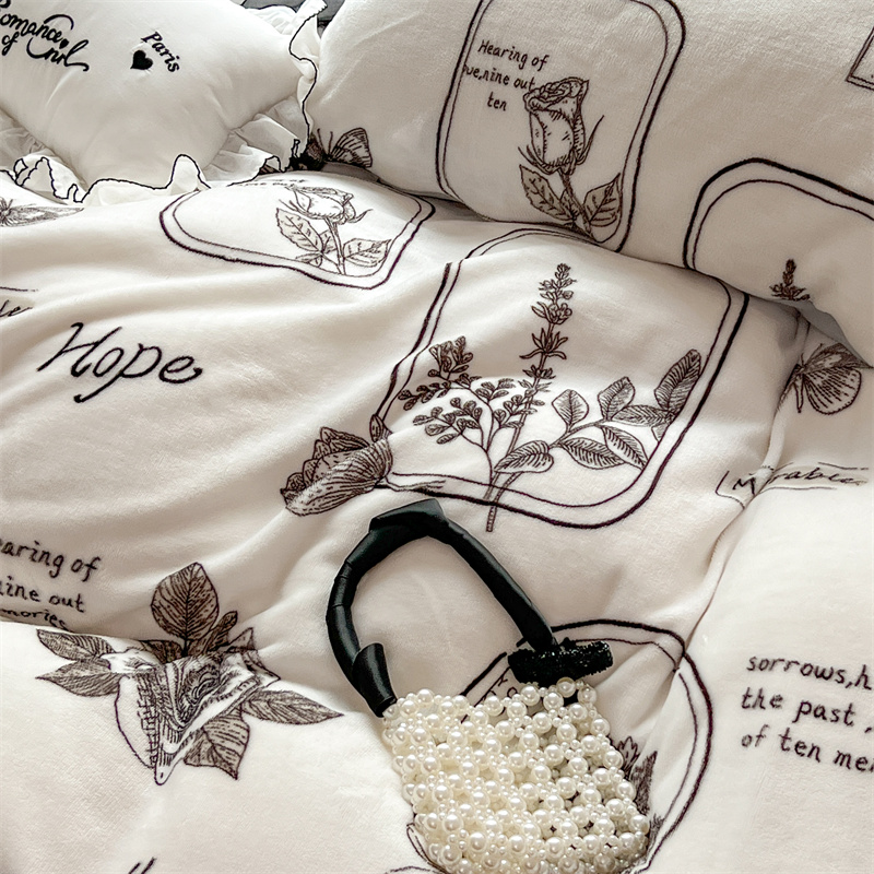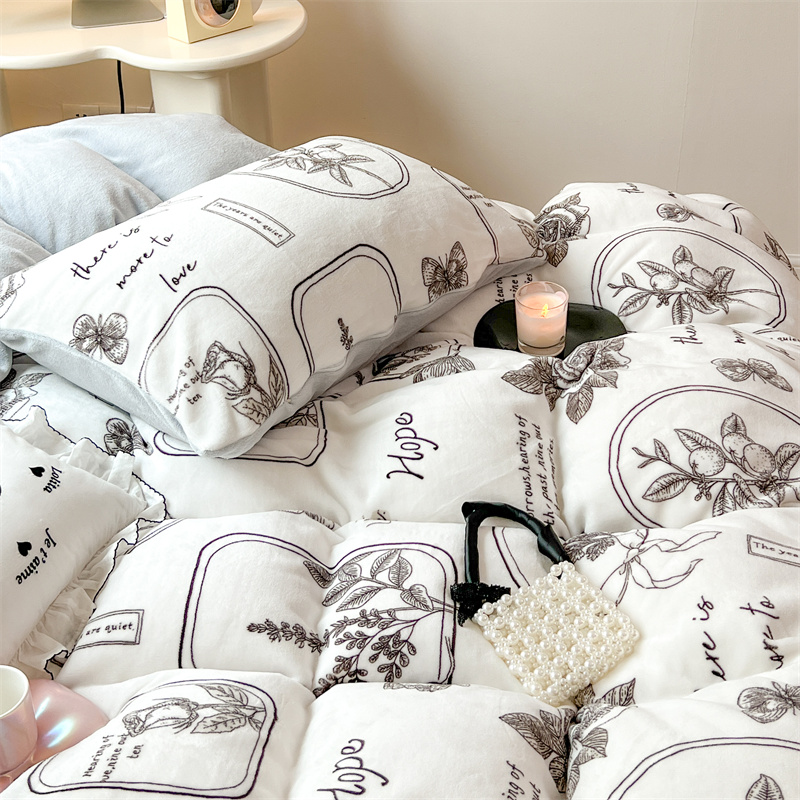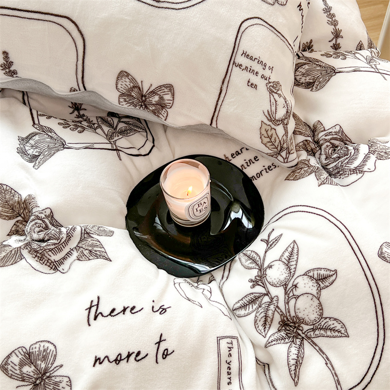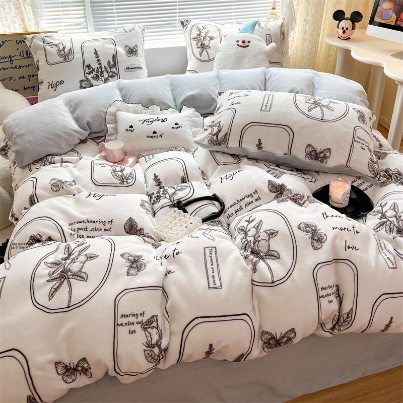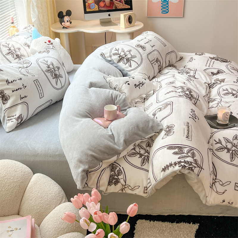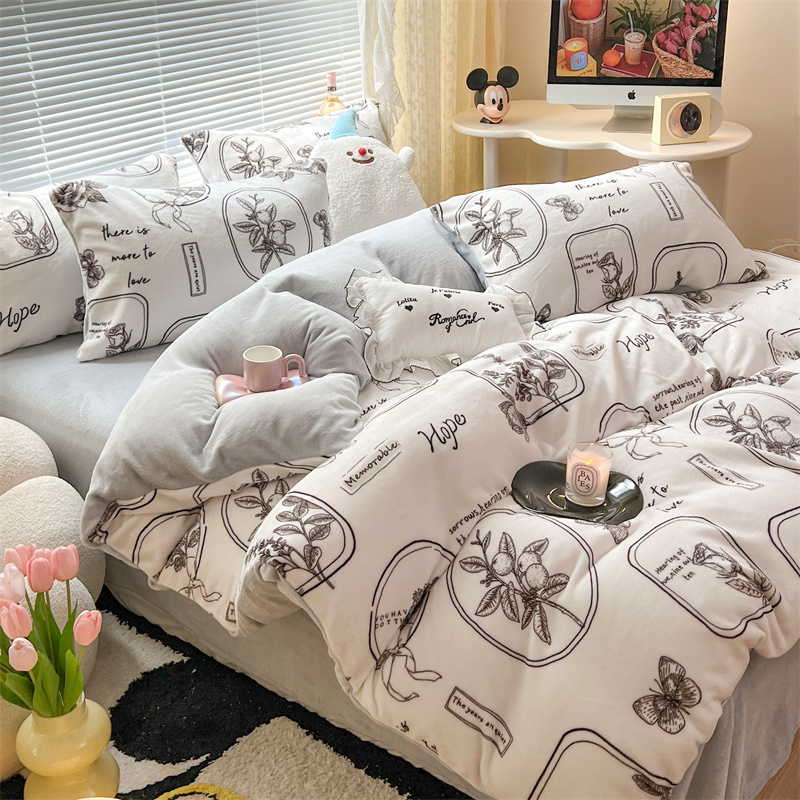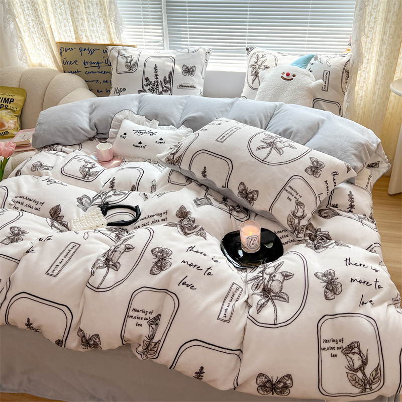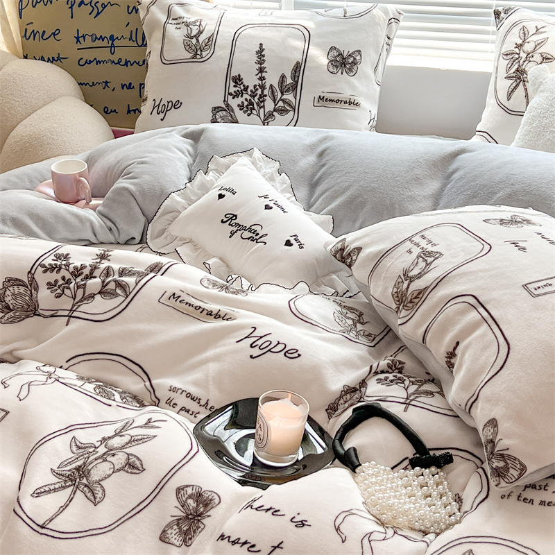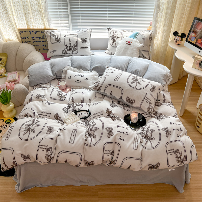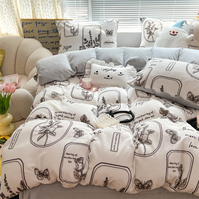 顾里家纺 新款ins少女保暖牛奶绒四件套第二批 素描园林