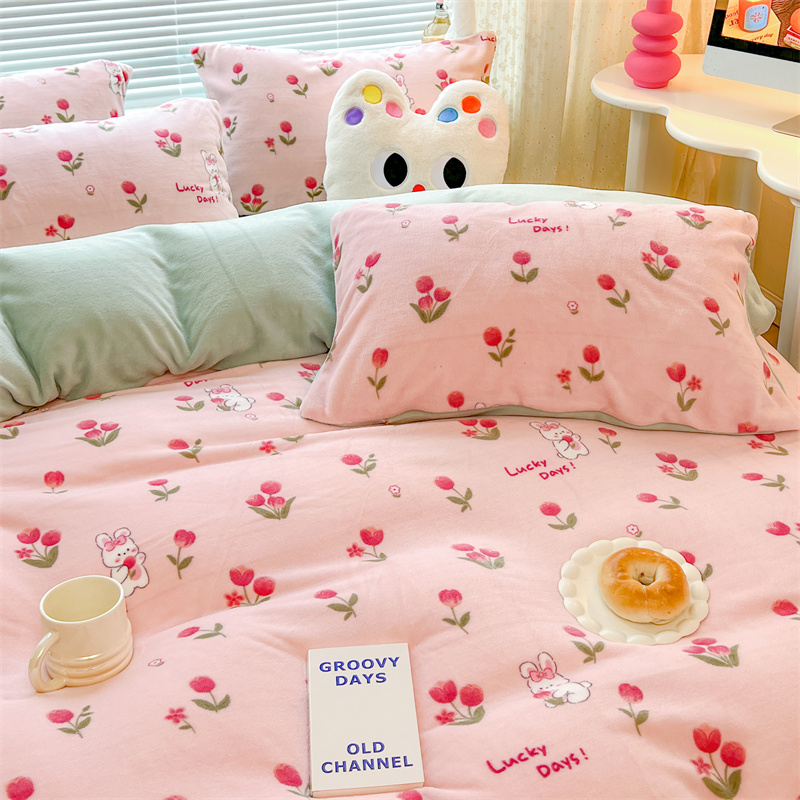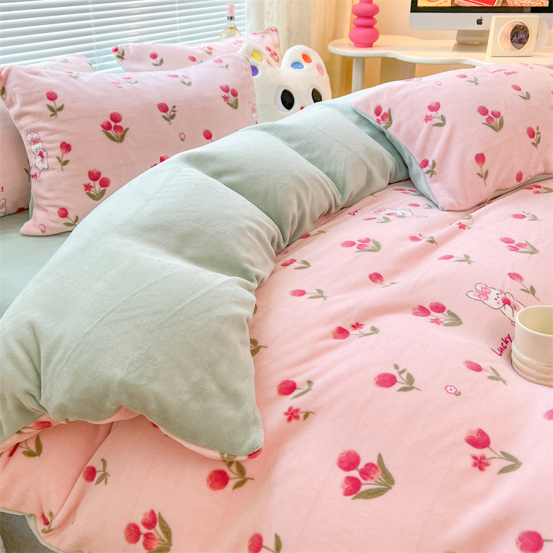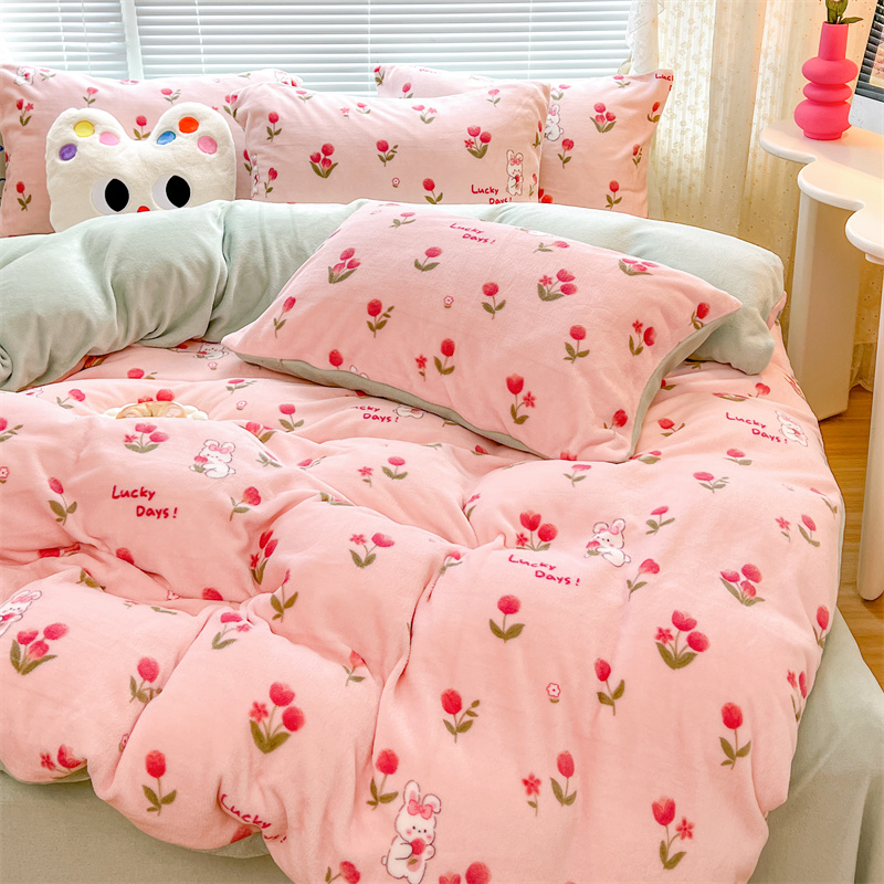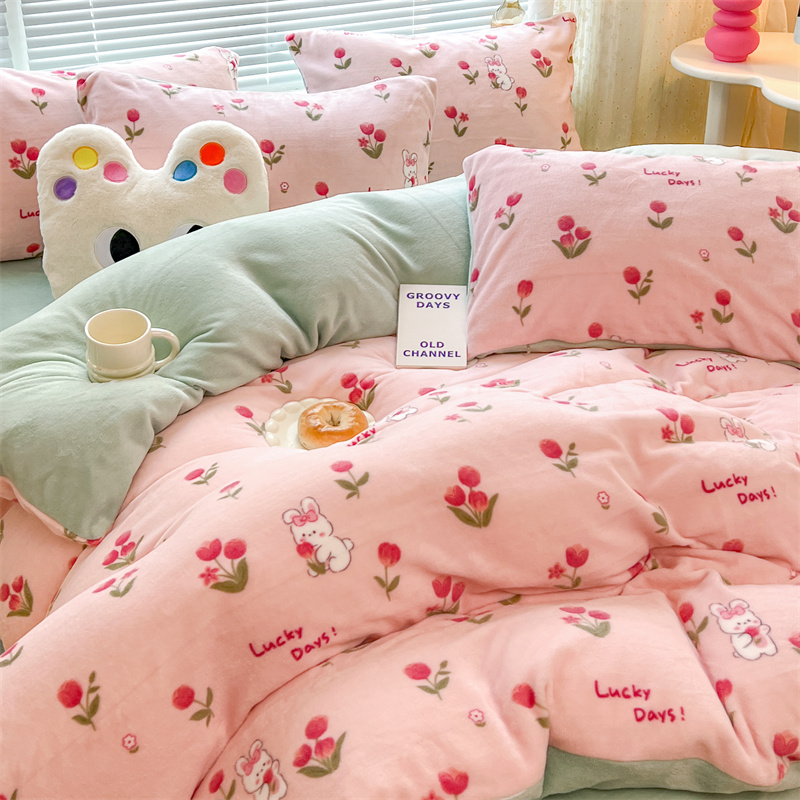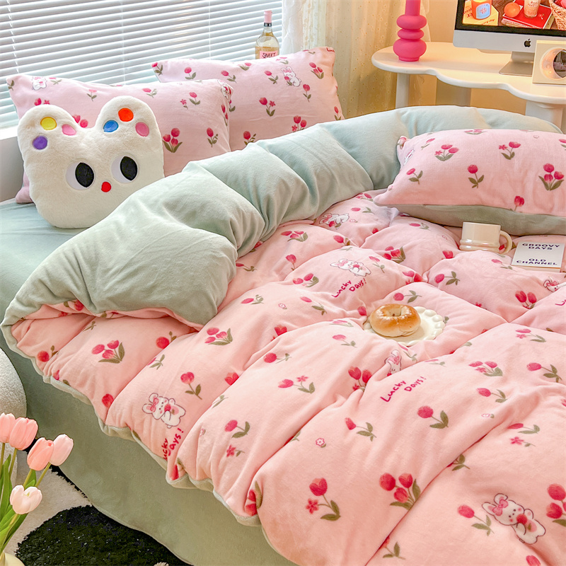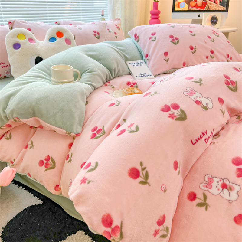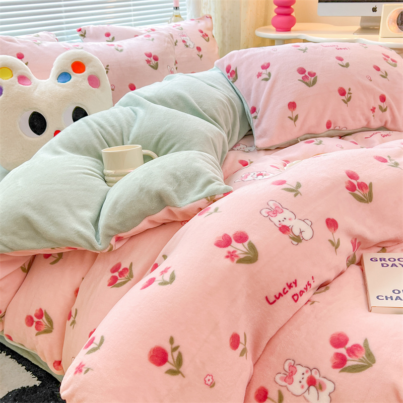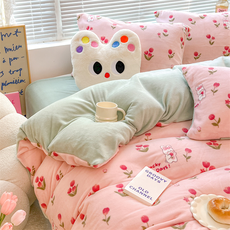 顾里家纺 新款ins少女保暖牛奶绒四件套第二批 萌萌兔
