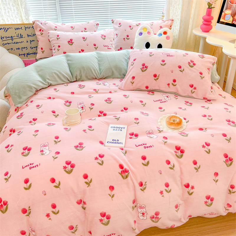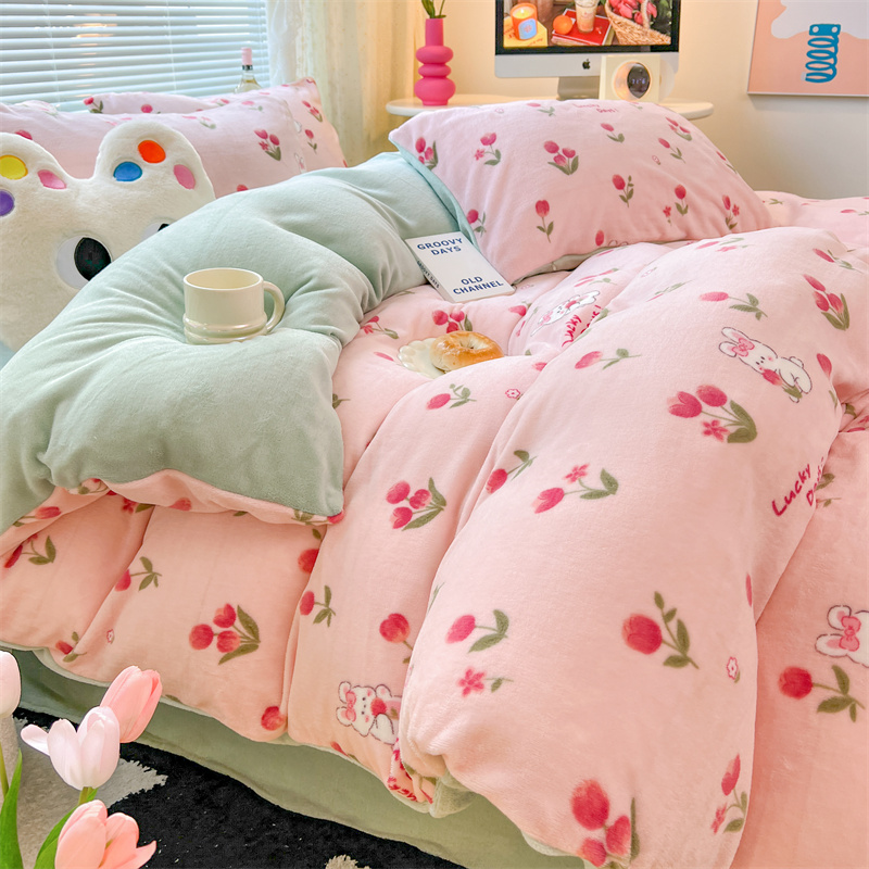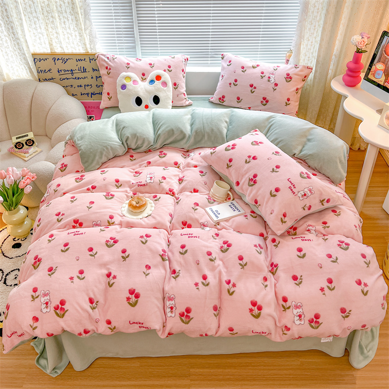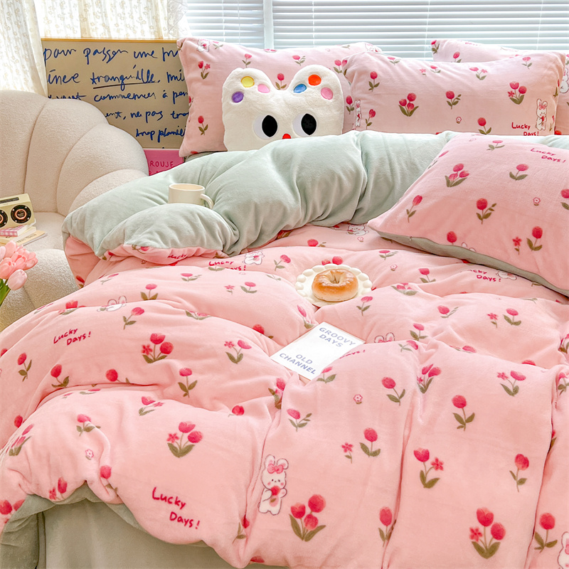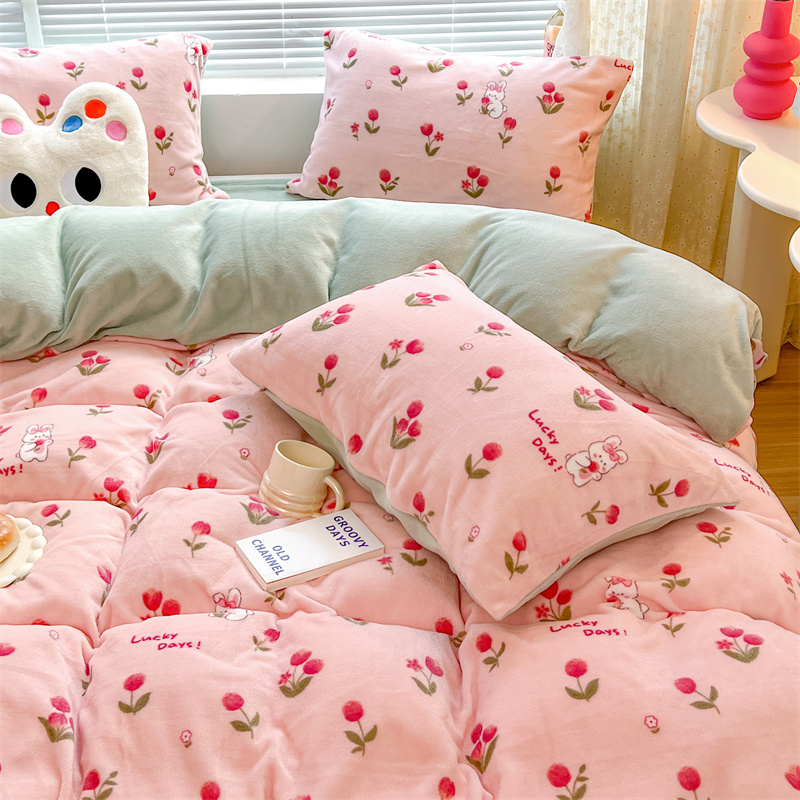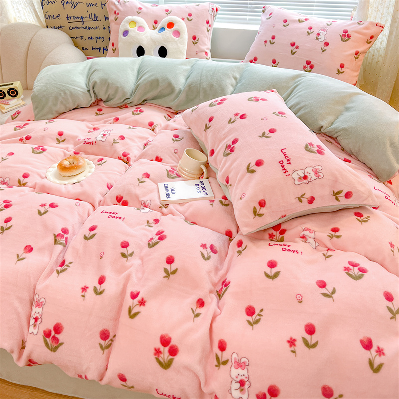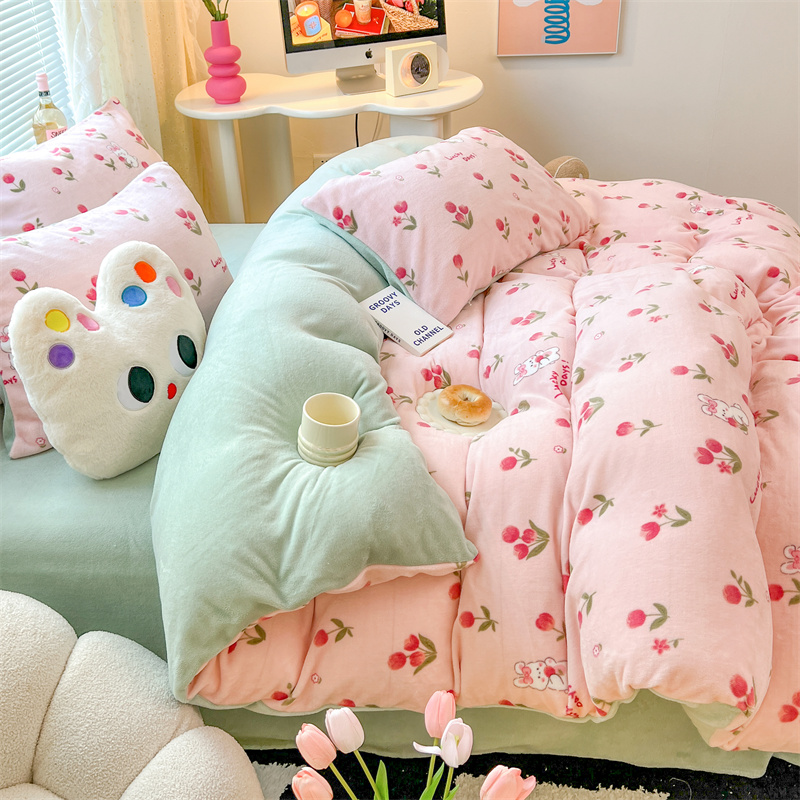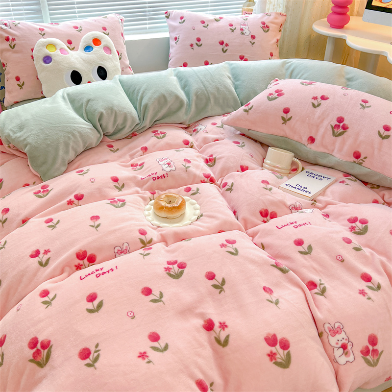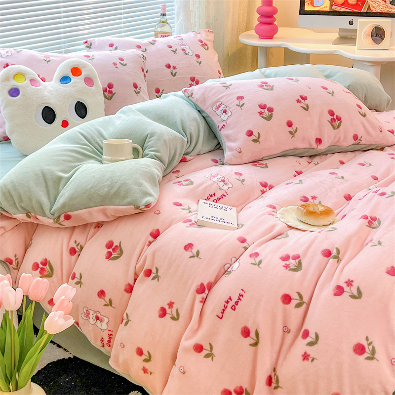 顾里家纺 新款ins少女保暖牛奶绒四件套第二批 萌萌兔