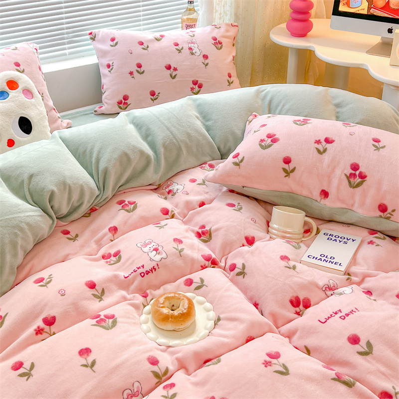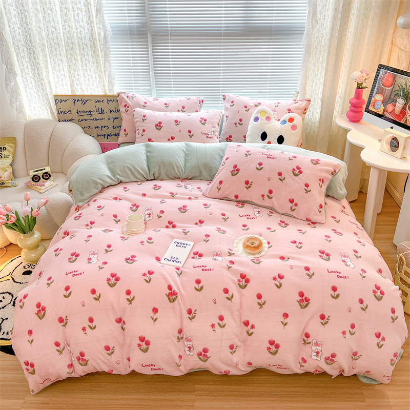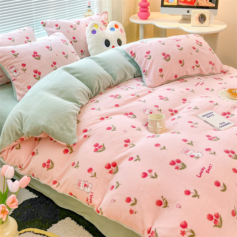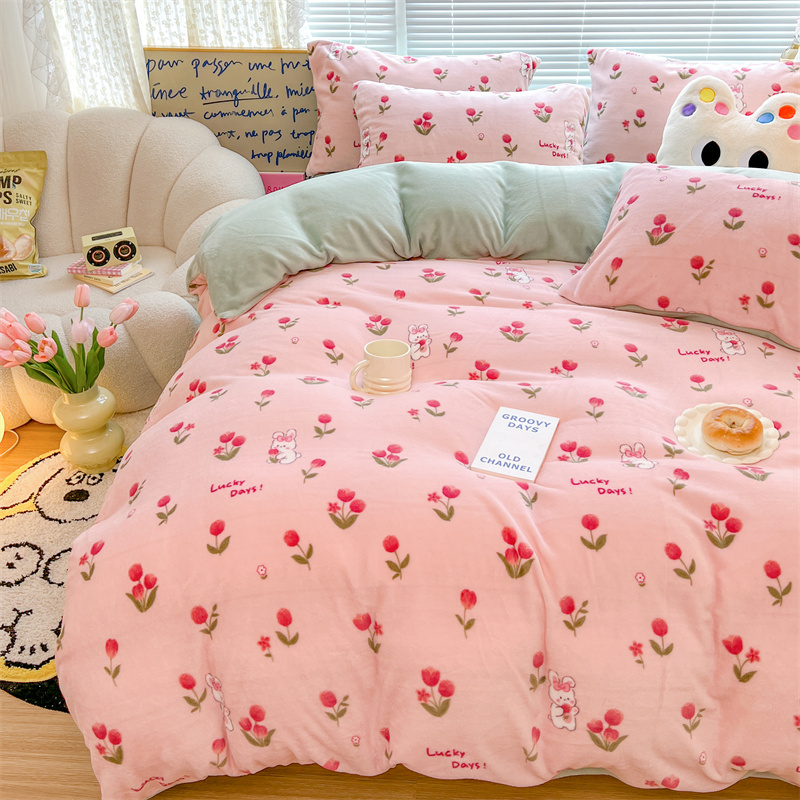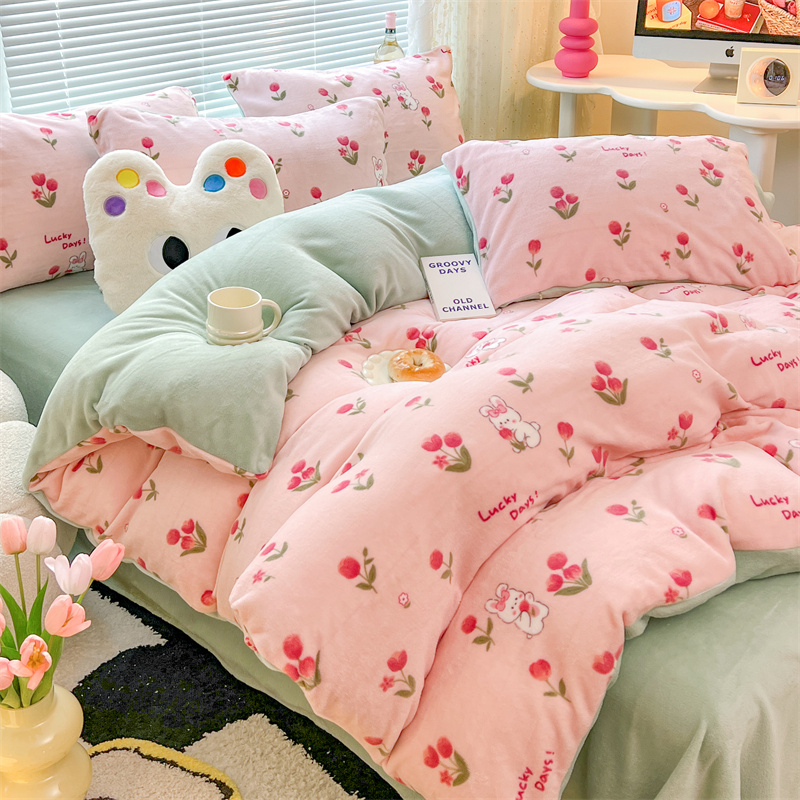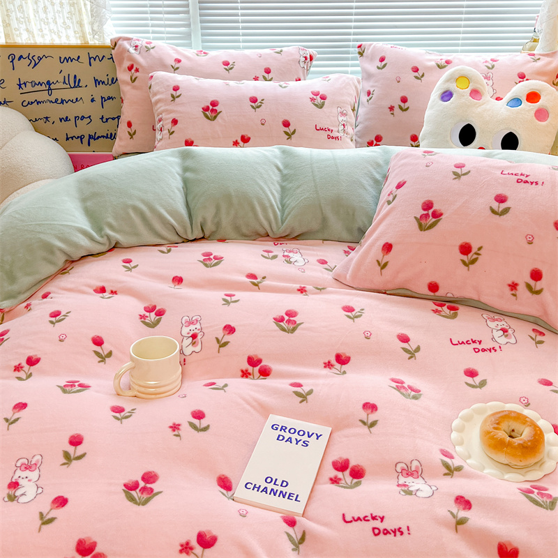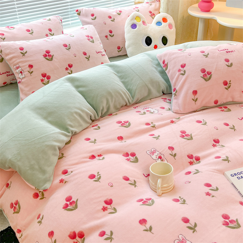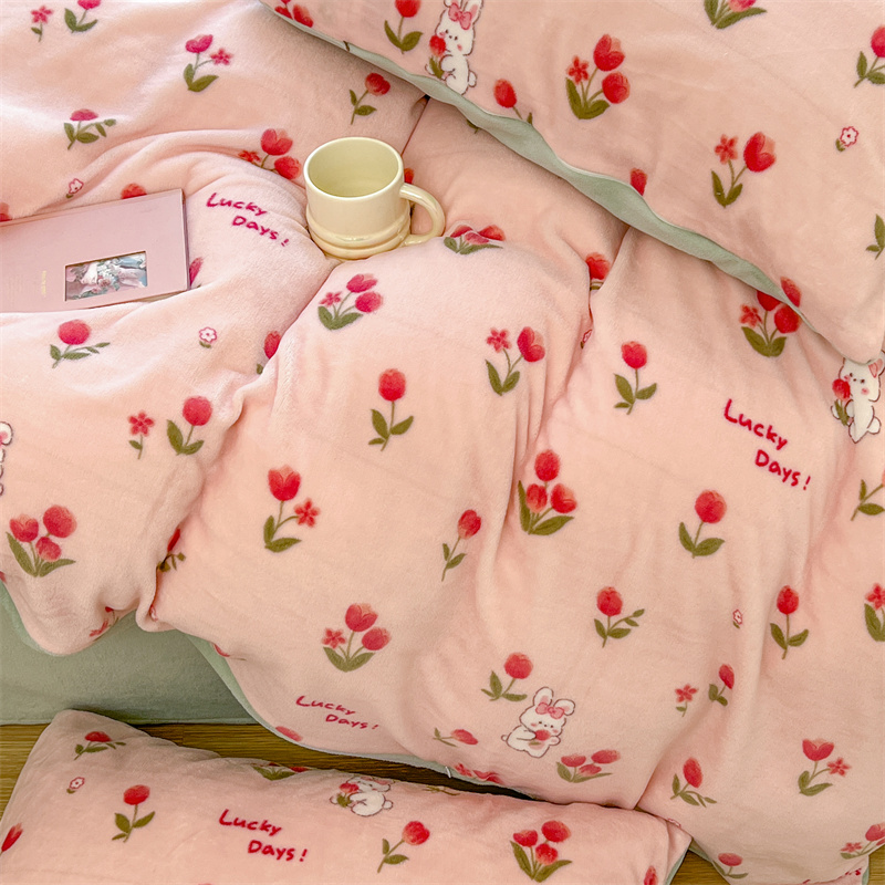 顾里家纺 新款ins少女保暖牛奶绒四件套第二批 萌萌兔
