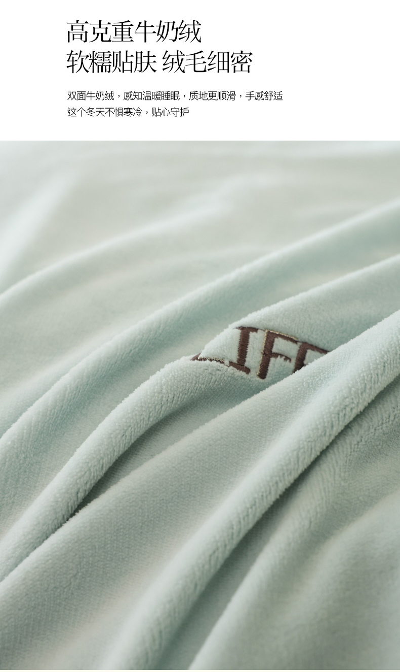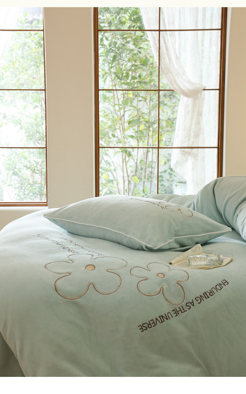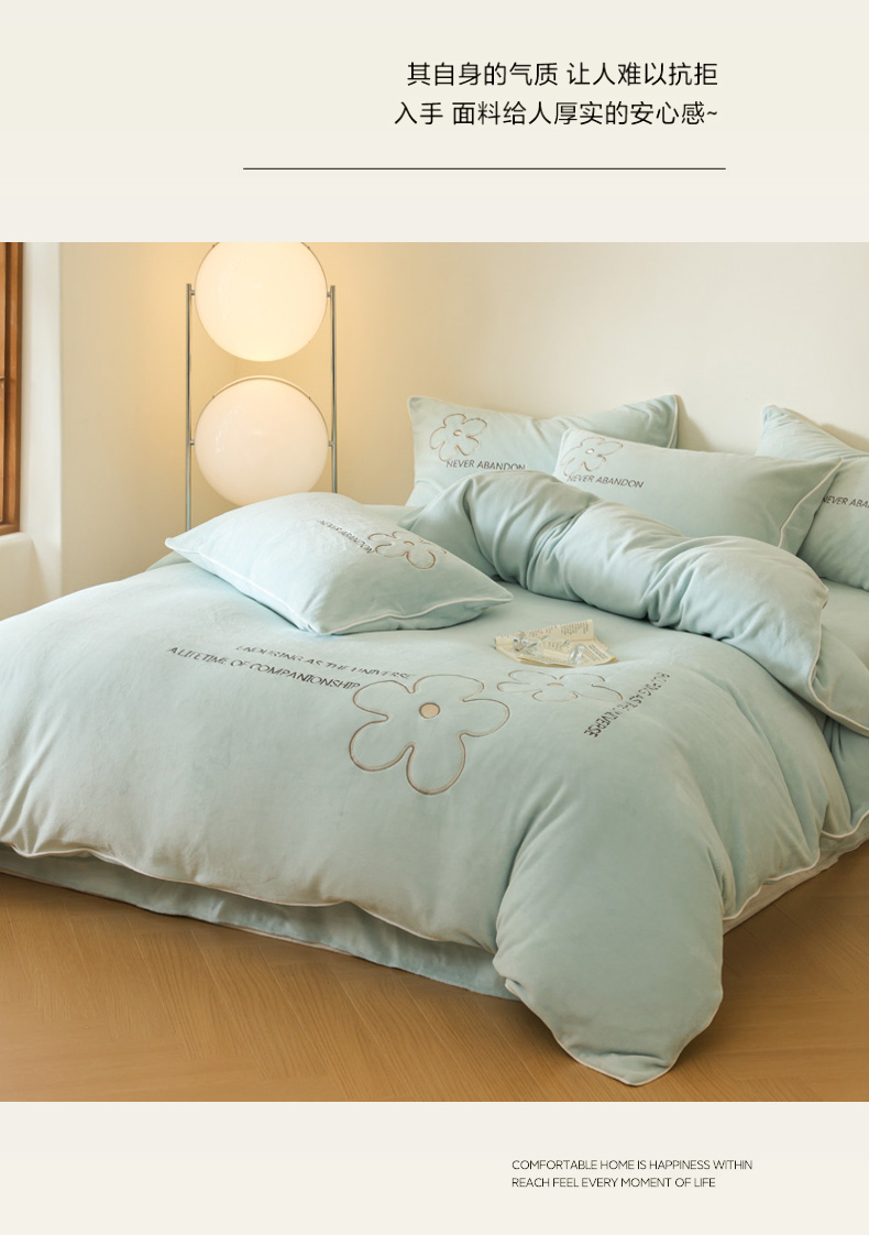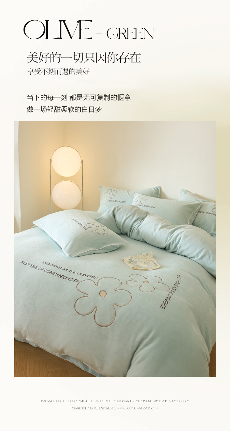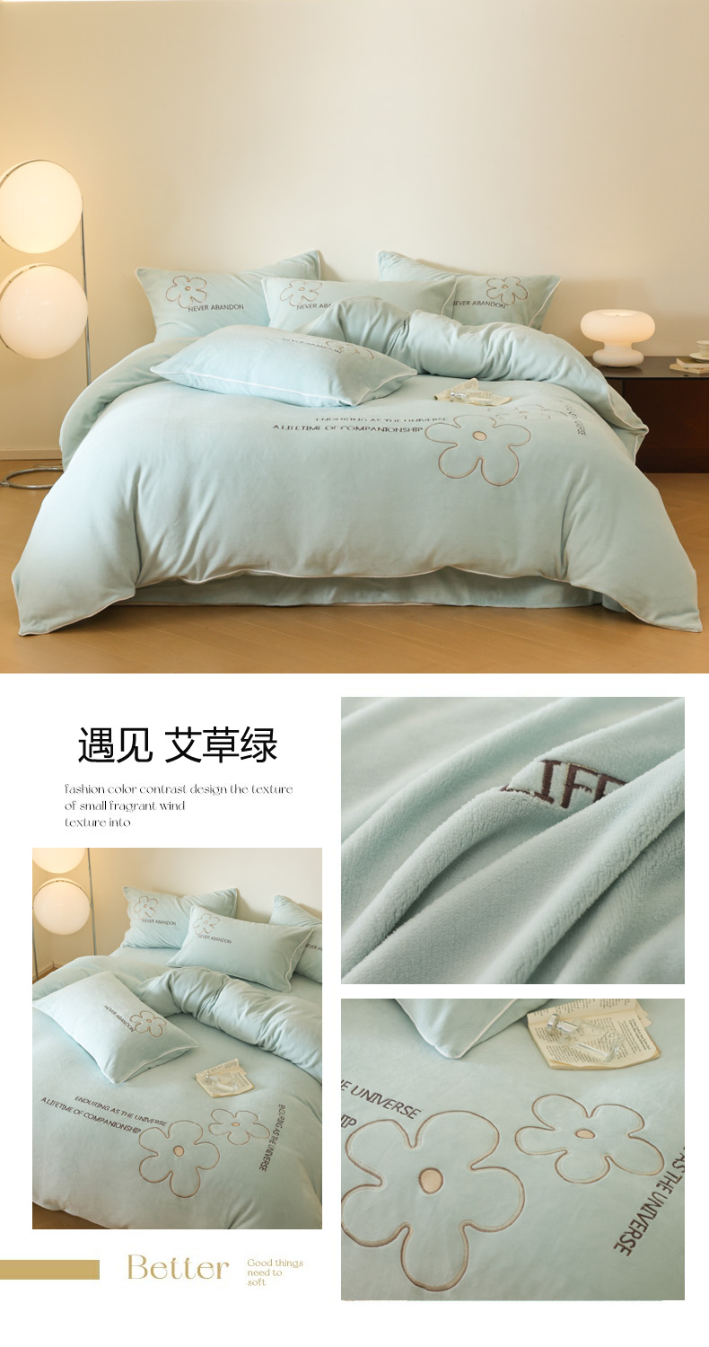商品名称:万盛家纺 2025新款牛奶绒简约绣花四件套 艾草绿