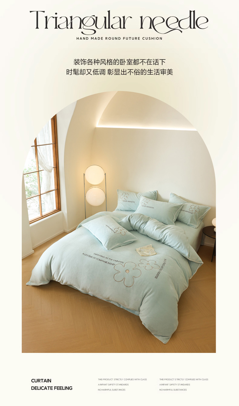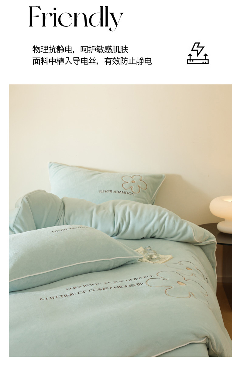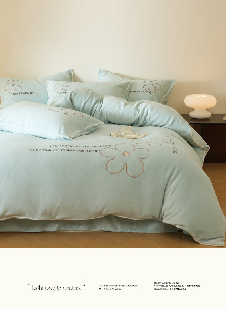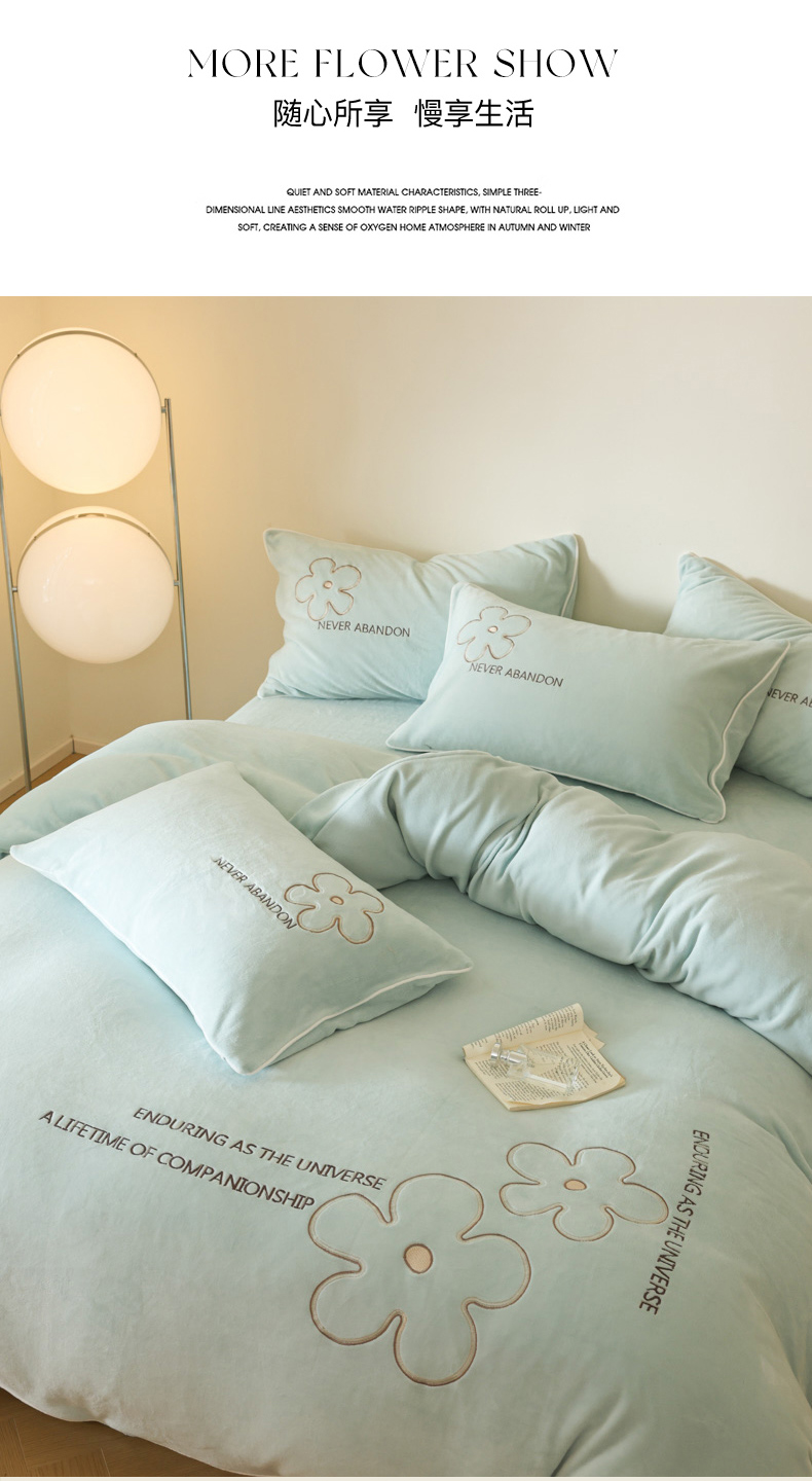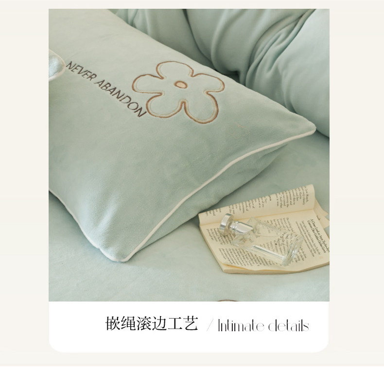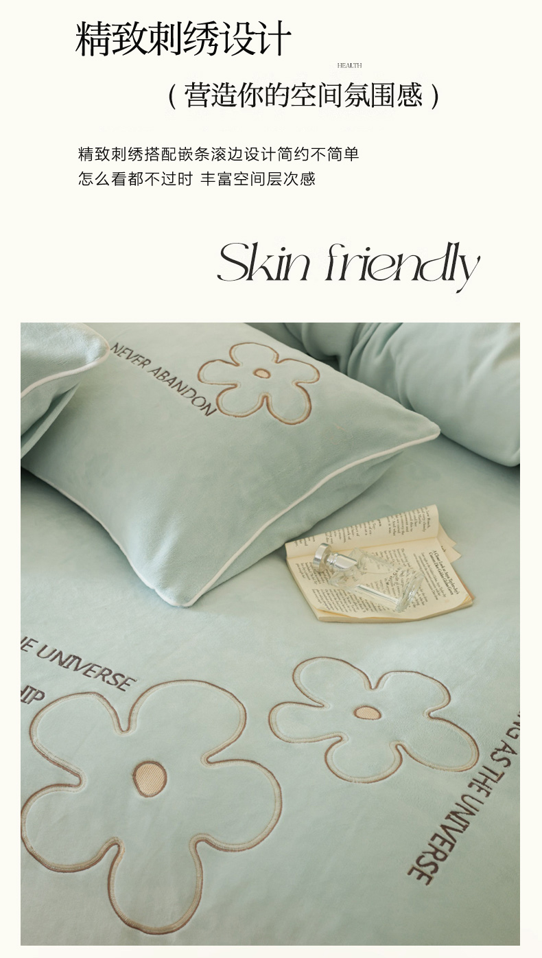 商品名称:万盛家纺 2025新款牛奶绒简约绣花四件套 艾草绿