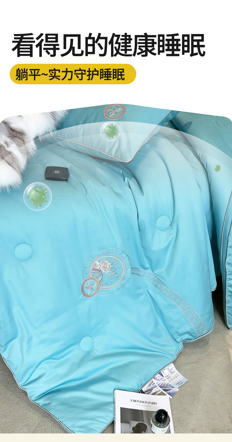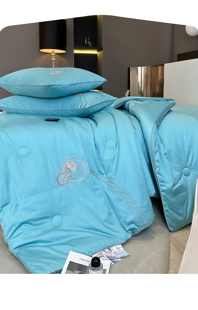 • 91家纺网 家纺一手货源 找家纺 头等舱 2023新款全棉A类高支高密纯色20大豆抗菌秋冬被(含子母被) 花之语湖蓝