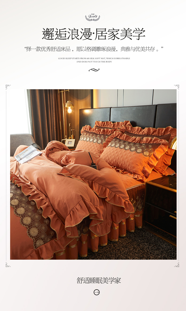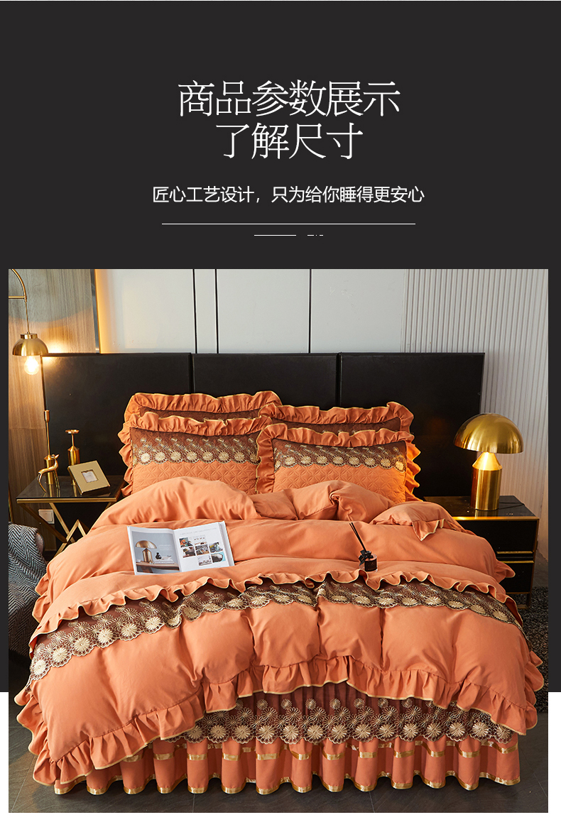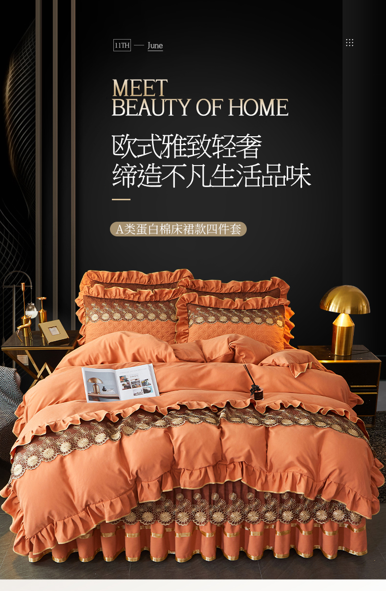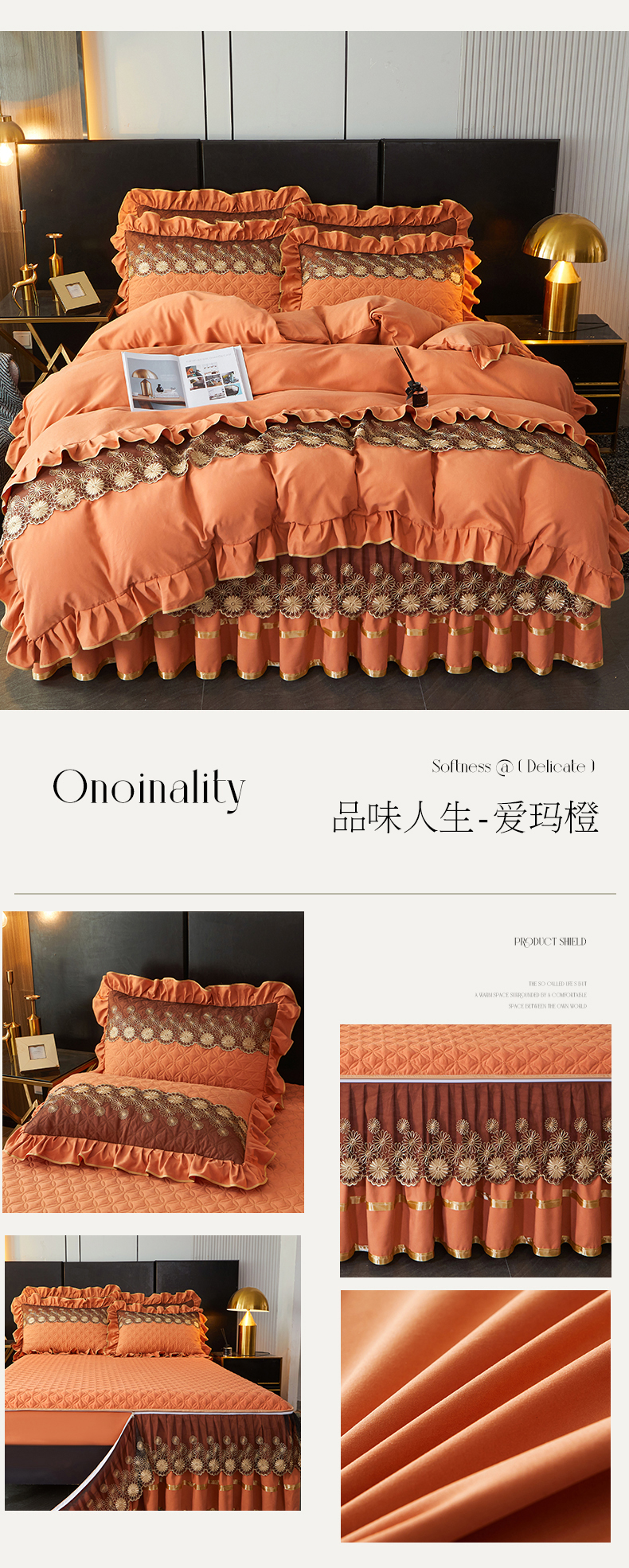 当前位置: 91家纺网 > 商品网购 > 床品套件 > 四件套 > 化纤普通四件套 > 罗艺轩 2024新款A类蛋白棉夹棉床裙四件套-品味人生 品味人生-爱玛橙