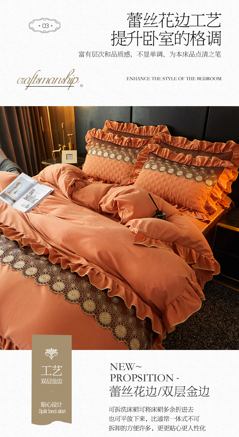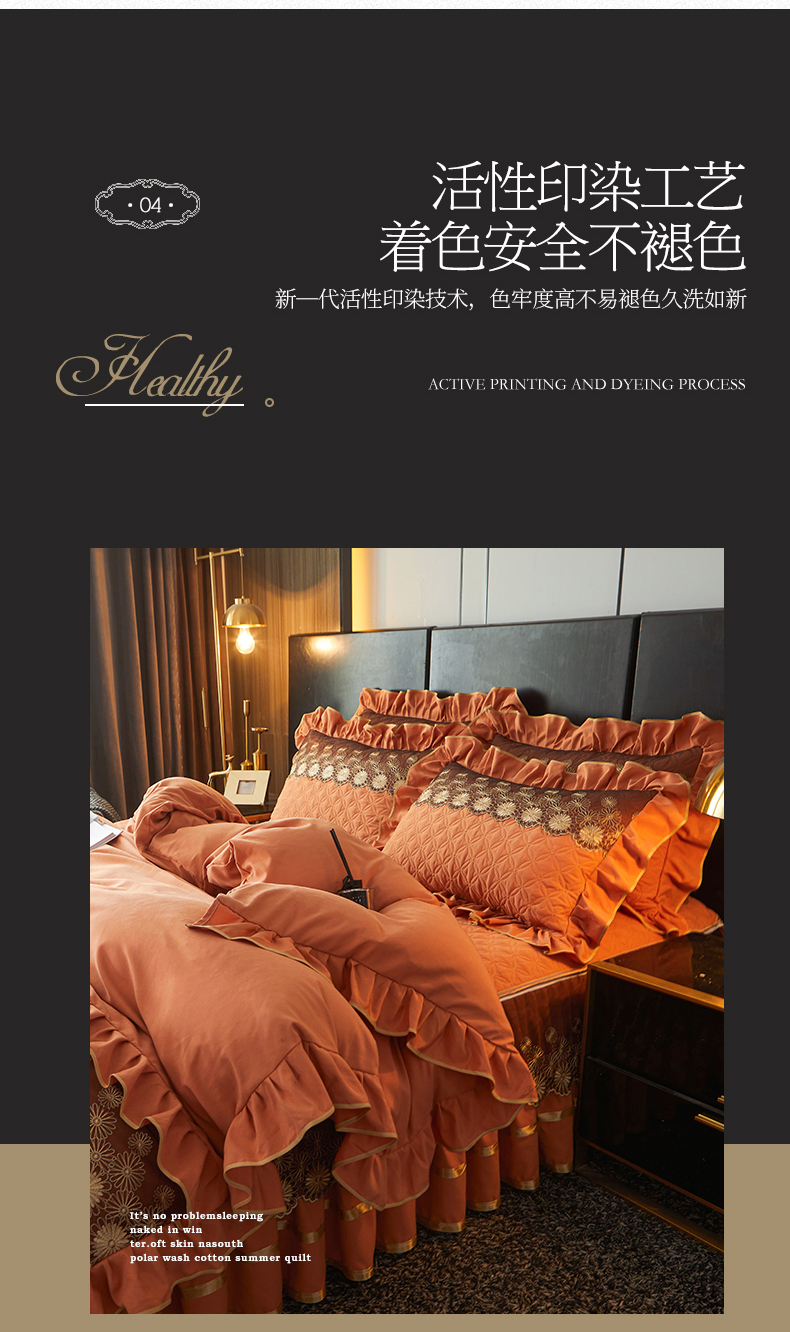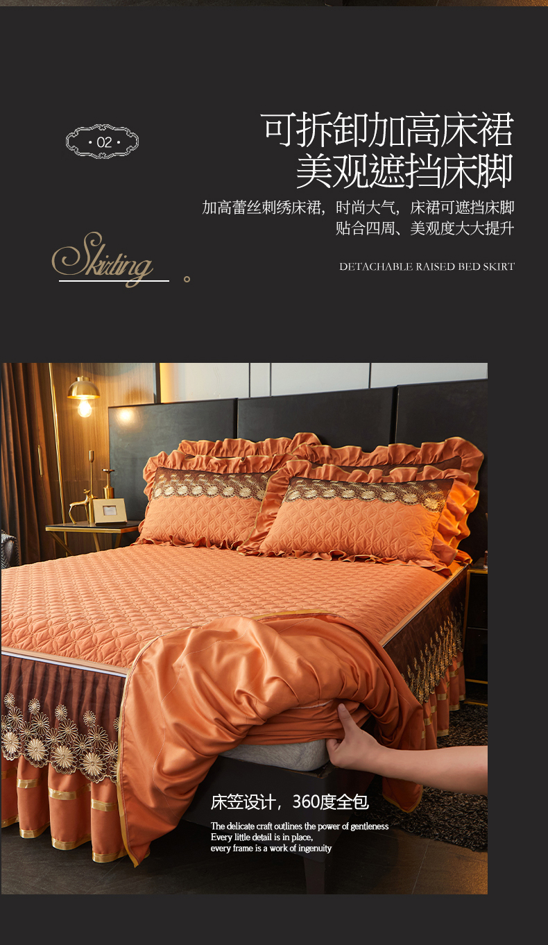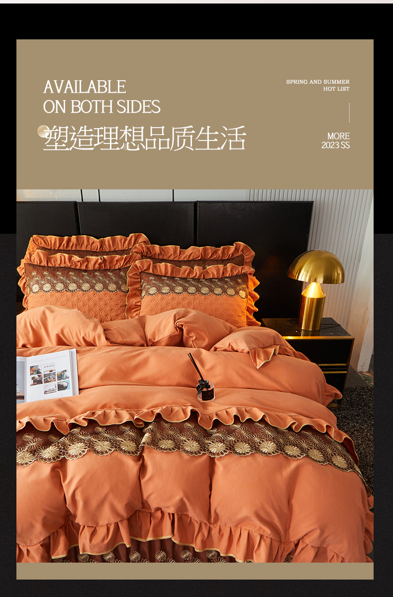 当前位置: 91家纺网 > 商品网购 > 床品套件 > 四件套 > 化纤普通四件套 > 罗艺轩 2024新款A类蛋白棉夹棉床裙四件套-品味人生 品味人生-爱玛橙
