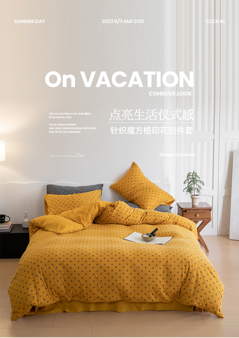 当前位置: 91家纺网 > 商品网购 > 床品套件 > 四件套 > 针织棉四件套 > 华超针织 2023新款针织棉魔方格印花四件套 魔方格姜黄
