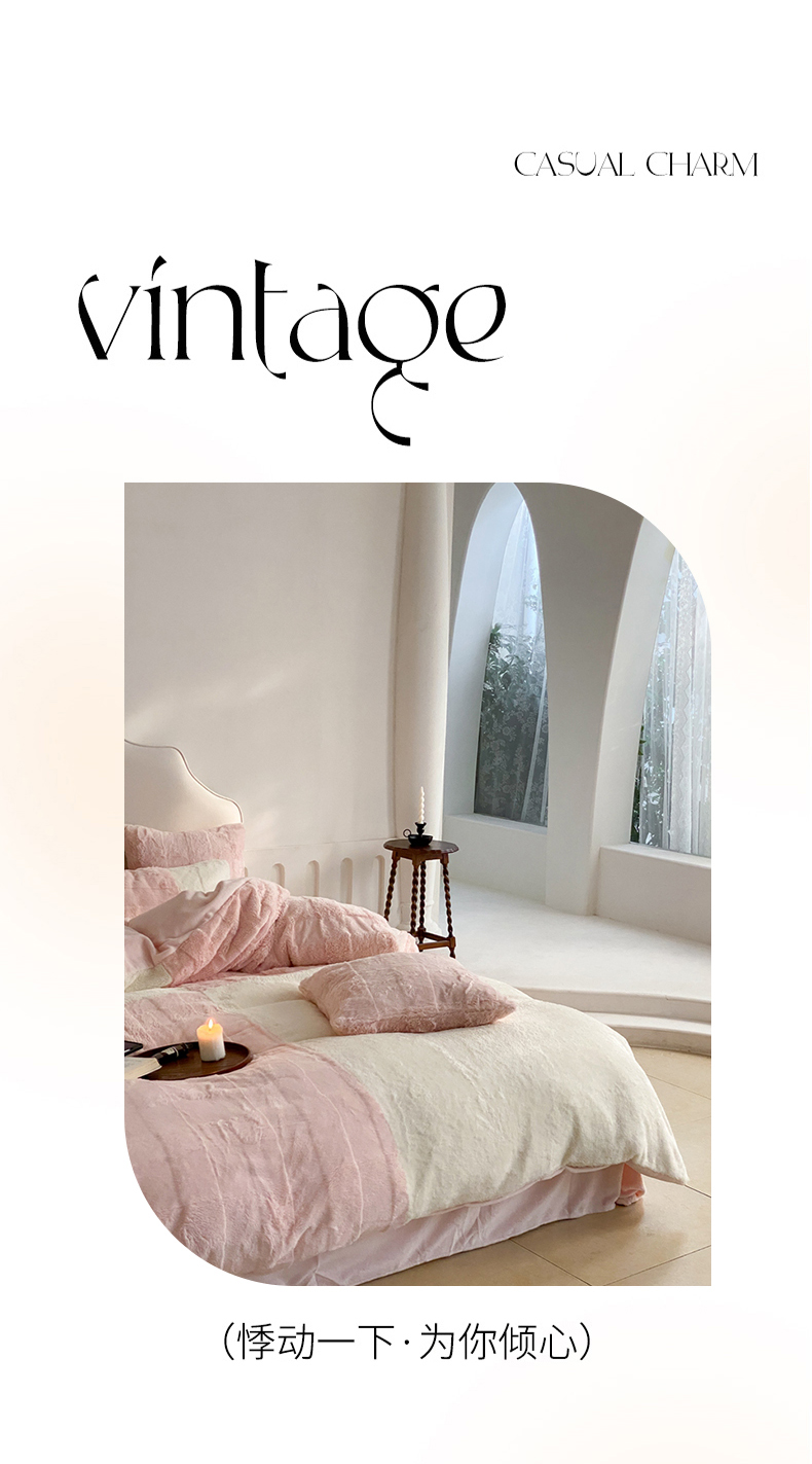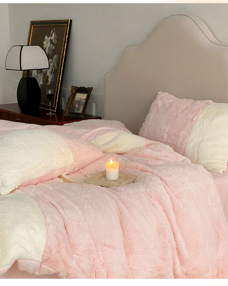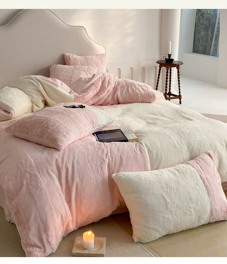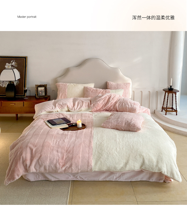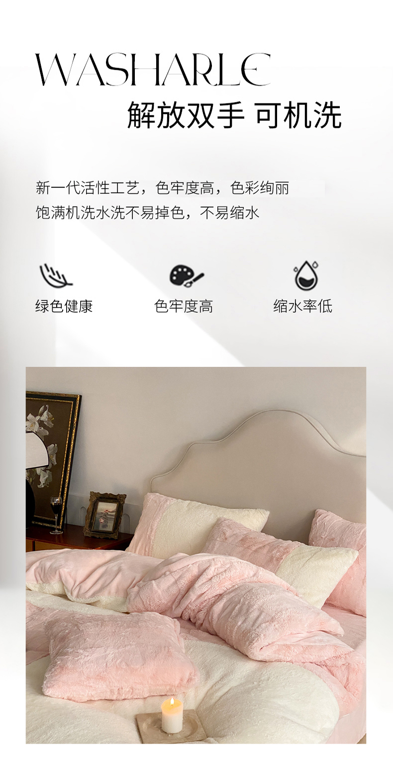 商品名称:潘朵拉 2023新款兔毛四宫格极有家小红书风格拼色牛奶绒四件套 梵希(粉)
