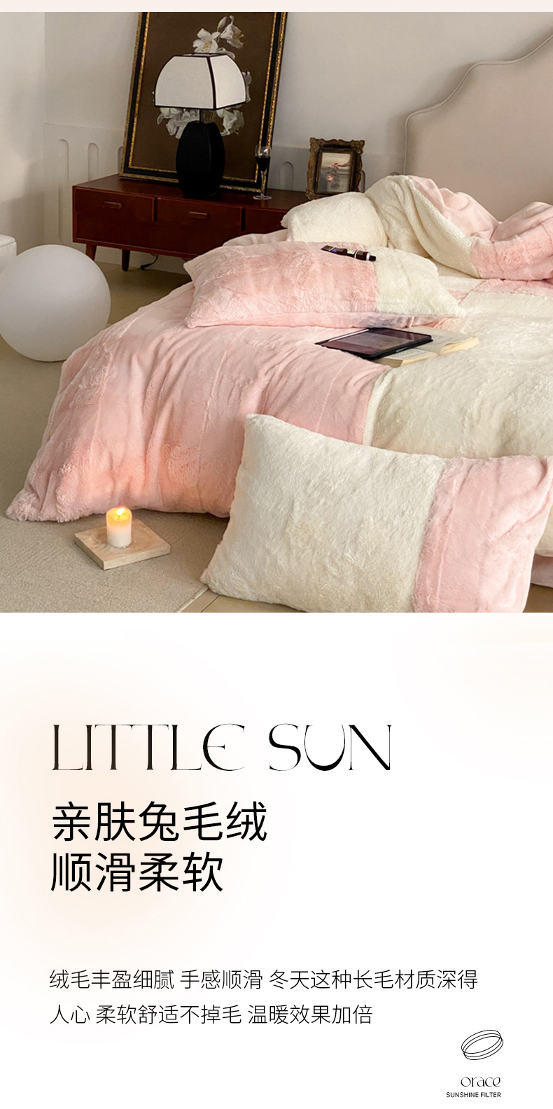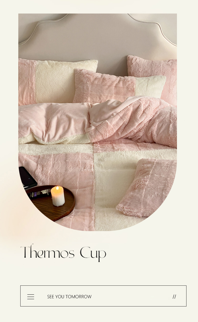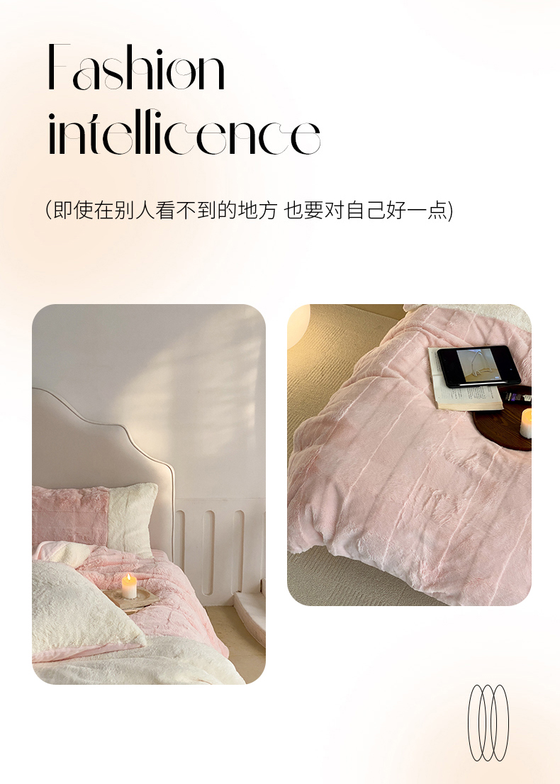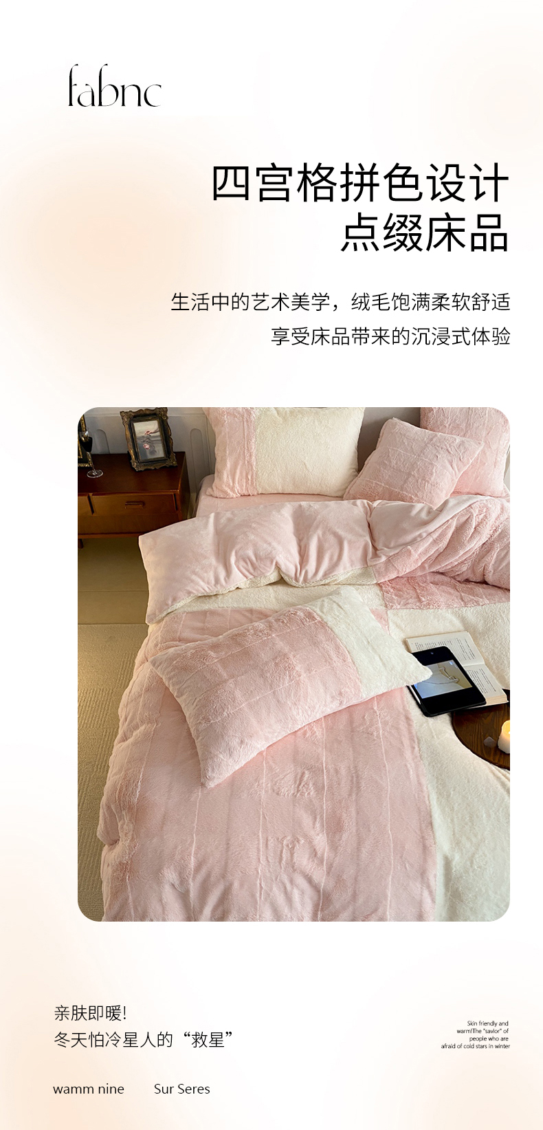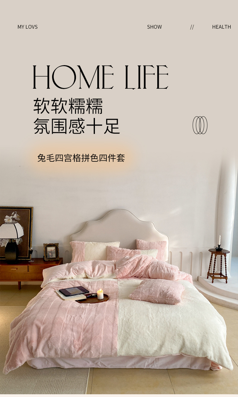 商品名称:潘朵拉 2023新款兔毛四宫格极有家小红书风格拼色牛奶绒四件套 梵希(粉)