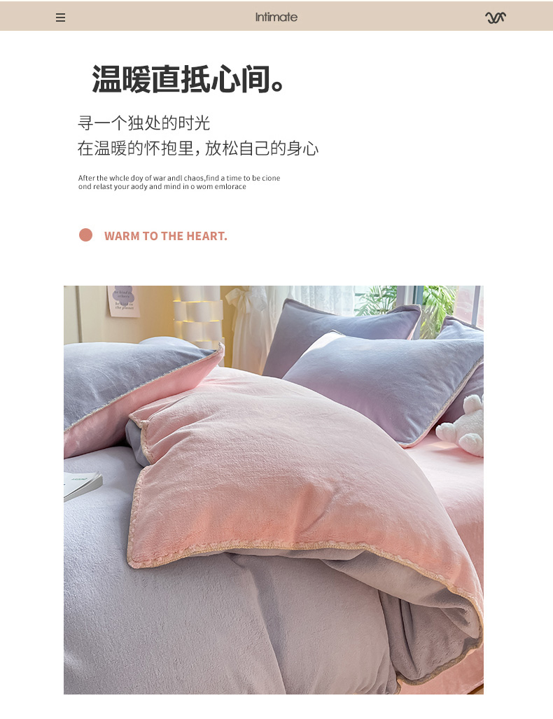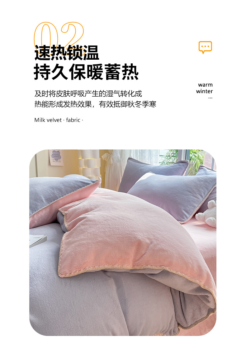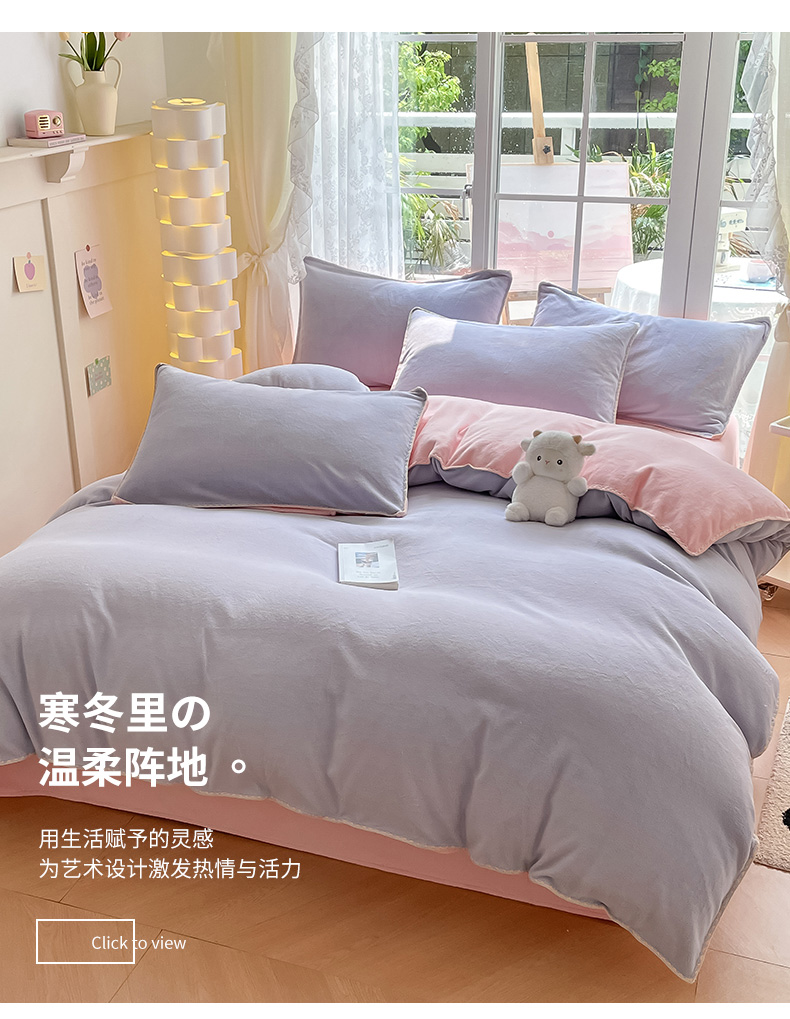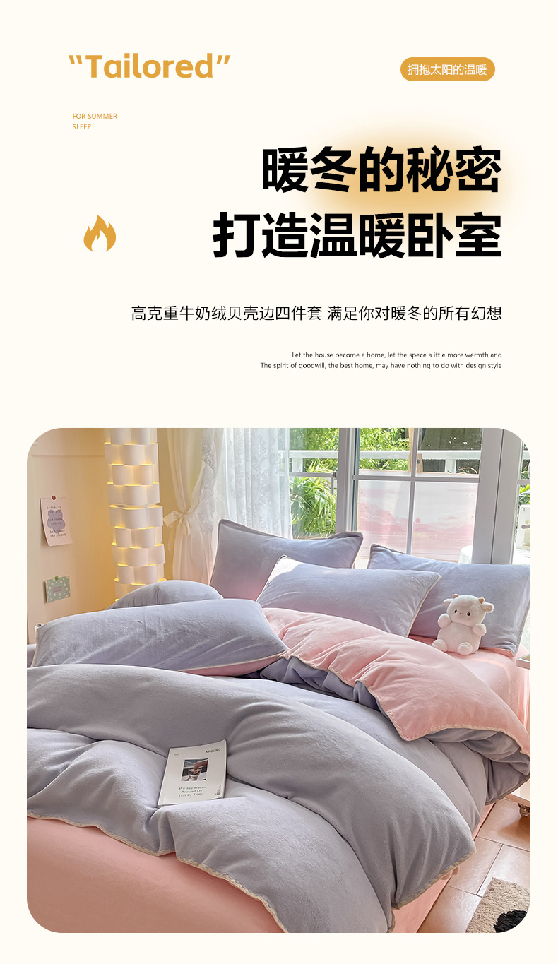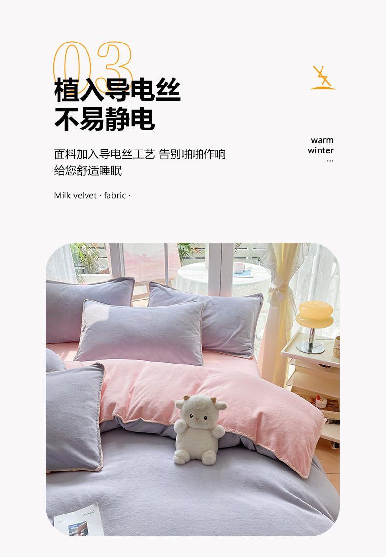 当前位置: 91家纺网 > 商品网购 > 床品套件 > 四件套 > 牛奶绒四件套 > 眠帛 2023新款纯色混搭牛奶绒贝壳边保暖四件套 浅紫奶油粉