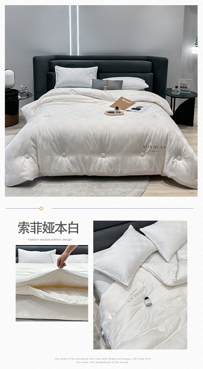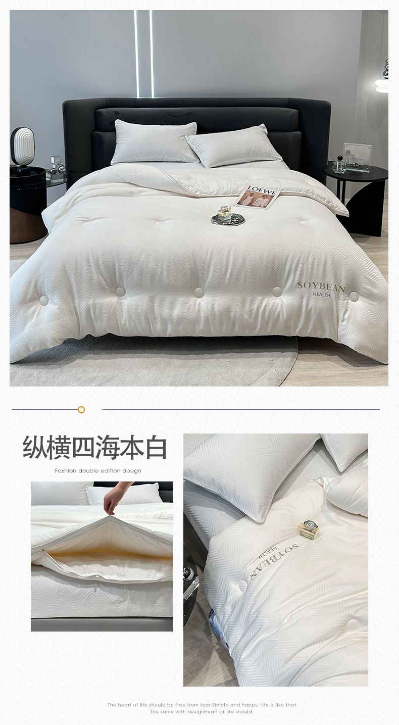 (总)头等舱 2025新款全棉100支双股纯色A类80大豆7A抗菌立体被子被芯(空镜图),本白,丝光皮革包装
