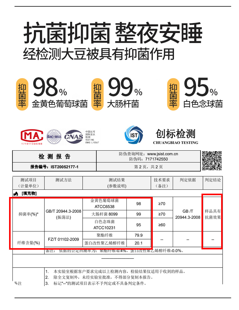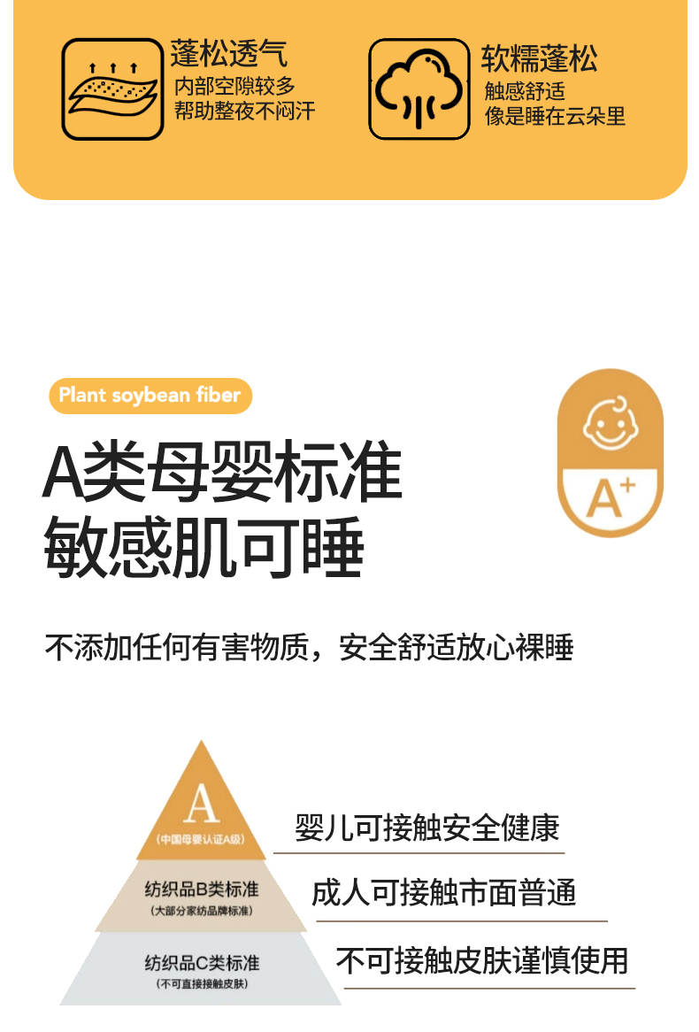填充纤维种类: 大豆蛋白改性聚酯纤维