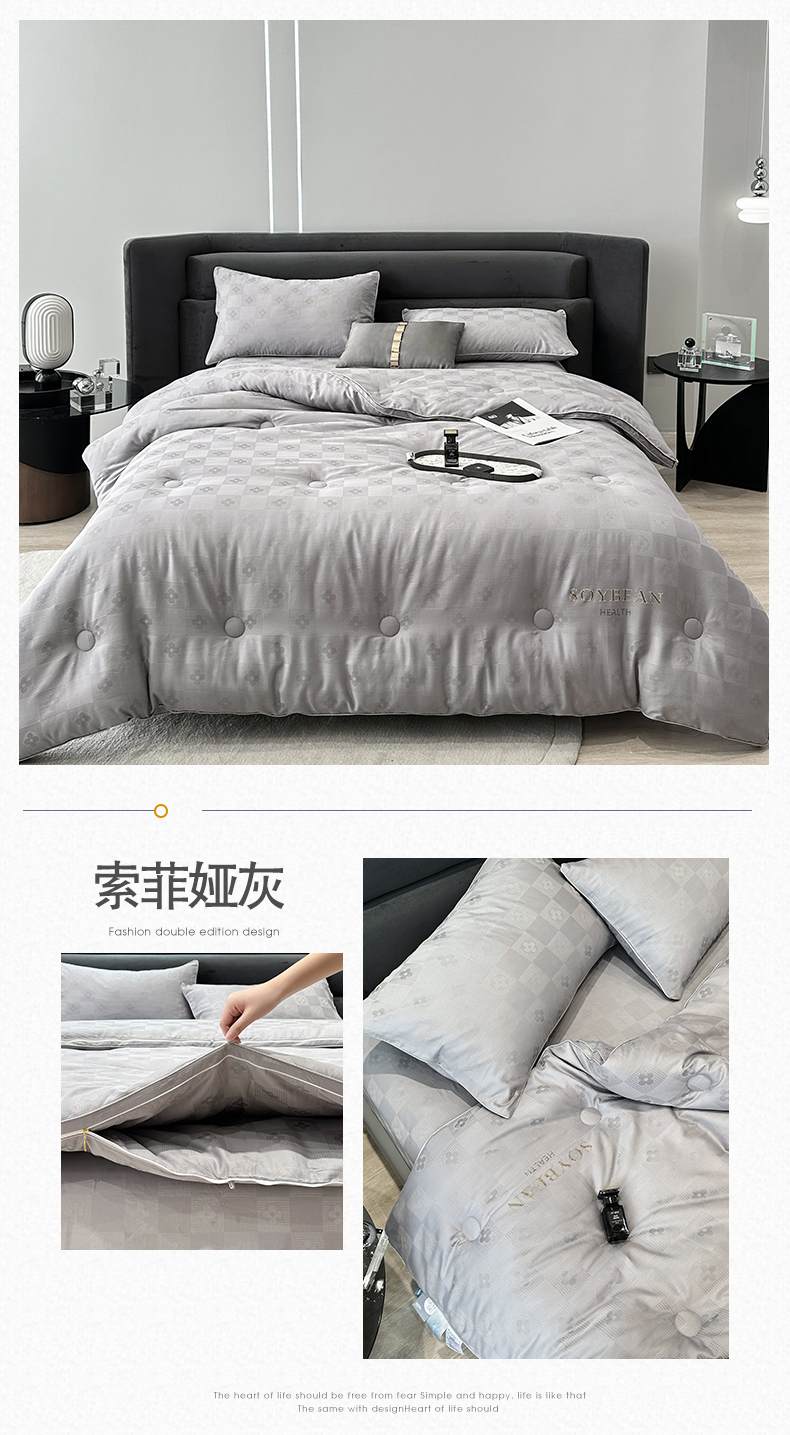 (总)头等舱 2025新款四季棉纯色A类20大豆7A抗菌秋冬被(模特图),谧境-豆沙粉,谧境-奶白,谧境-浅绿,谧境-水蓝,谧境-雅致灰