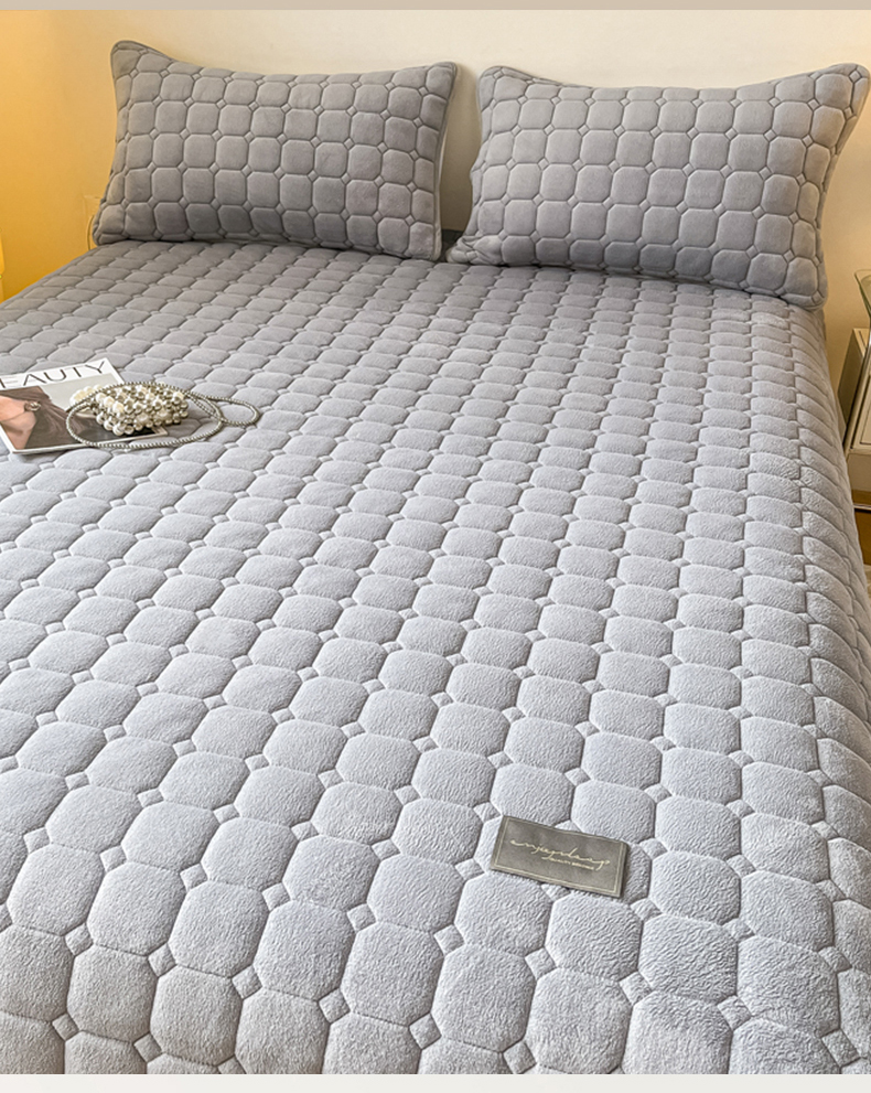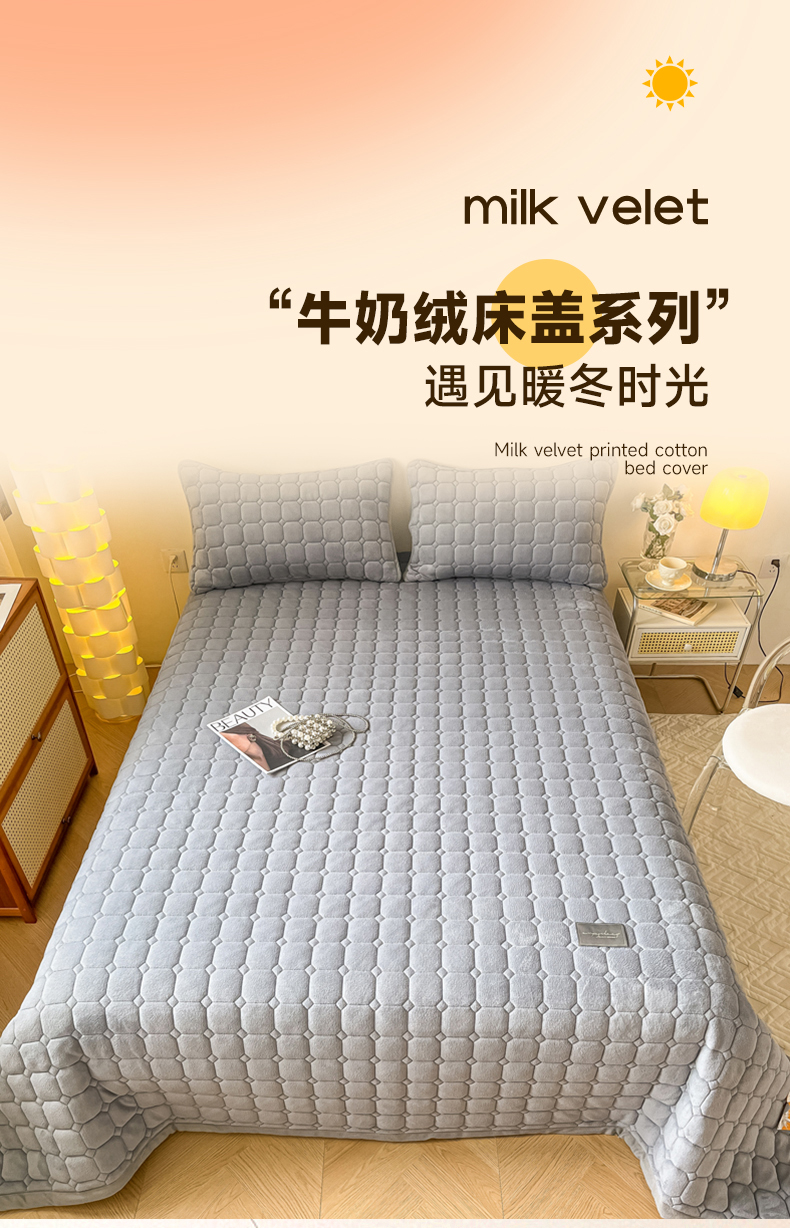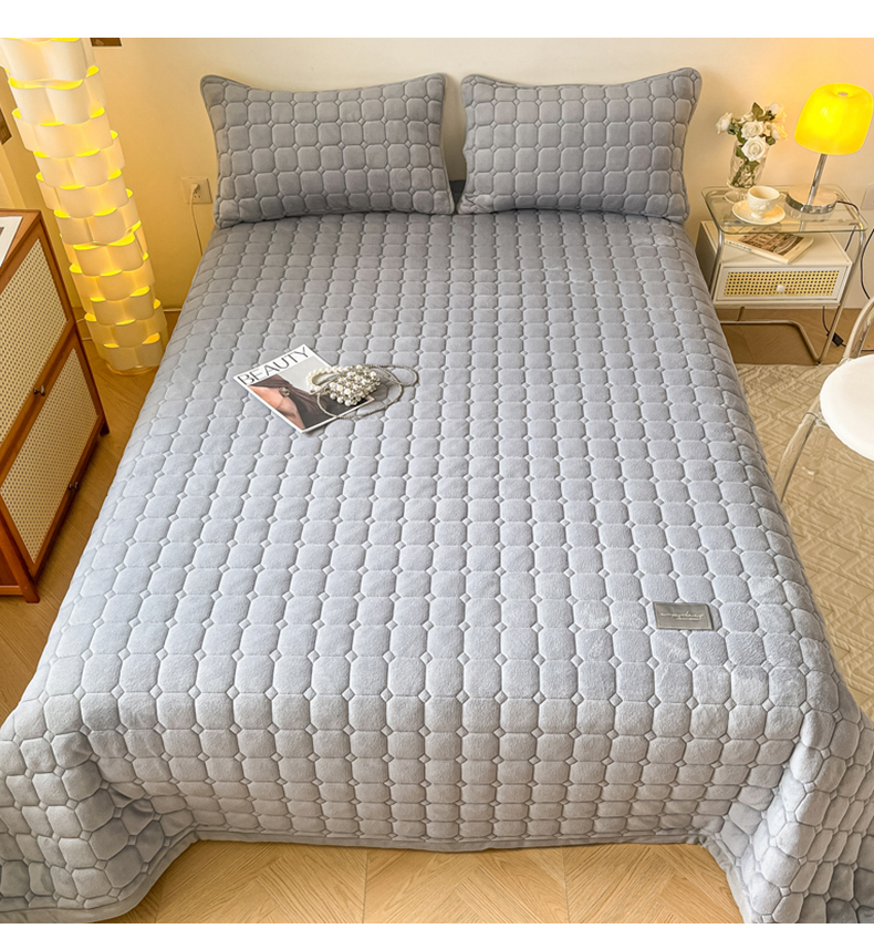 慕尚家纺 2025新款牛奶绒夹棉宽边工艺系列床盖三件套-吉米 床盖吉米-银灰