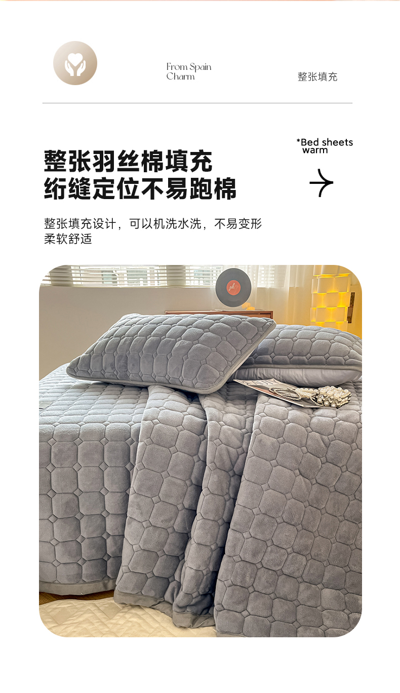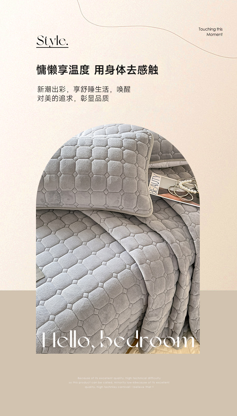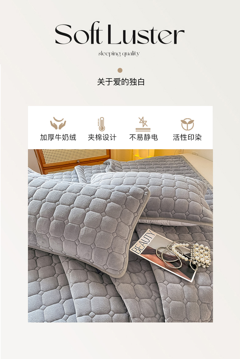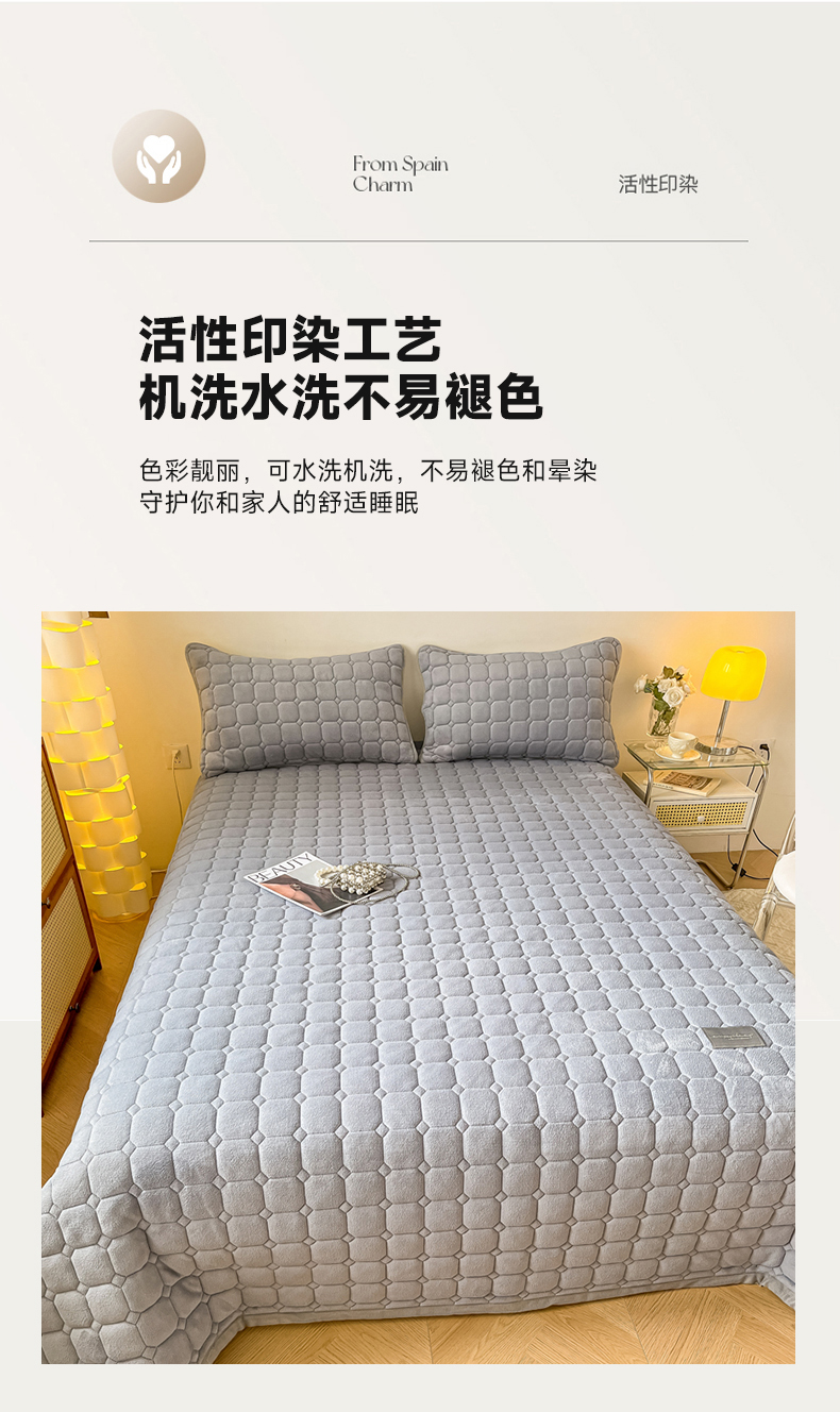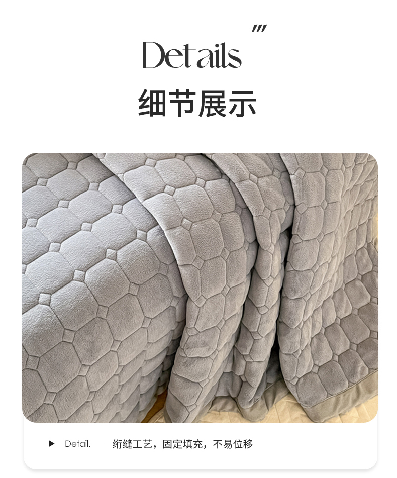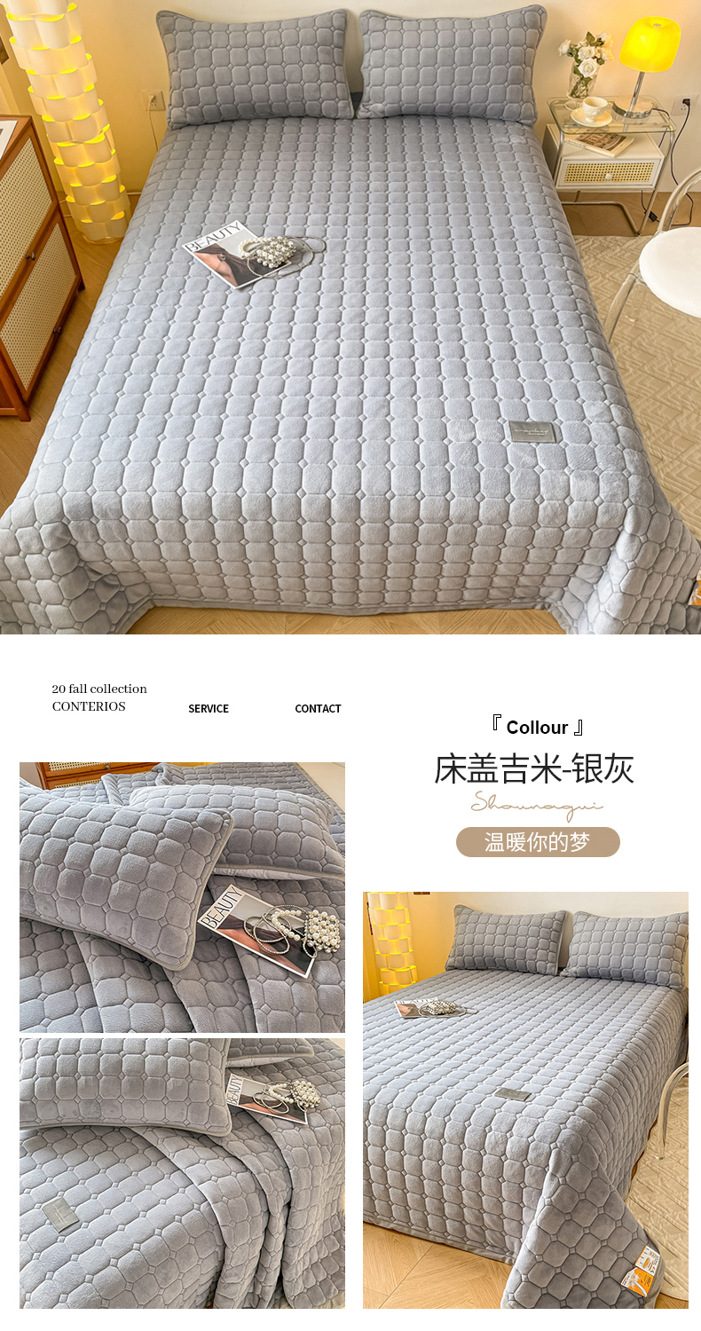 • 91家纺网 家纺一手货源 找家纺 慕尚家纺 2025新款牛奶绒夹棉宽边工艺系列床盖三件套-吉米 床盖吉米-银灰