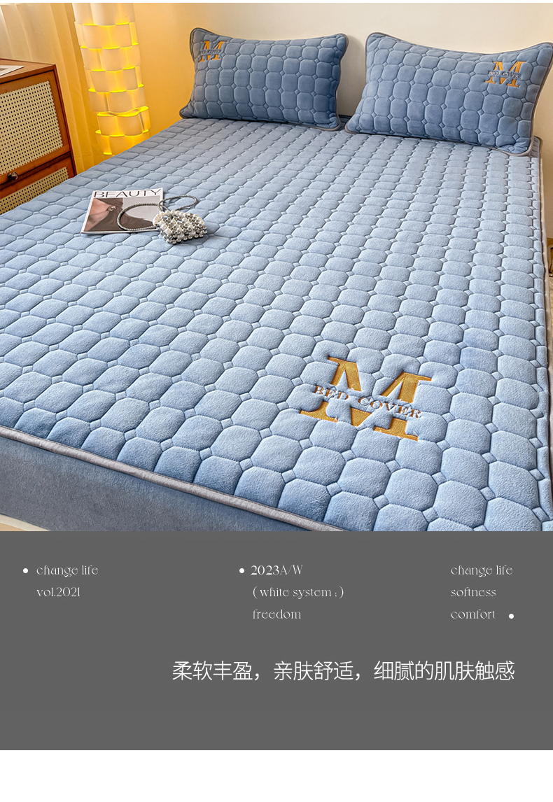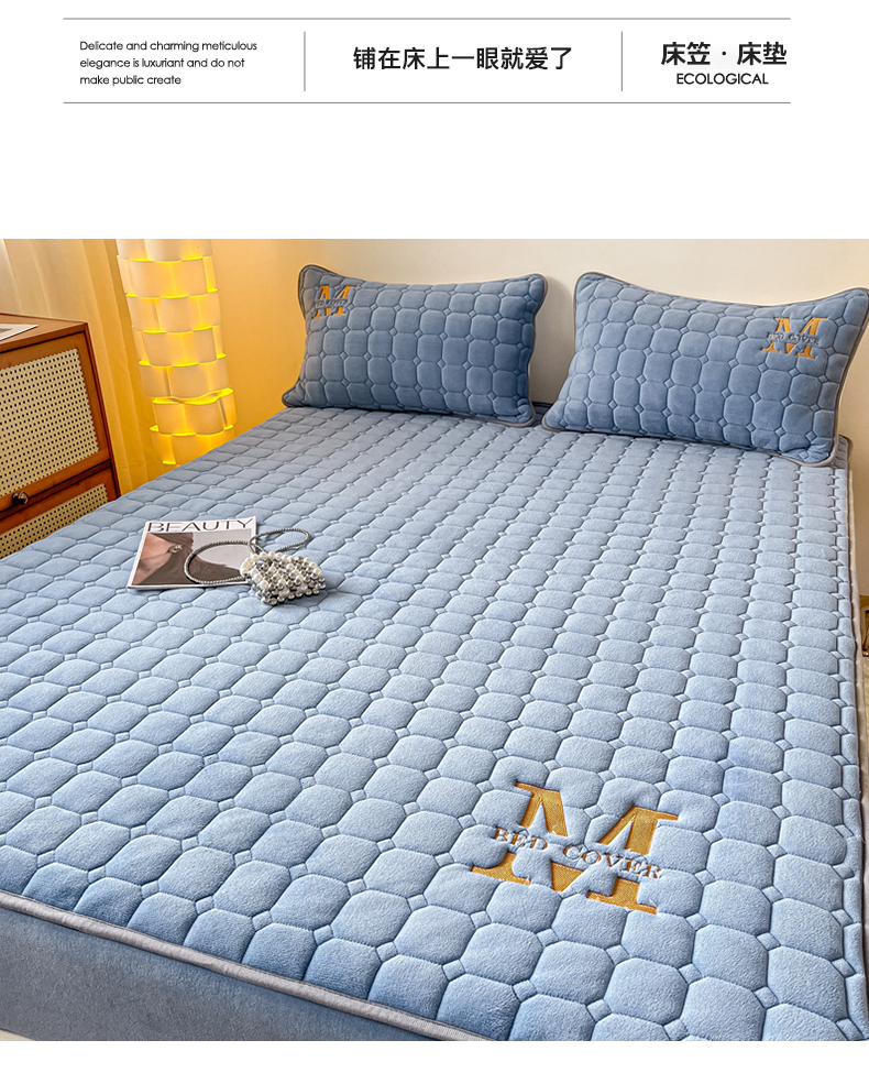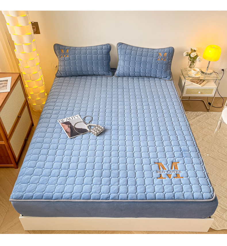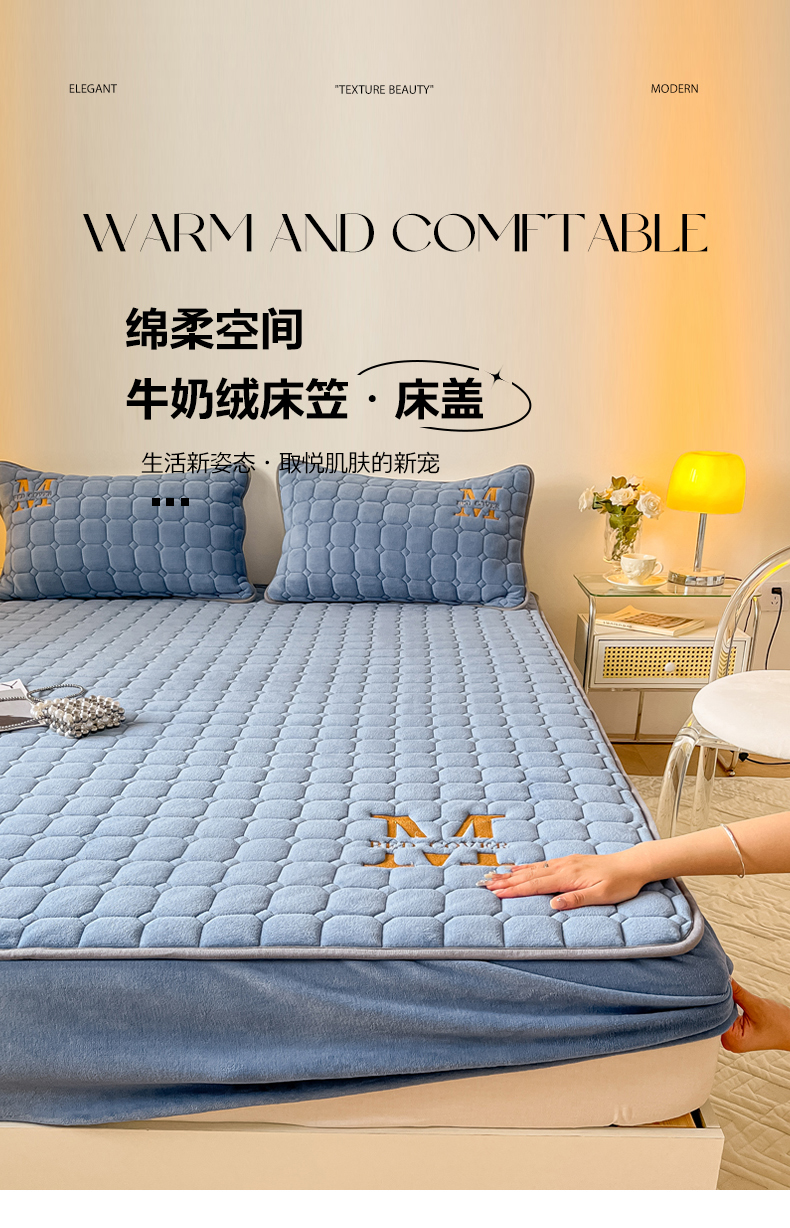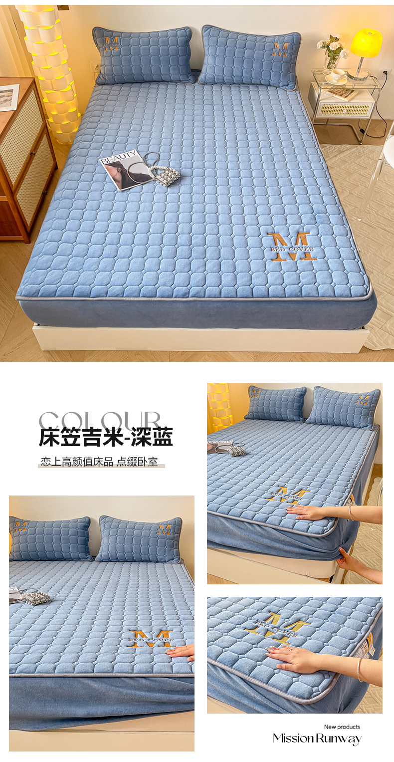 慕尚家纺 2025新款牛奶绒夹棉宽边工艺系列床笠三件套-吉米 床笠吉米-深蓝