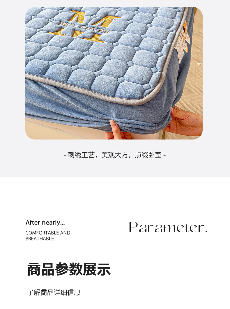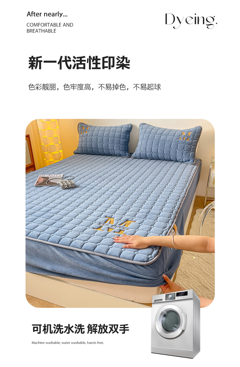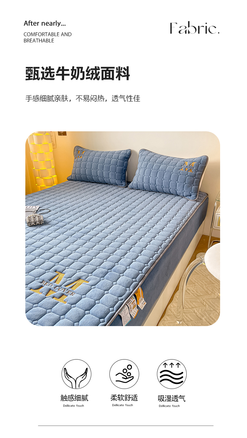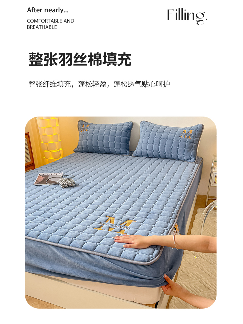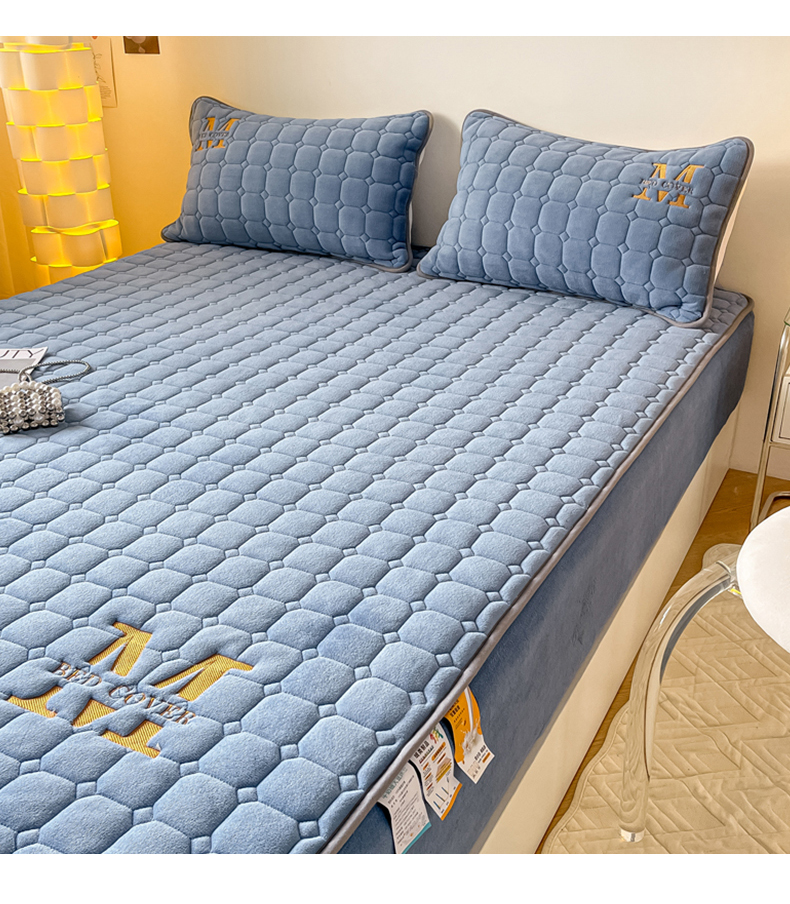 慕尚家纺 2025新款牛奶绒夹棉宽边工艺系列床笠三件套-吉米 床笠吉米-深蓝