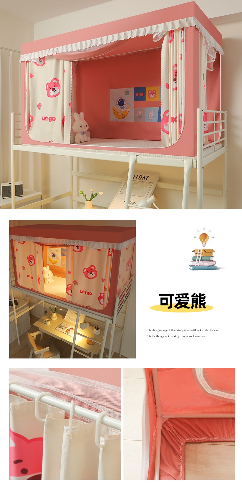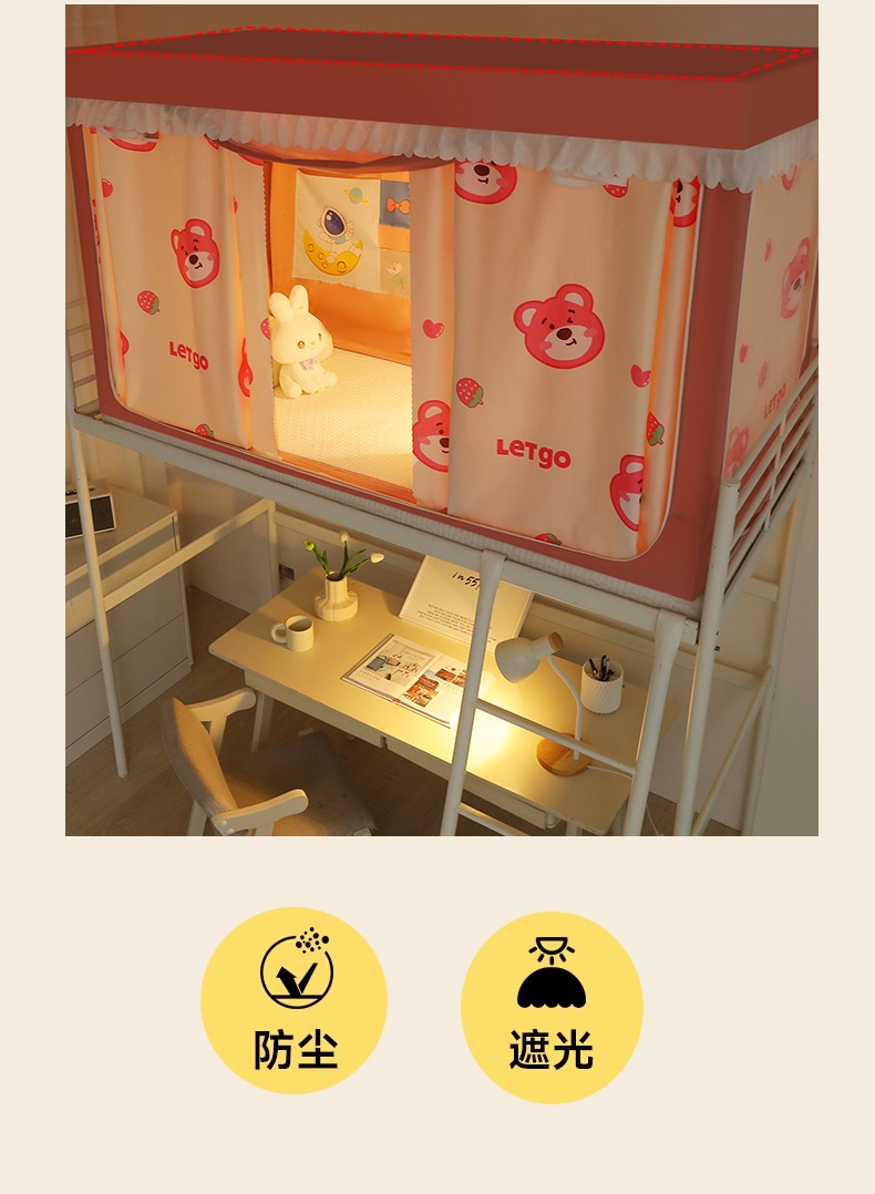 当前位置: 91家纺网 > 商品网购 > 床上用品 > 蚊帐 > 学生蚊帐 > 迷仙巢 2023新款99%加厚遮光布涂银强遮光三开门学生蚊帐 可爱熊