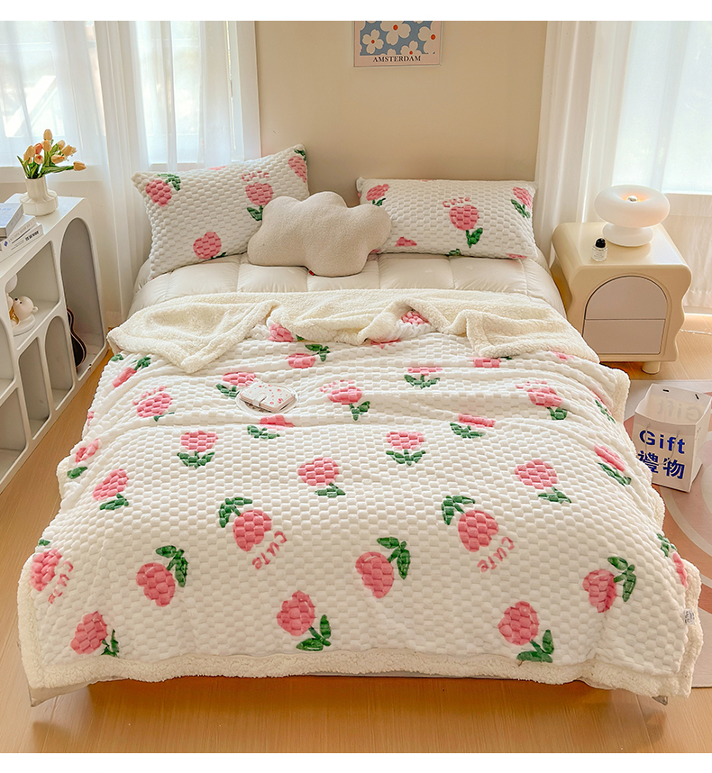 网客 2024新款豆豆绒印花被套毯 郁金香