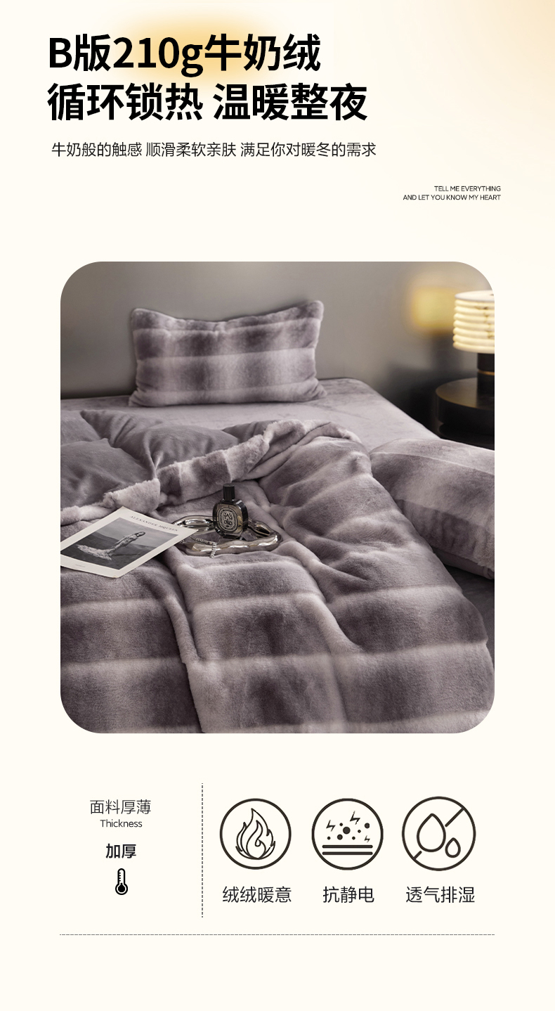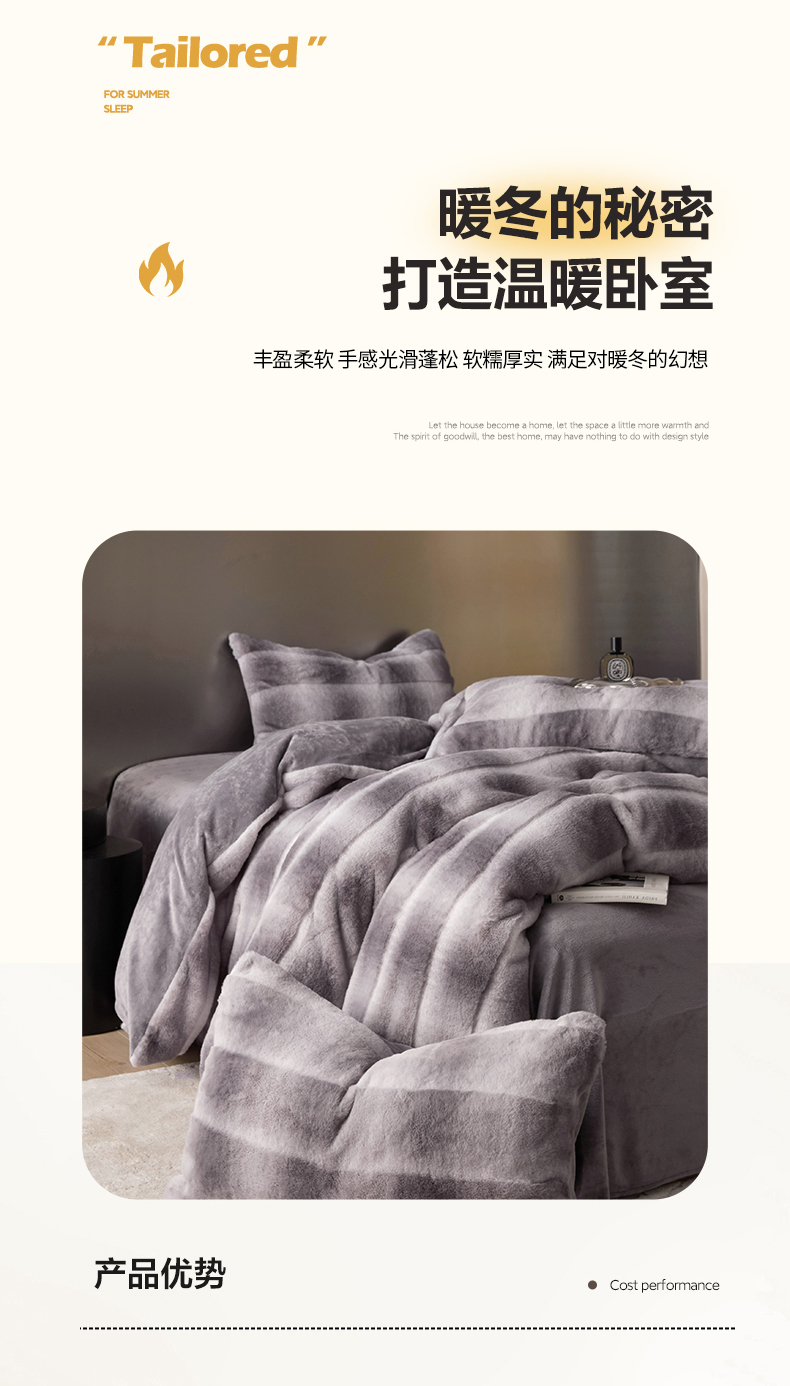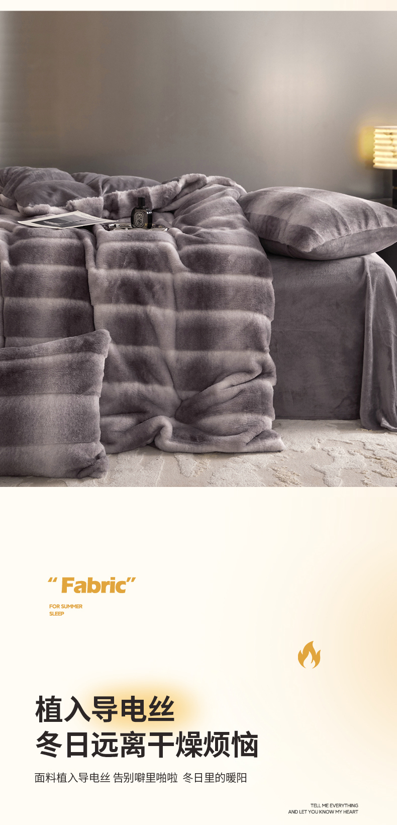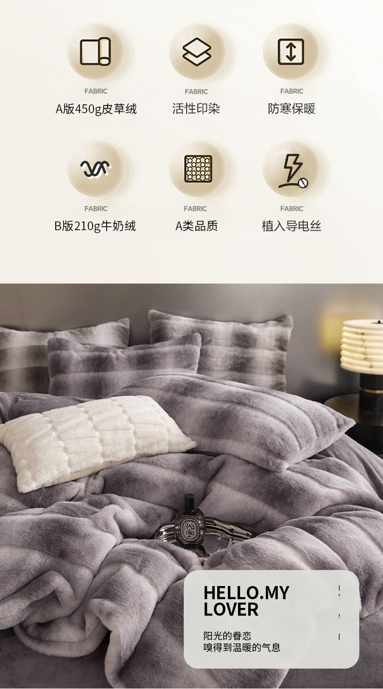 金奇达家纺 2025秋冬保暖加厚绒类皮草绒四件套-【赛琳娜】系列 赛琳娜-紫灰