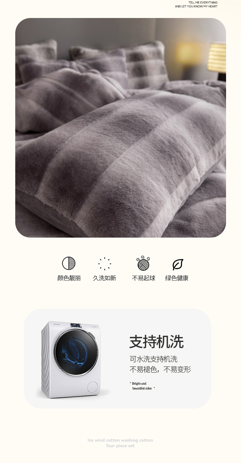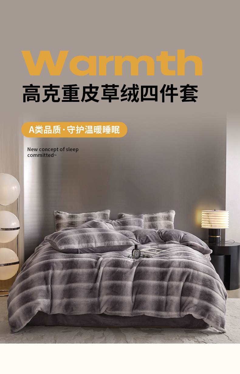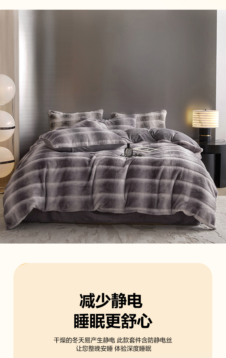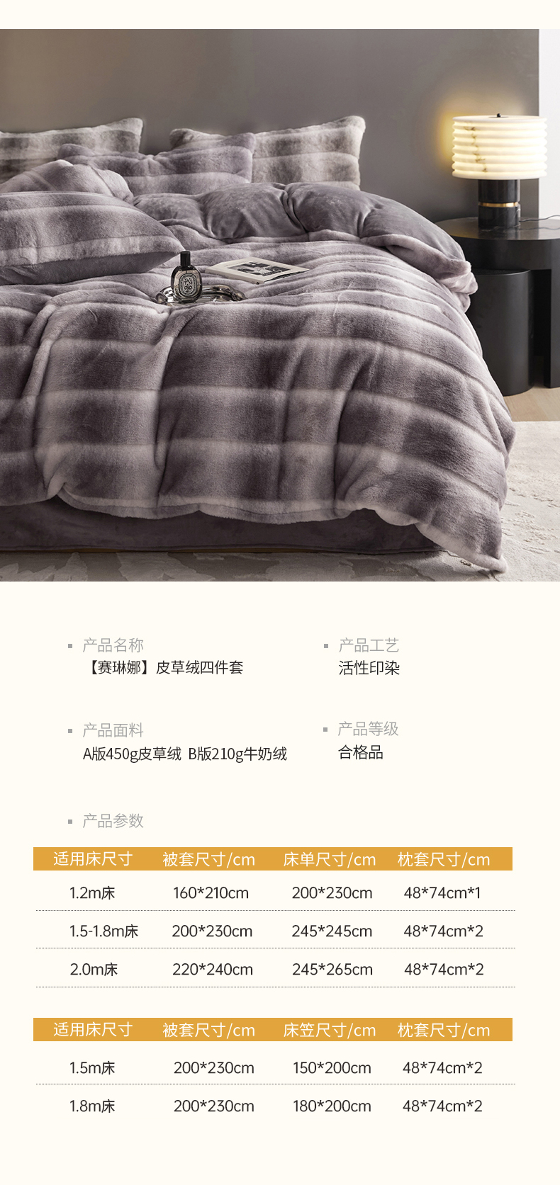 商品名称:金奇达家纺 2025秋冬保暖加厚绒类皮草绒四件套-【赛琳娜】系列 赛琳娜-紫灰