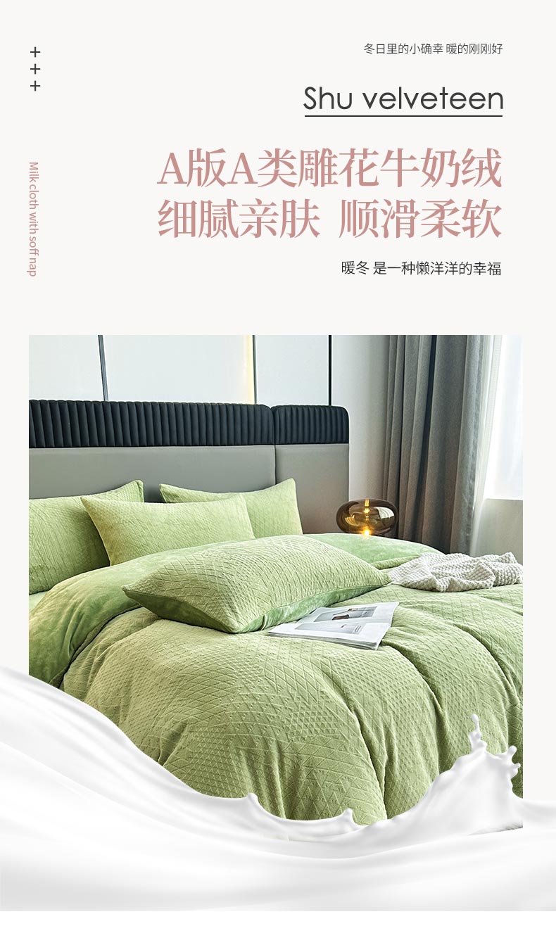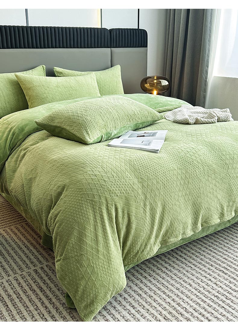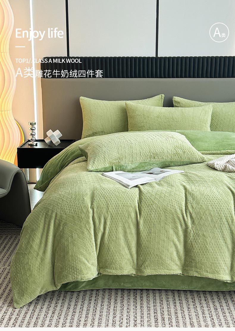 铠畅家纺 2023爆款A类230g立体雕花牛奶绒四件套 七巧板绿