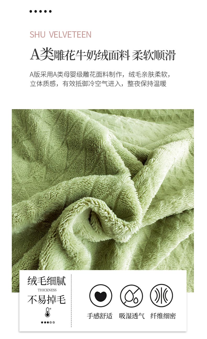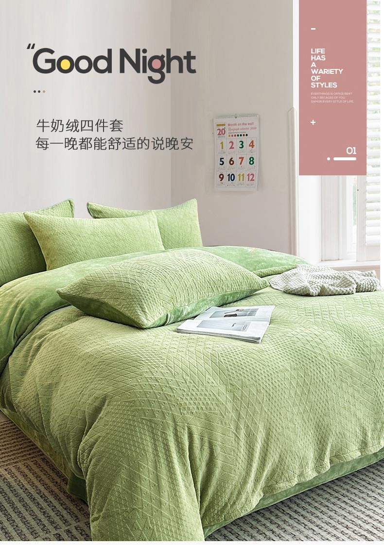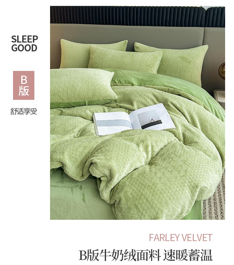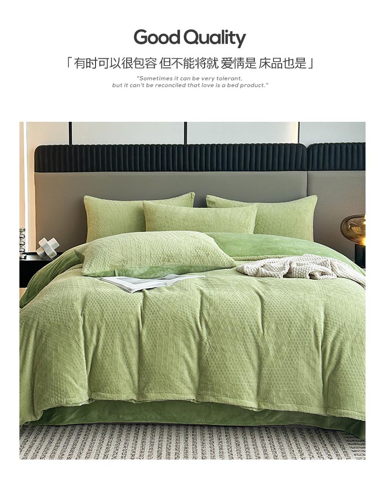 铠畅家纺 2023爆款A类230g立体雕花牛奶绒四件套 七巧板绿