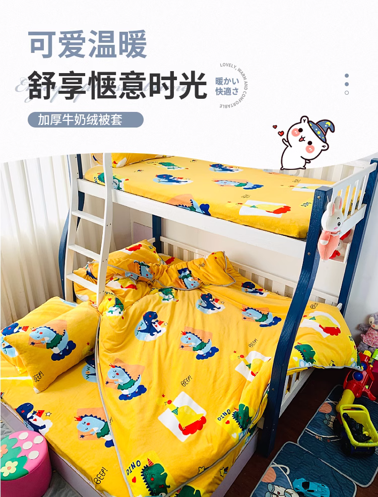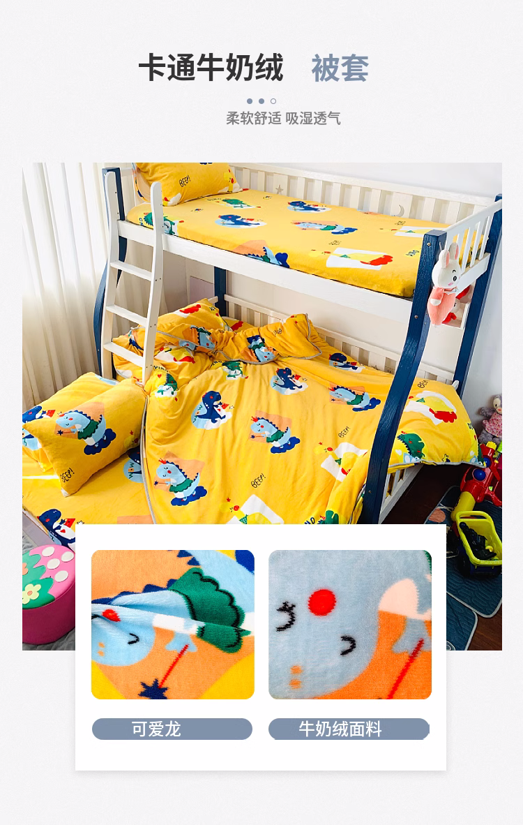 • 91家纺网 家纺一手货源 找家纺 小虾米 2023新款上下床加厚牛奶绒被套 可爱龙