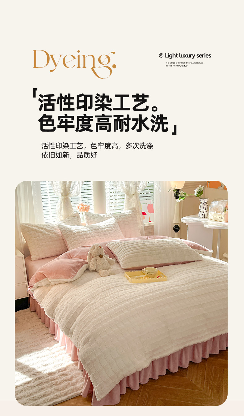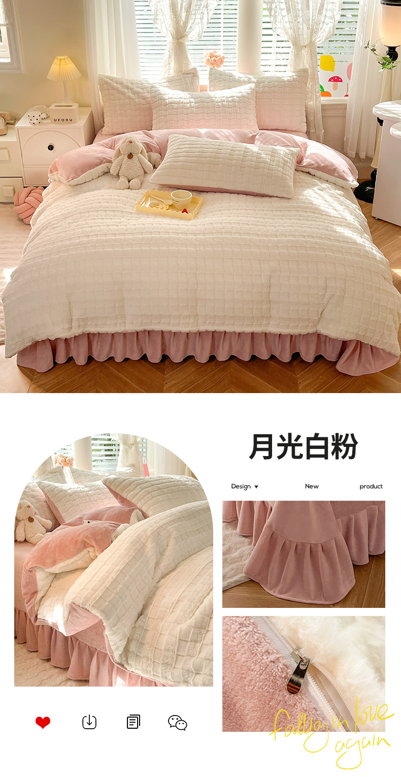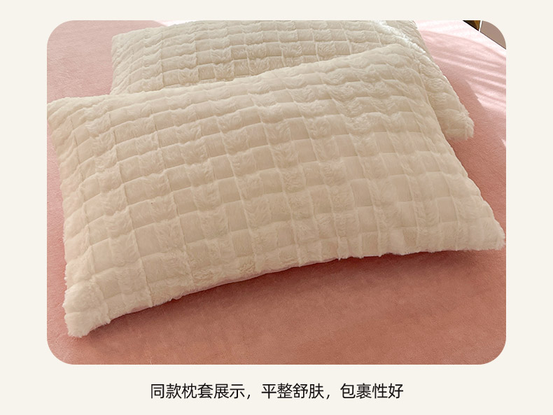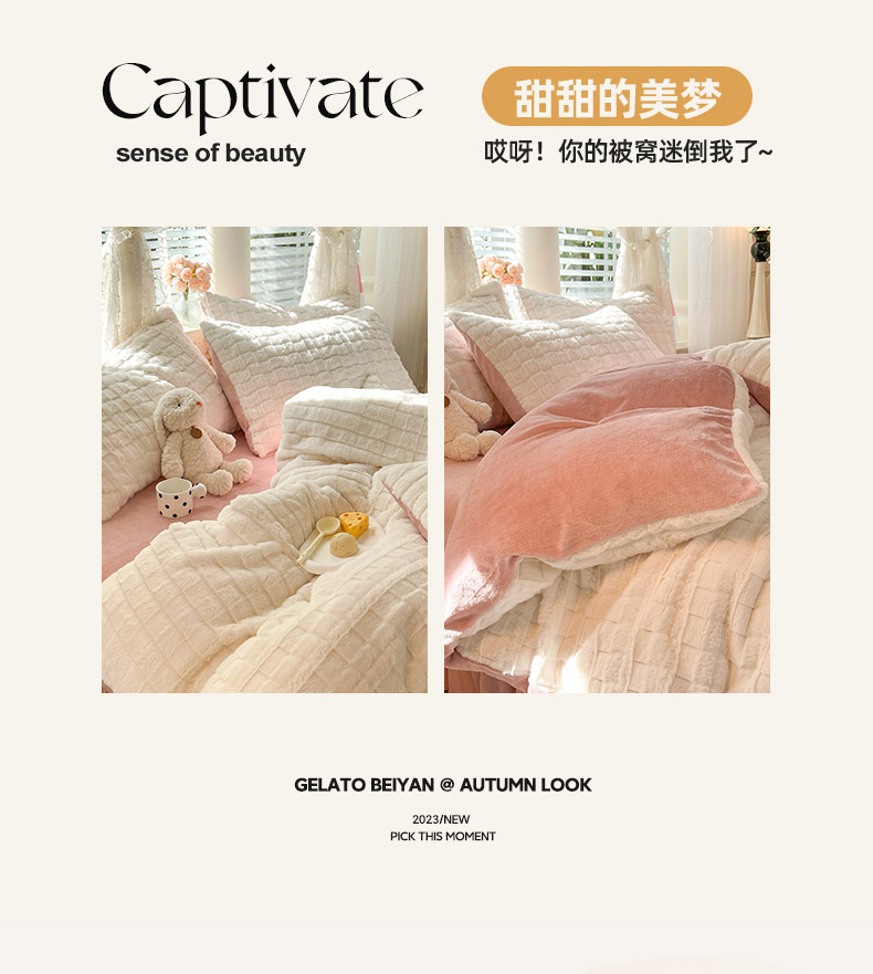 欧冠家纺 2023新款高克重兔绒牛奶绒四件套 月光白粉