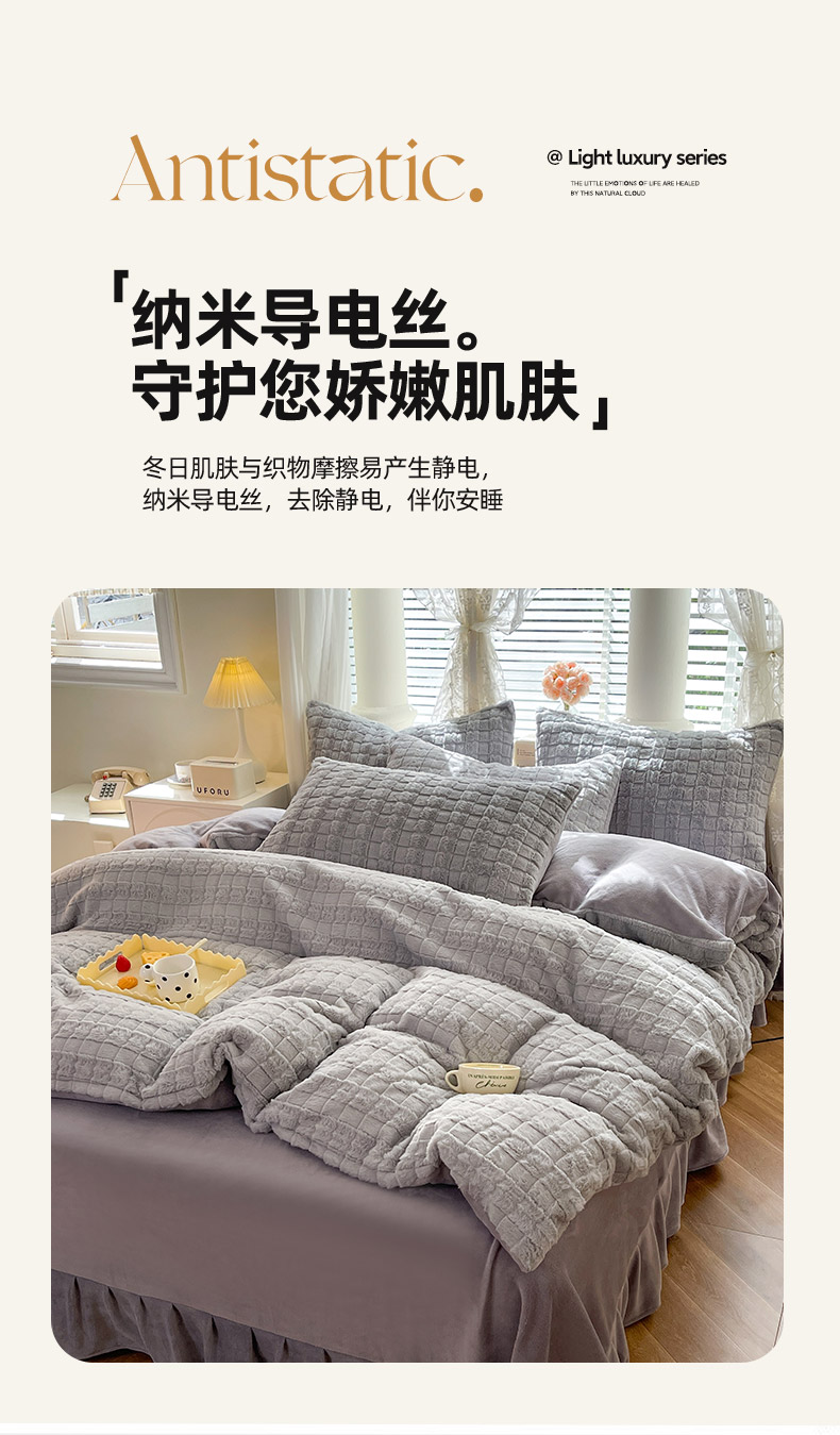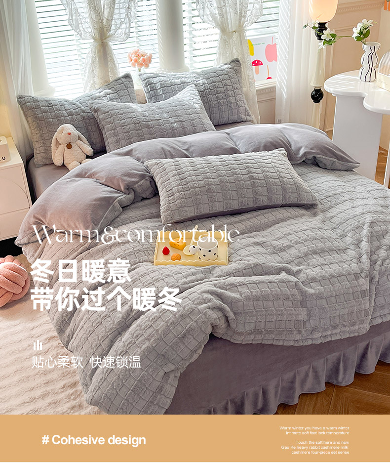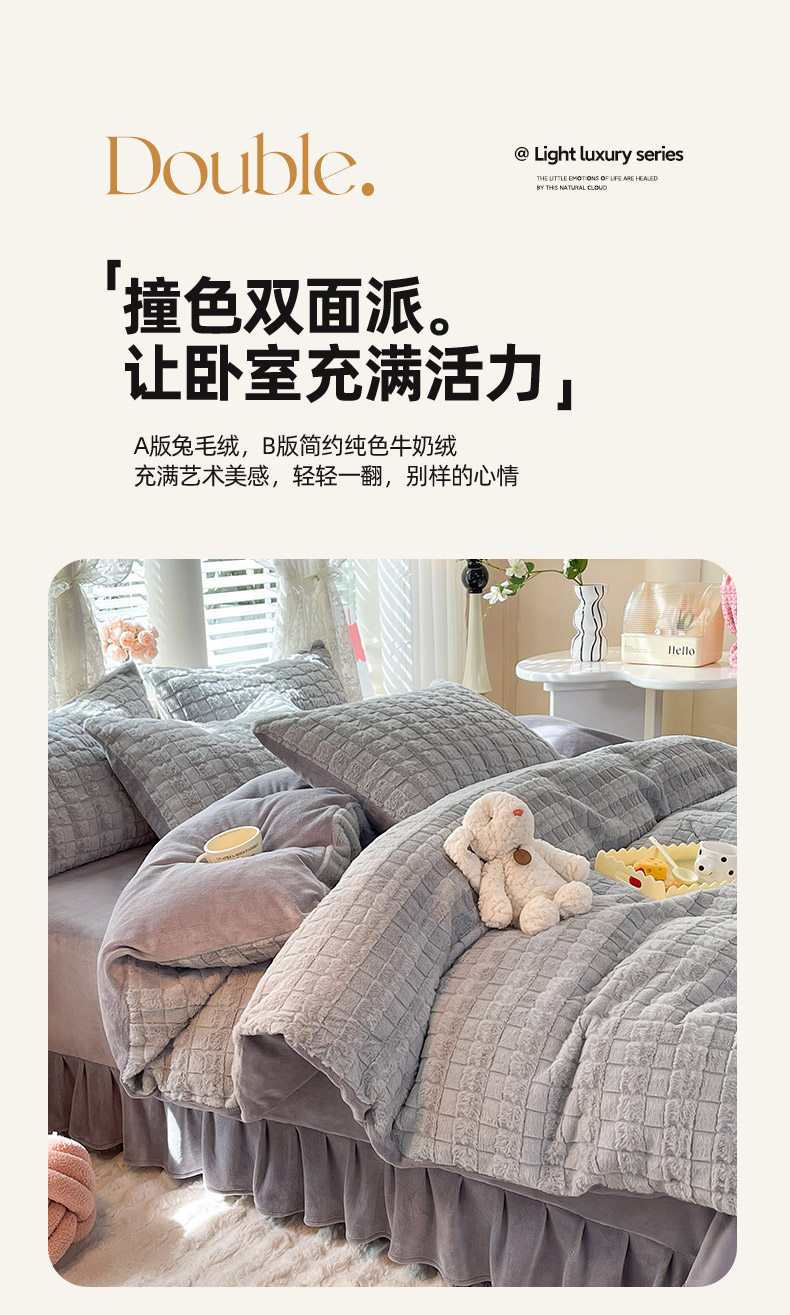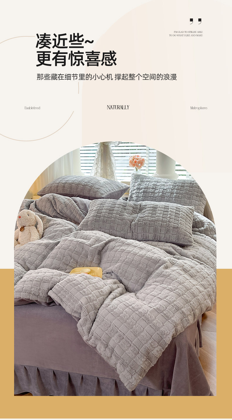 商品名称:丝印良品 2023新款高克重兔绒牛奶绒四件套 优雅灰