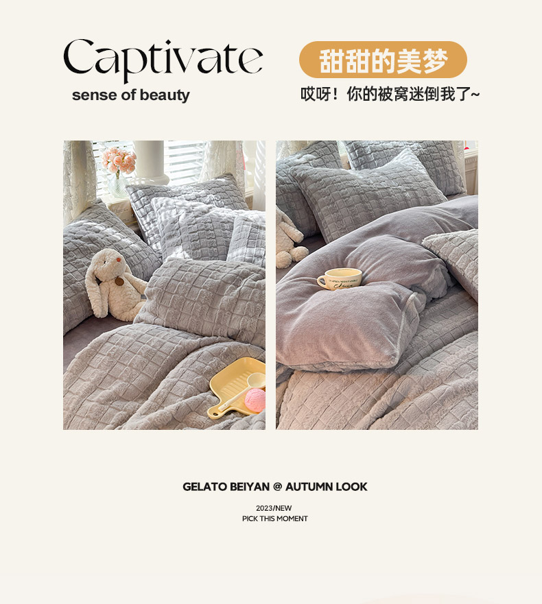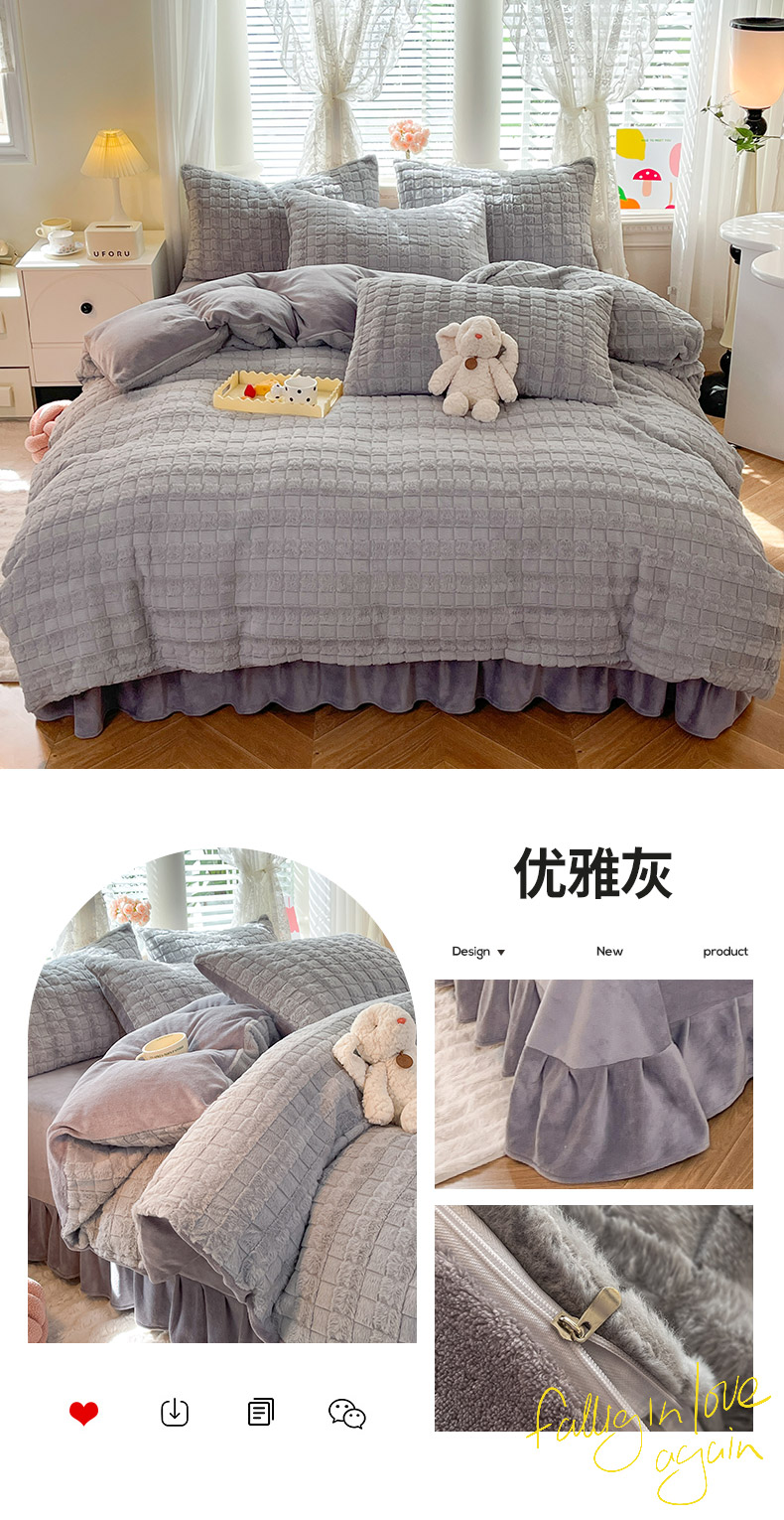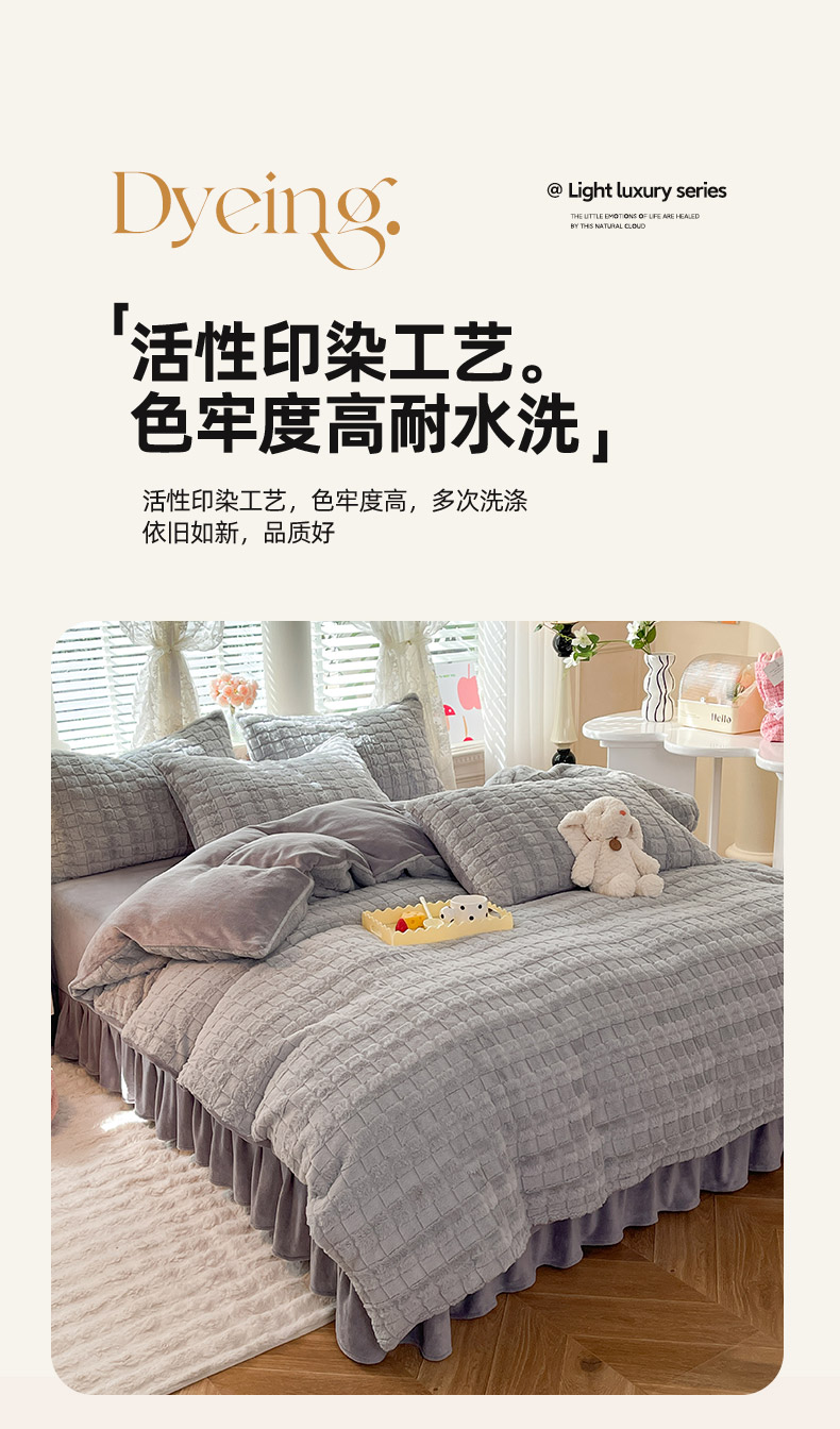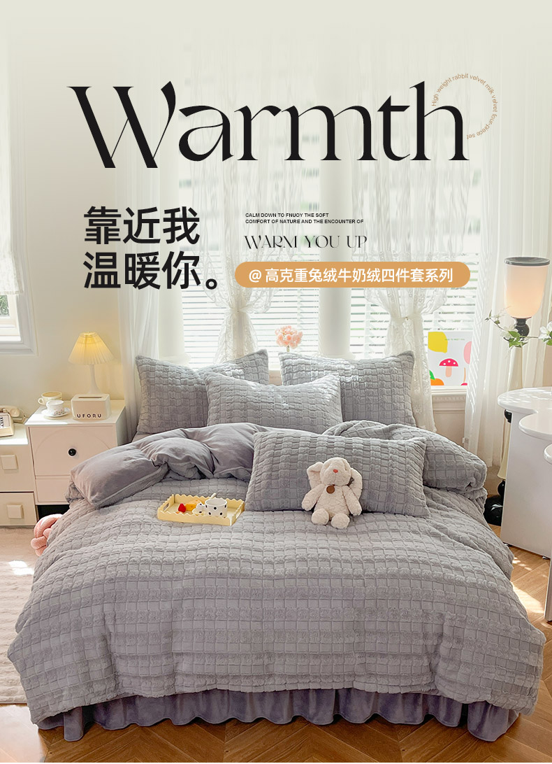 商品名称:丝印良品 2023新款高克重兔绒牛奶绒四件套 优雅灰
