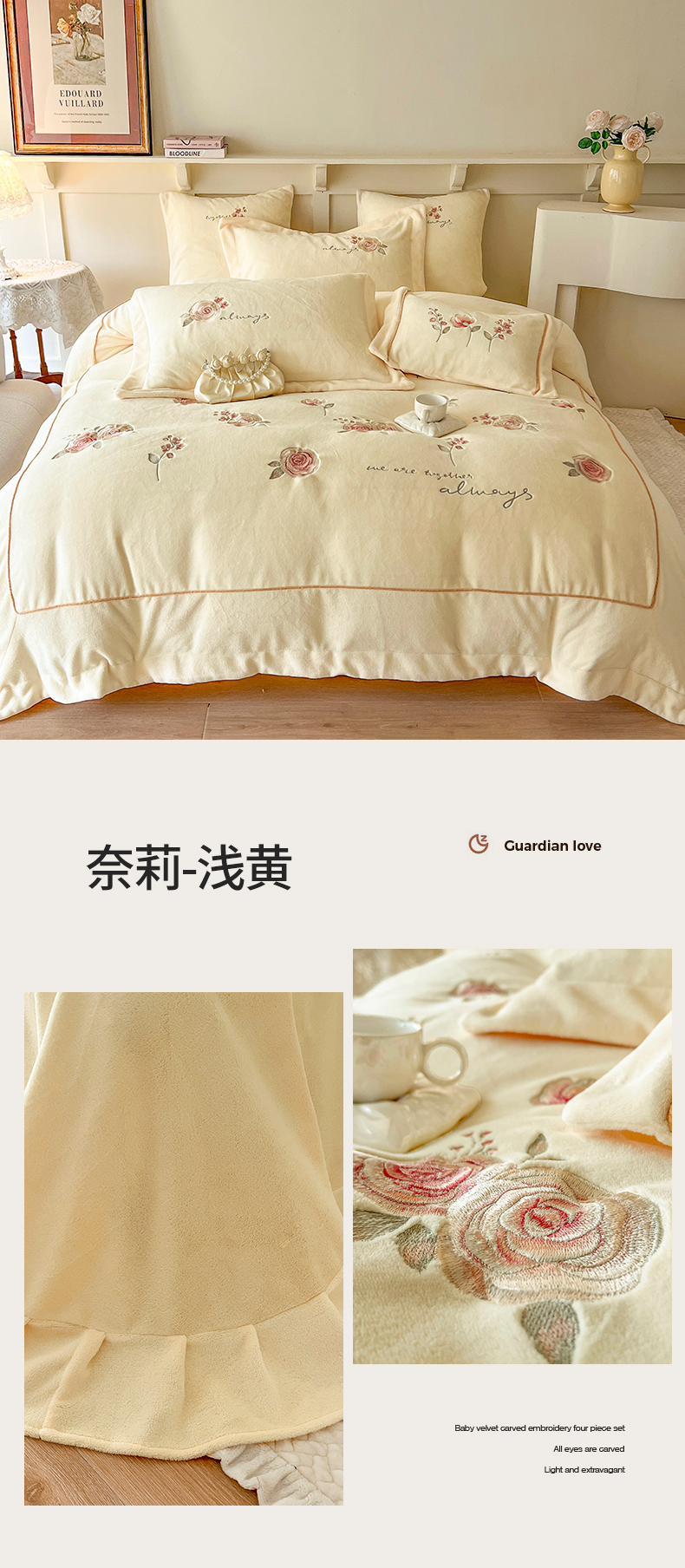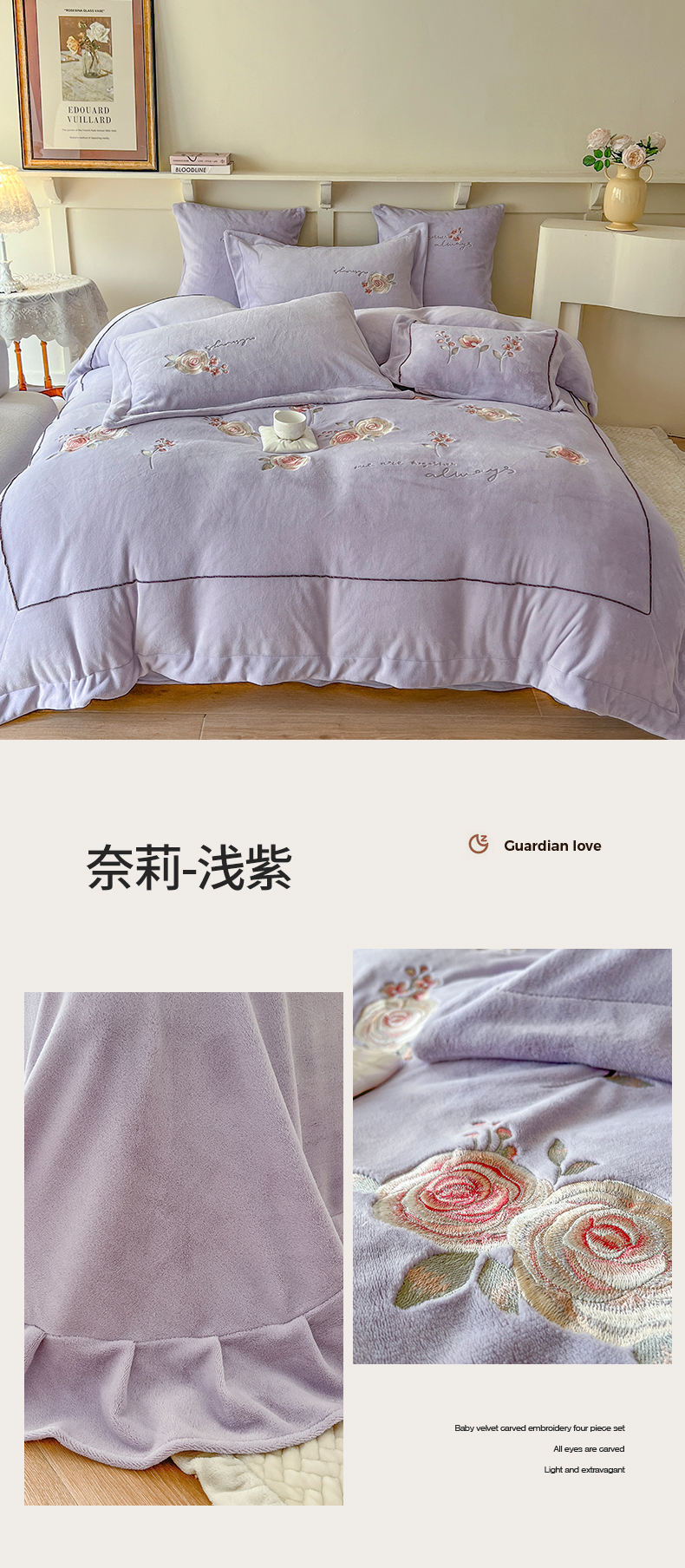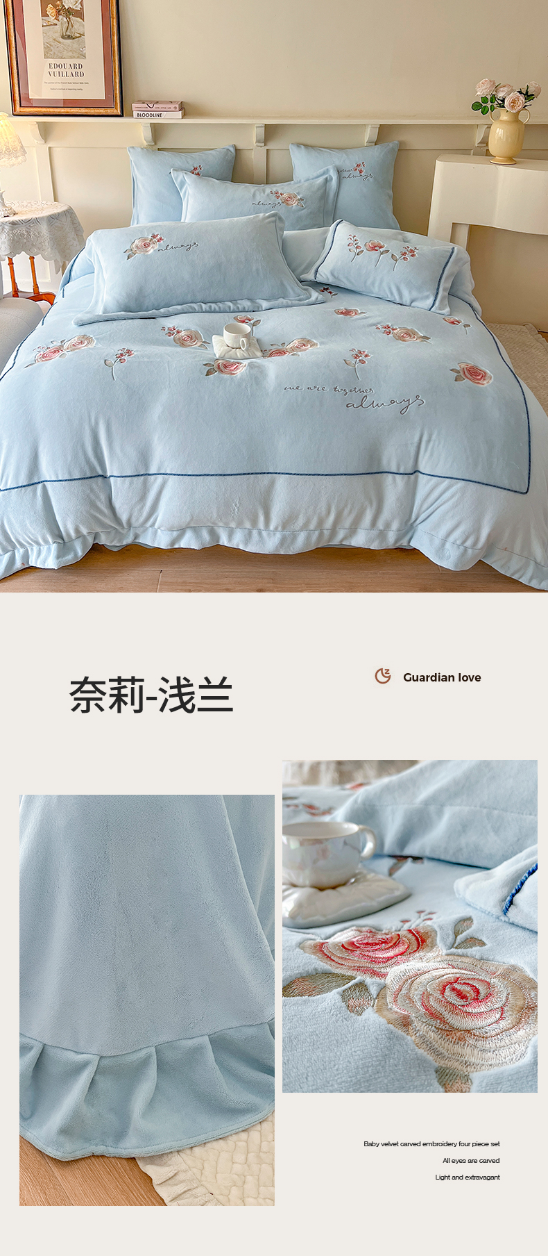 商品名称:(总)佰亿莱2024新款牛奶绒刺绣四件套-奈莉(含包装)