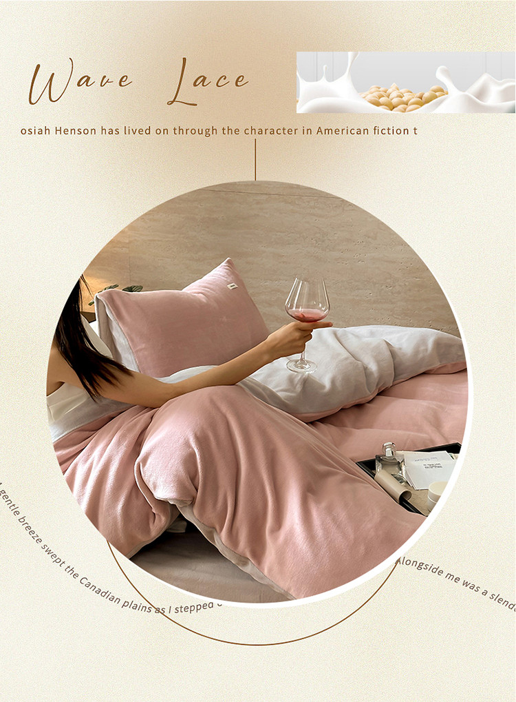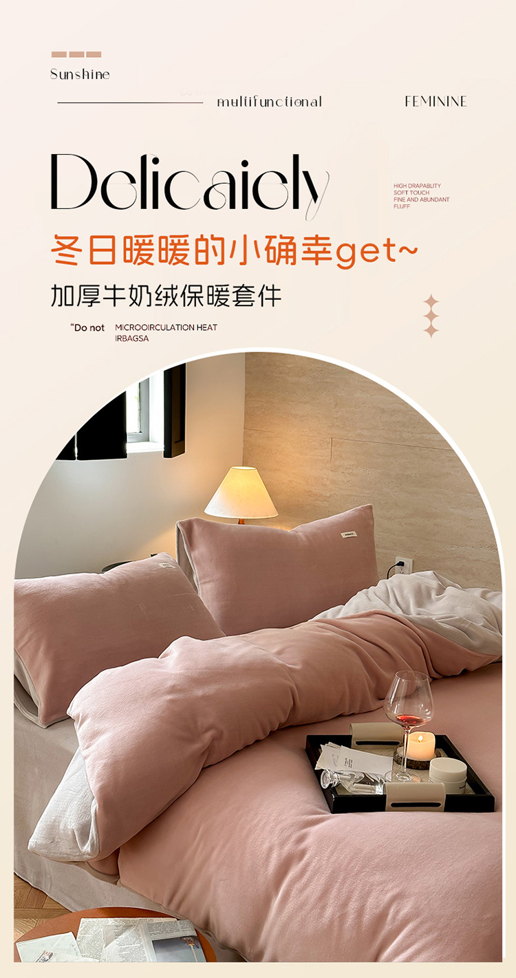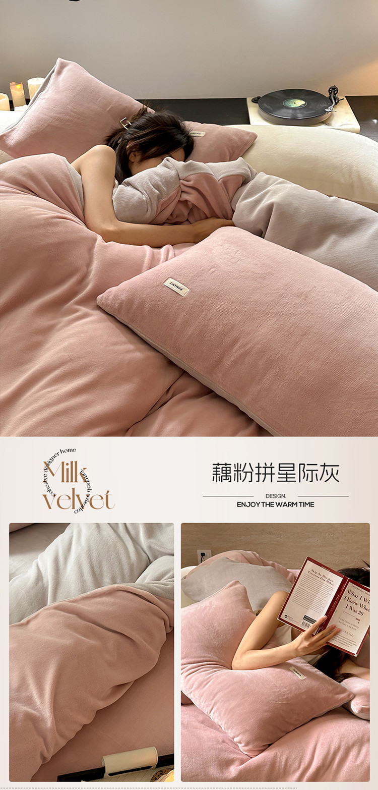 当前位置: 91家纺网 > 商品网购 > 床品套件 > 四件套 > 牛奶绒四件套 > 时光里 2023新款双拼牛奶绒四件套藕粉拼星际灰