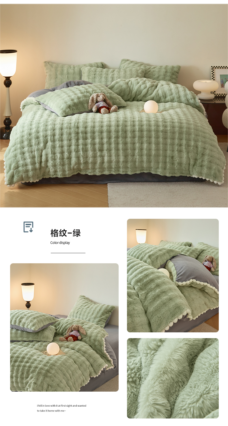 商品名称:同田家纺 2023新款兔毛绒兔兔绒獭兔绒牛奶绒四件套 格纹-绿