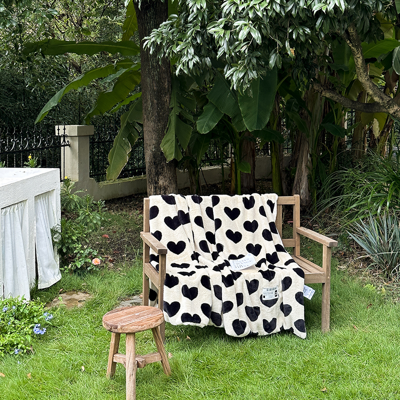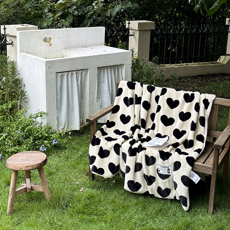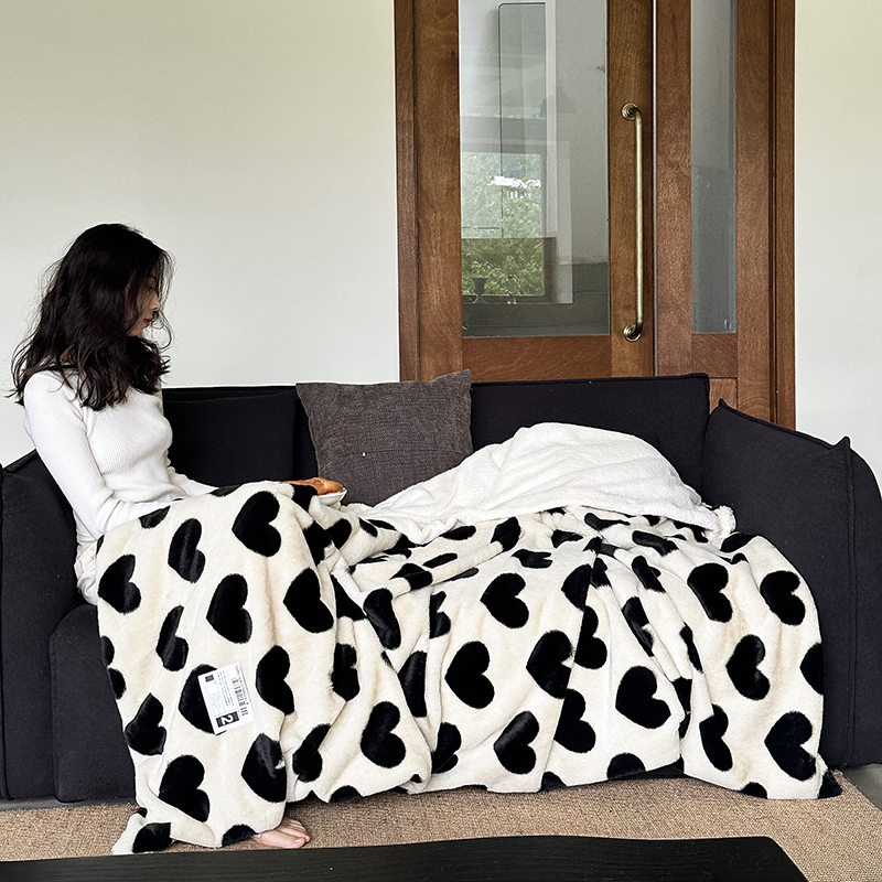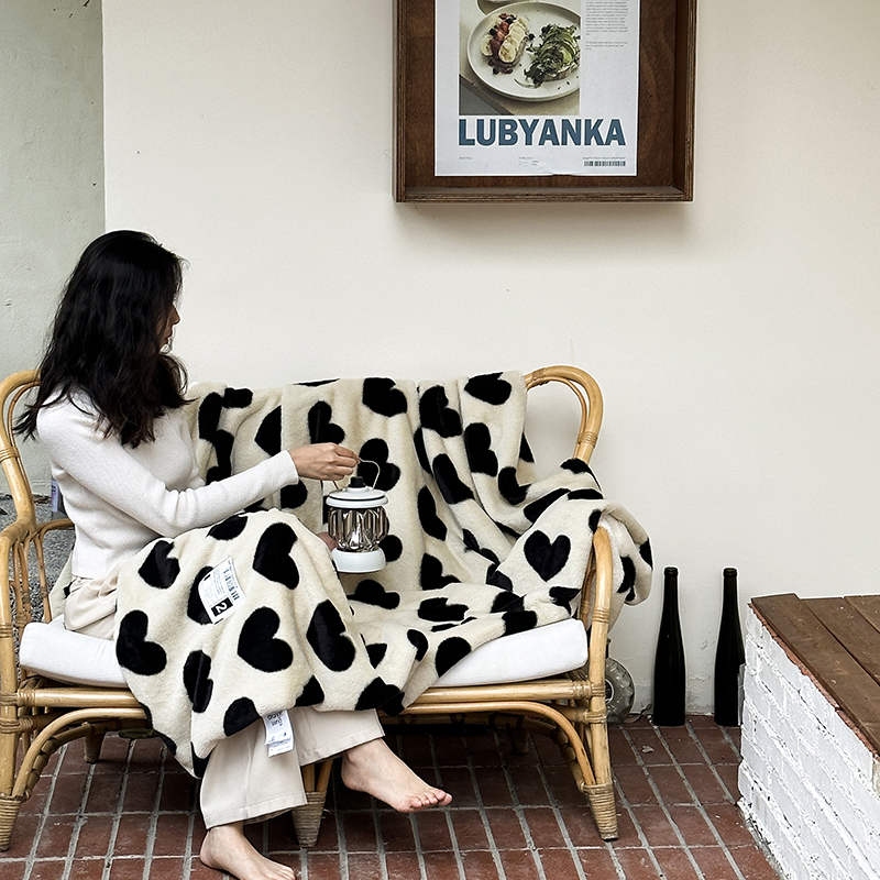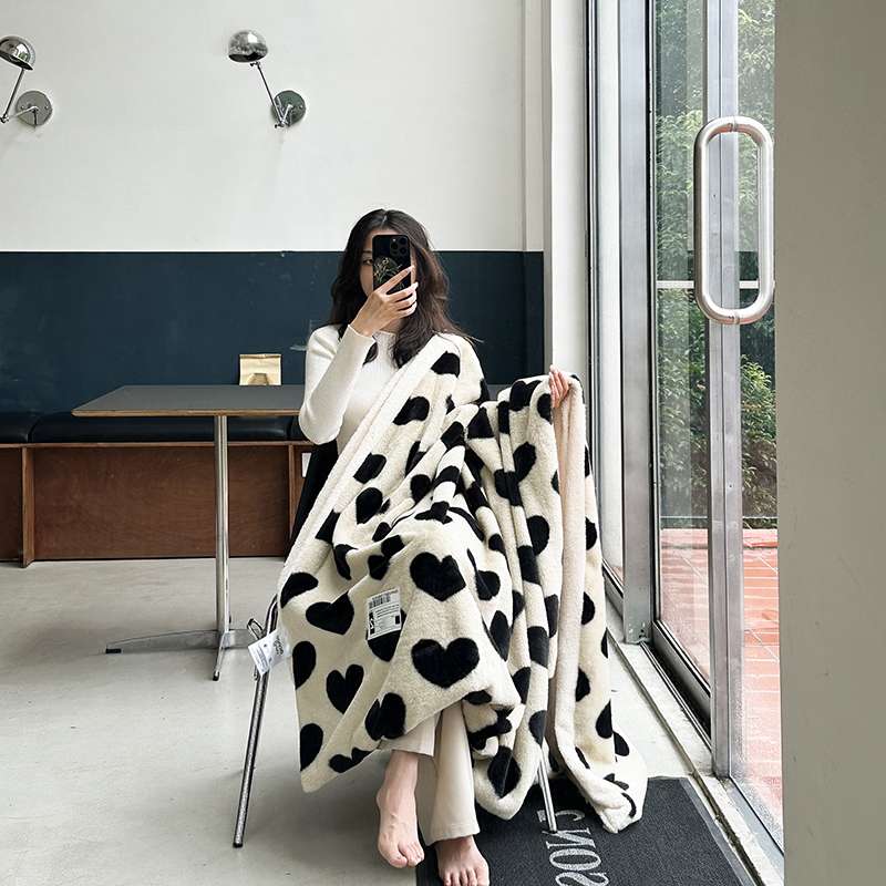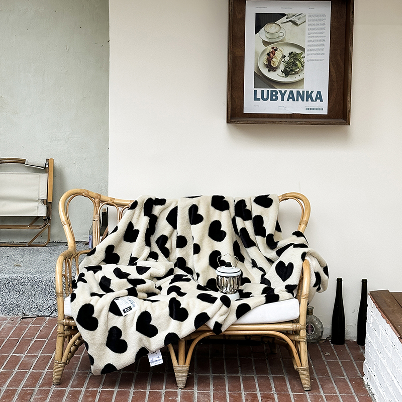 桔子家纺 2023新款兔兔绒皮草毛毯 奶茶爱心