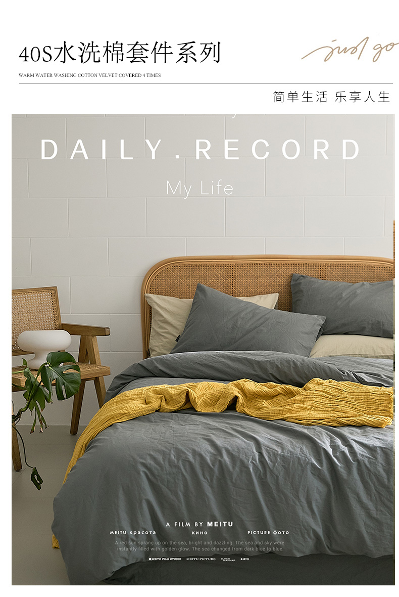 当前位置: 91家纺网 > 商品网购 > 床品套件 > 四件套 > 水洗棉四件套 > 新款秋冬40S水洗棉四件套-晚风(英文版) 晚风-青灰