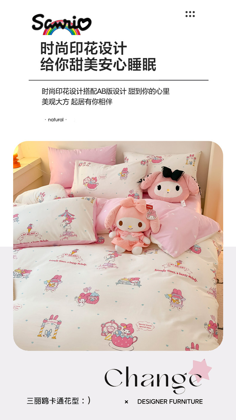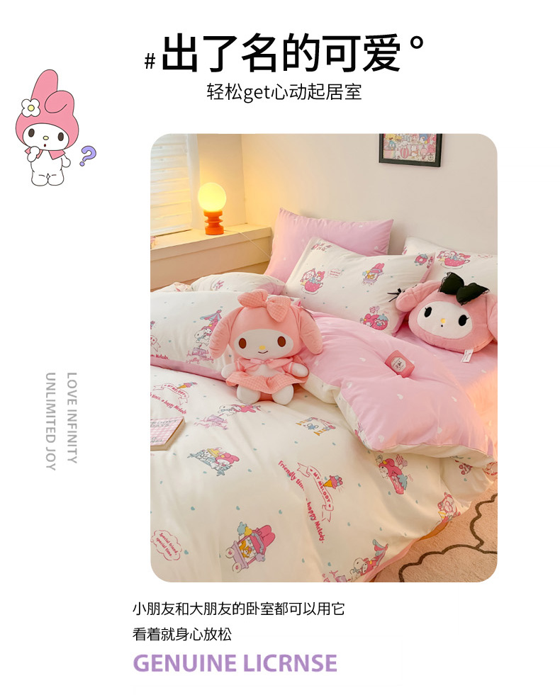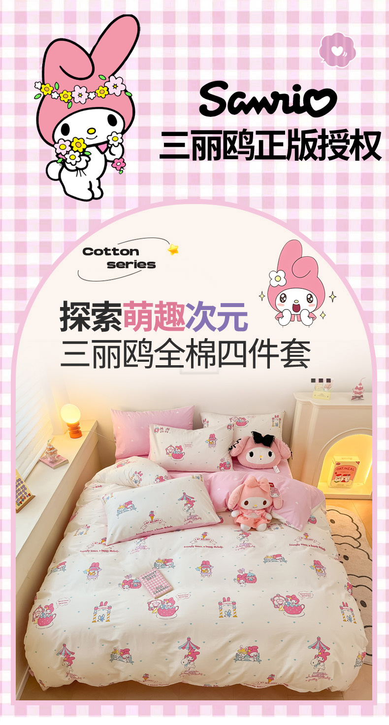 暮思家居 2023新款正版授权三丽鸥全棉四件套系列第二批 开心美乐蒂