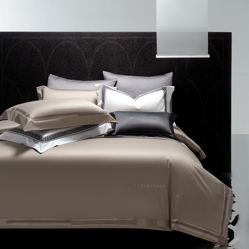 总玖玖爱家纺 纯棉100支贡缎长绒棉刺绣被套三件套四件套加大四件套,白色,高级灰,卡其,蓝灰,绿色,浅桔,深蓝,紫豆沙