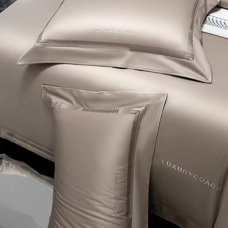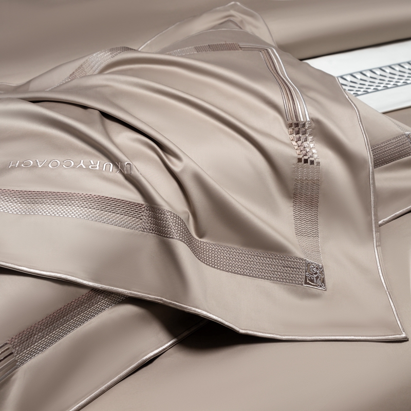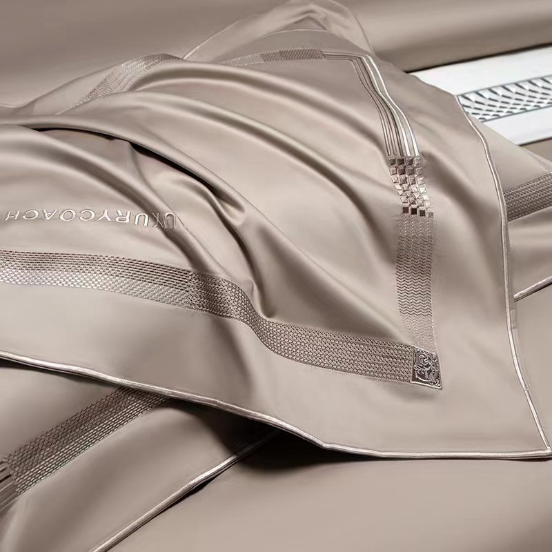 玖玖爱 2023新款秋冬180支长绒棉绣花刺绣四件套-莫拉塔 香槟咖