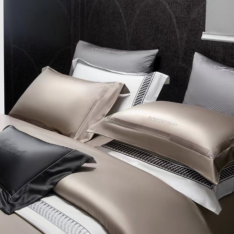 (总)玖玖爱家纺 2023新款120支贡缎长绒棉刺绣梦柔系列四件套,梦柔-香槟金,梦柔-香橙桔,梦柔-高级灰,梦柔-水蓝,梦柔-芙蓉玉