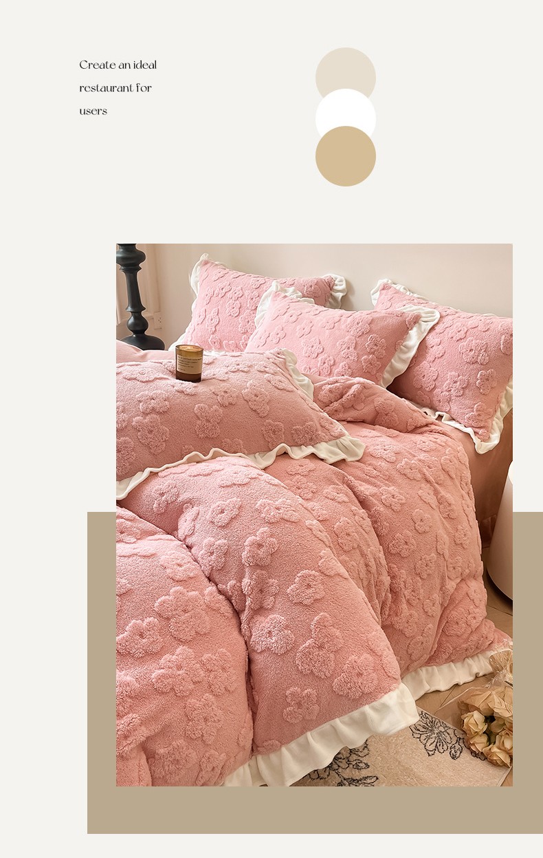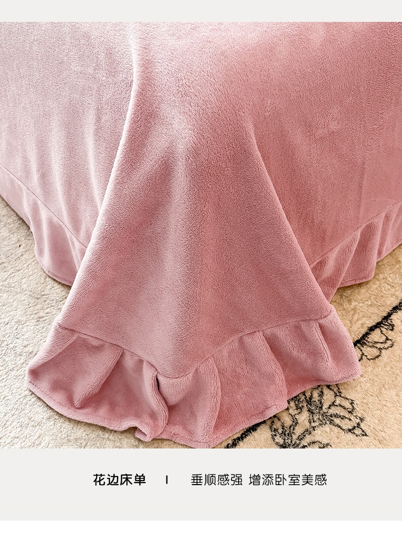 商品名称:芯贝儿 2024款小清新花边加厚保暖牛奶绒毛巾绣花宝宝绒雕花绒法莱绒四件套 莫奈花园--粉