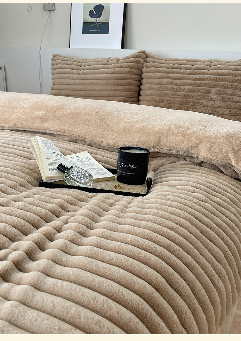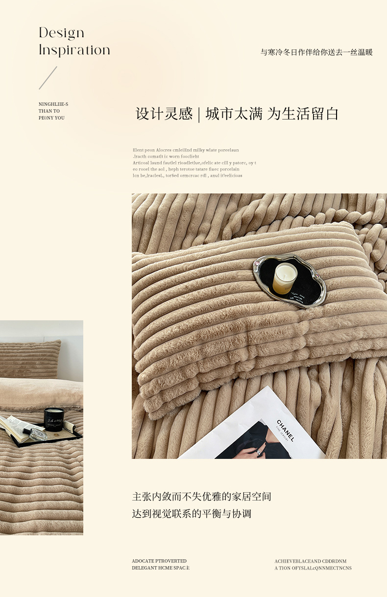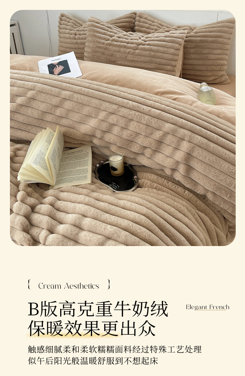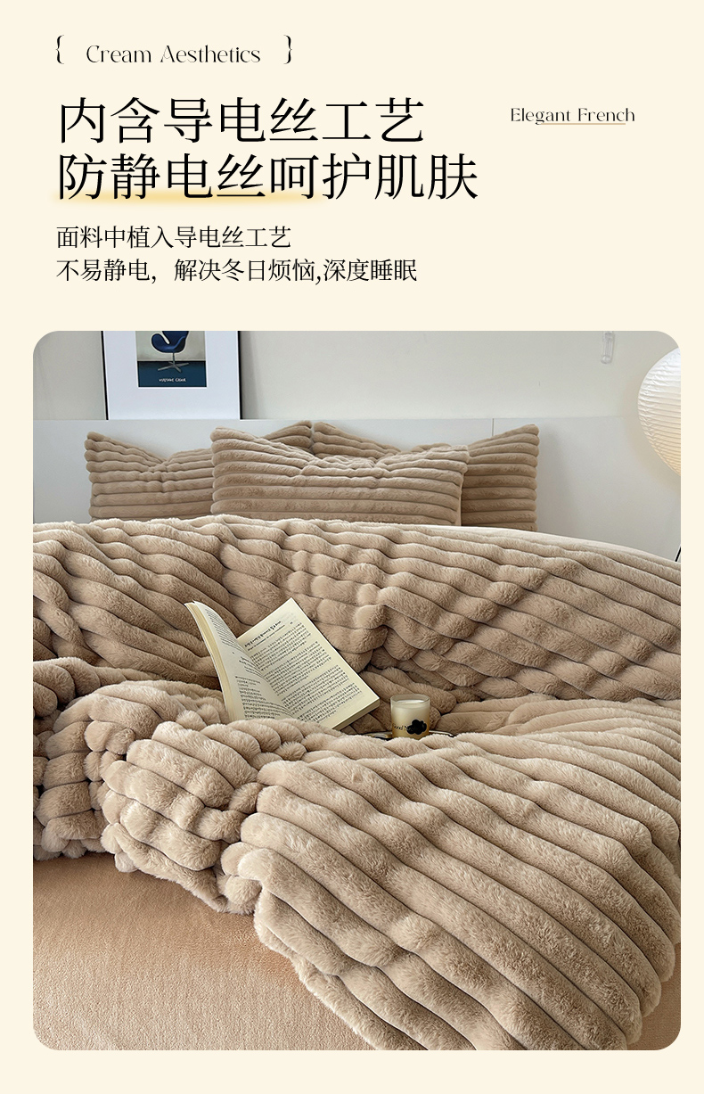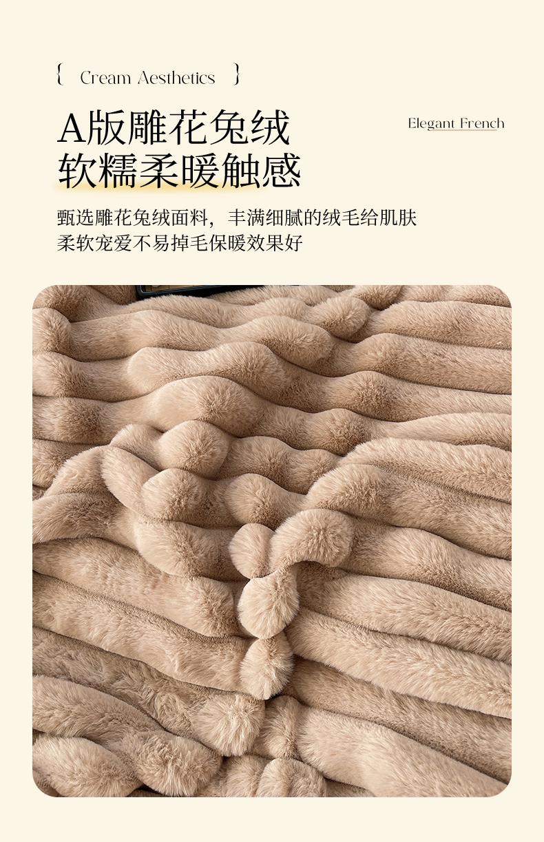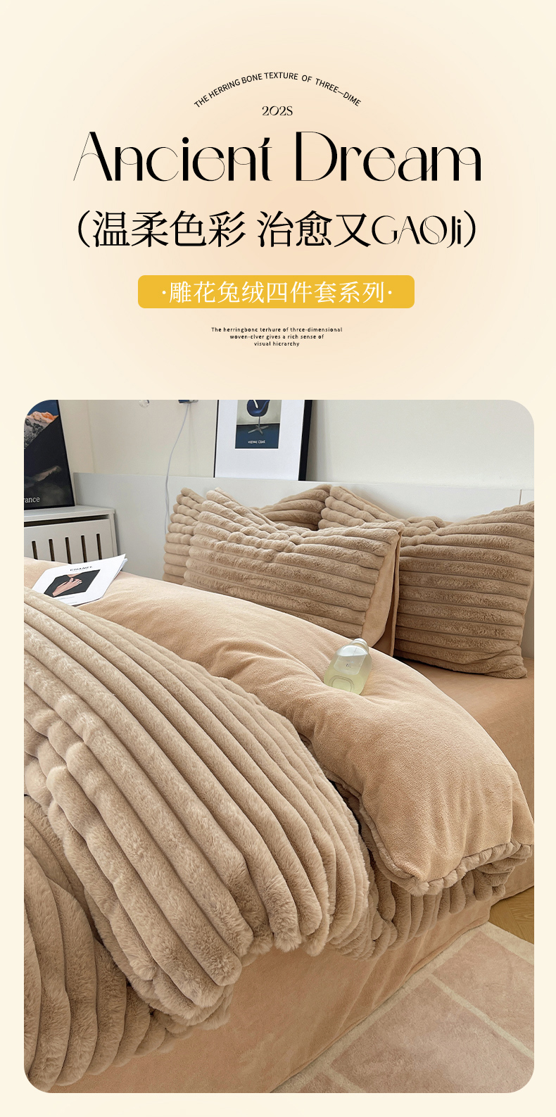 三朵家纺 2023新款加厚保暖雕花兔毛绒四件套 艾拉-奶茶卡