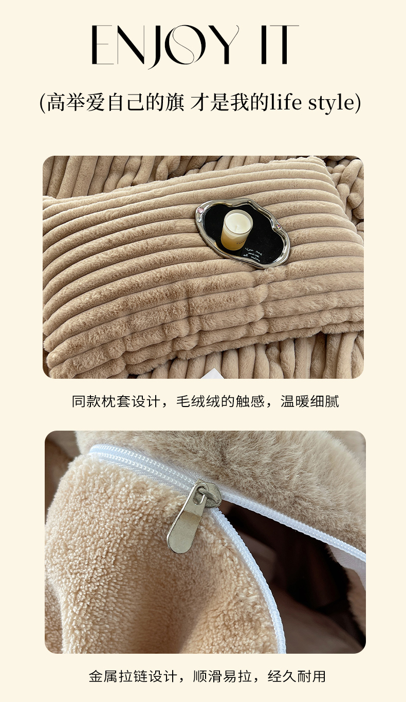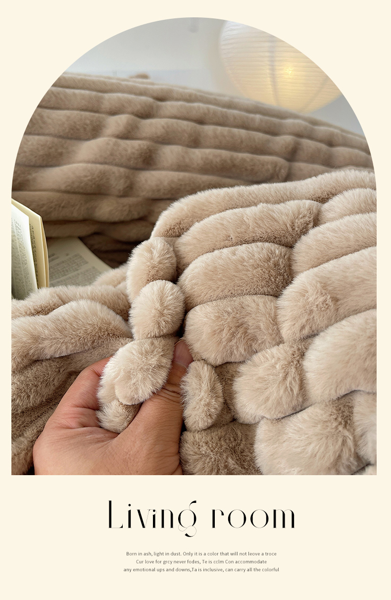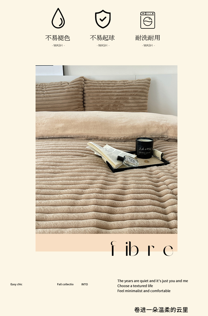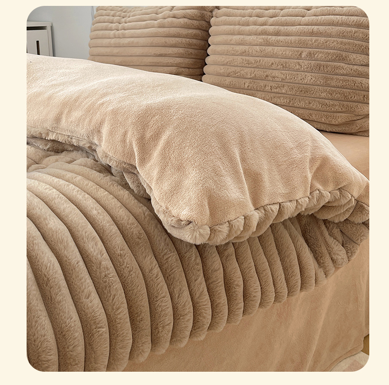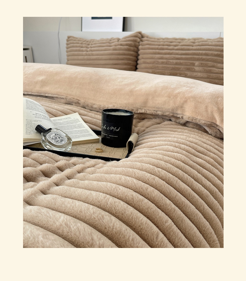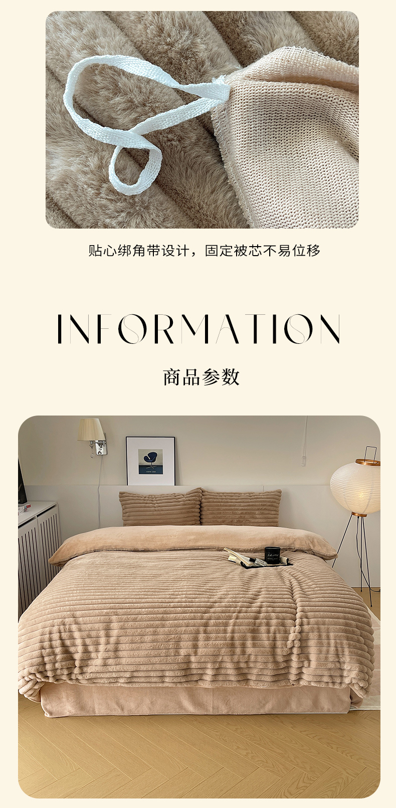 三朵家纺 2023新款加厚保暖雕花兔毛绒四件套 艾拉-奶茶卡