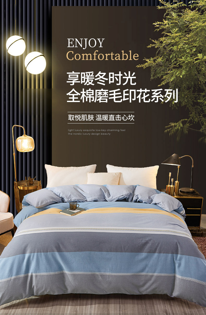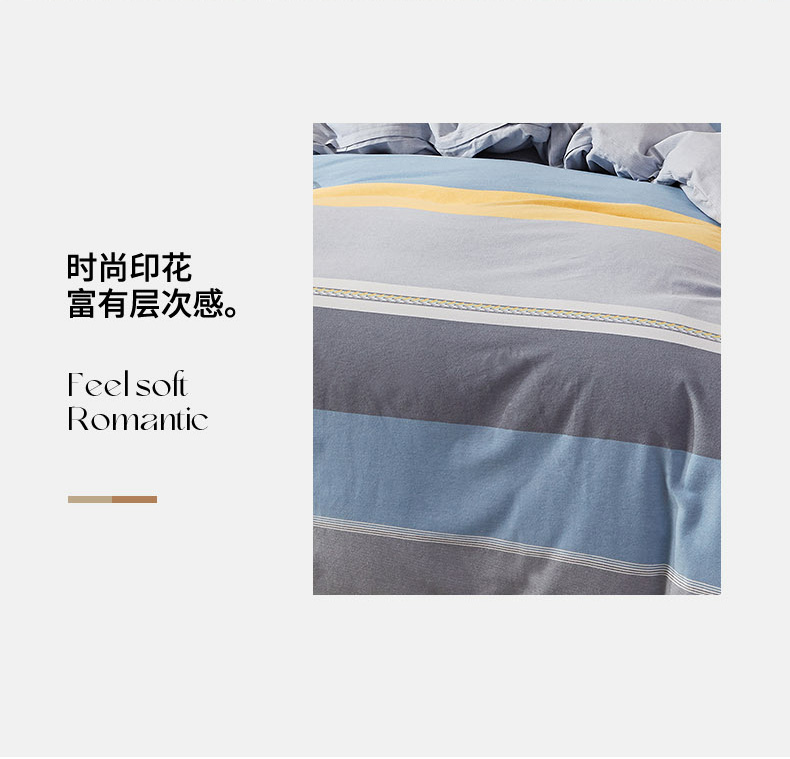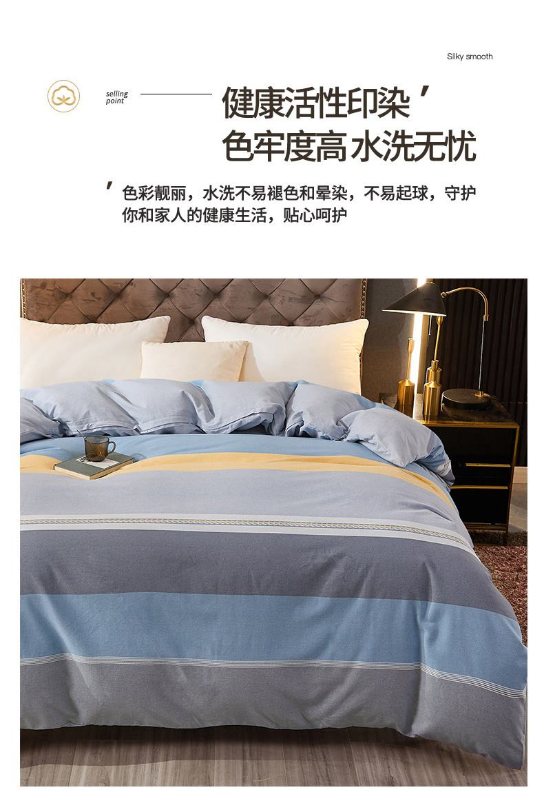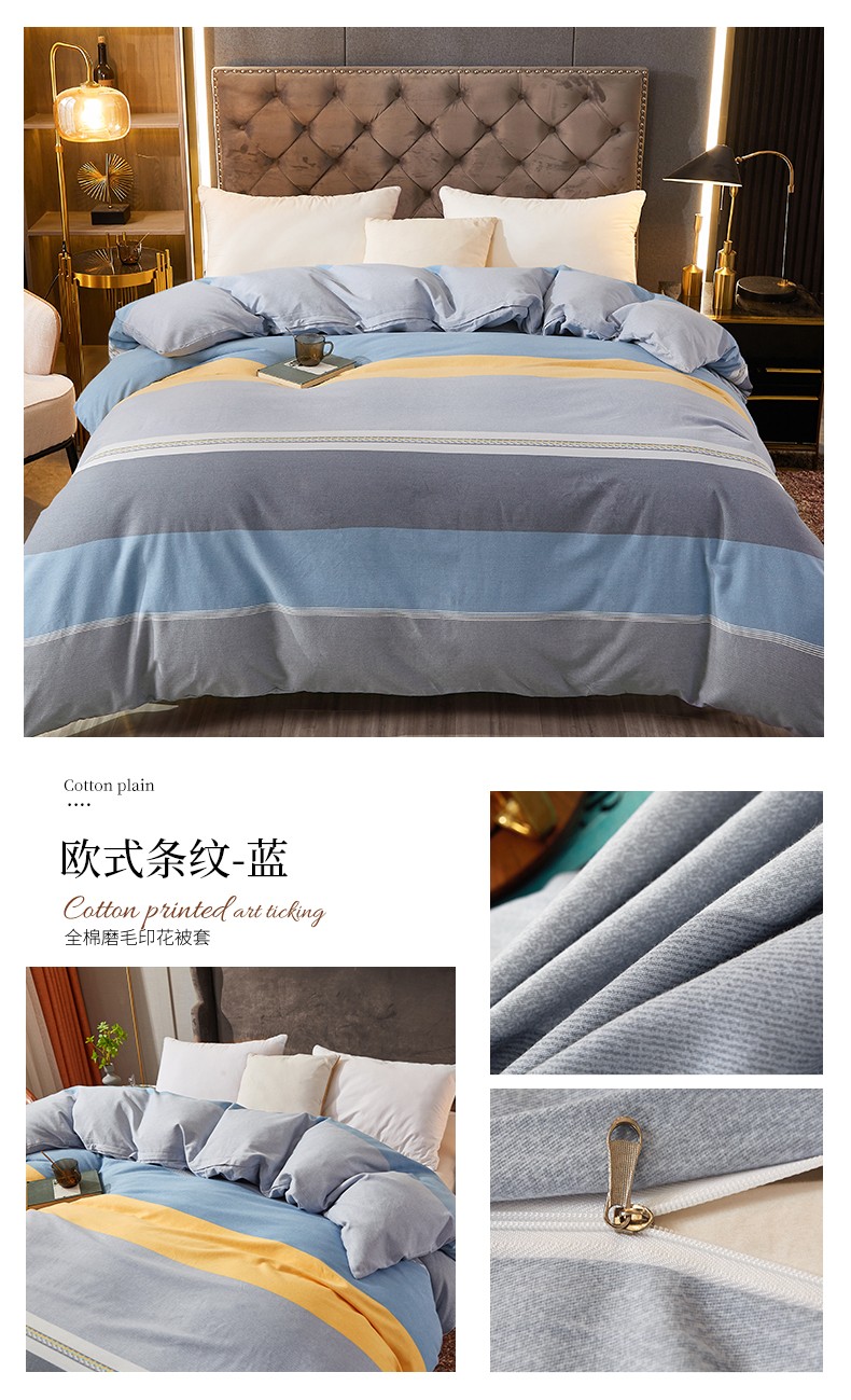 • 91家纺网 家纺一手货源 找家纺 伊而梦 2023新款全棉磨毛印花四件套系列单品被套 欧式条纹-蓝