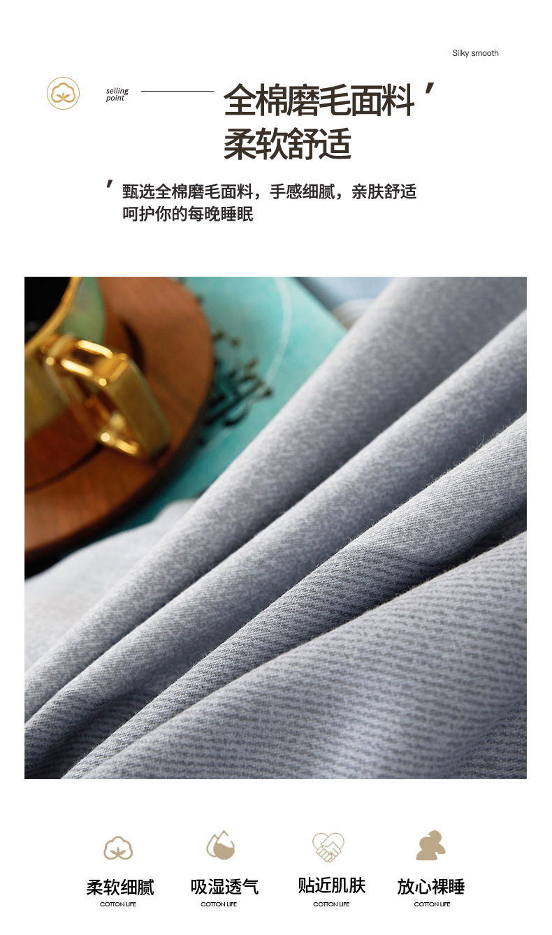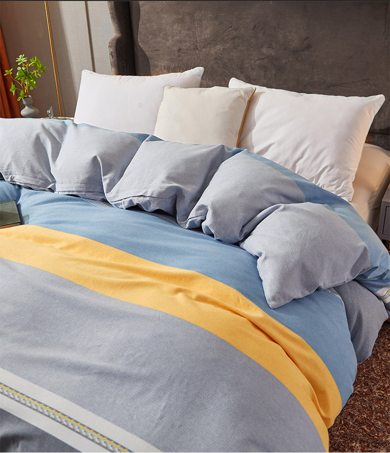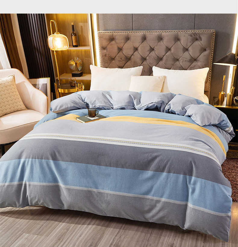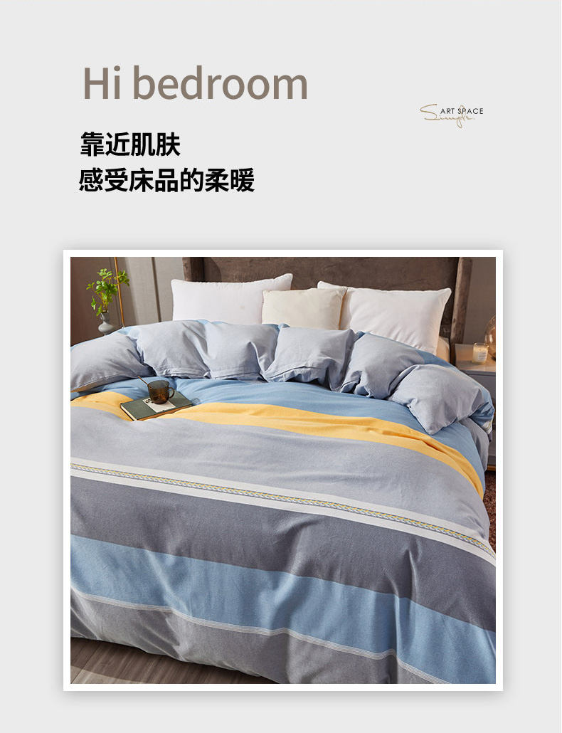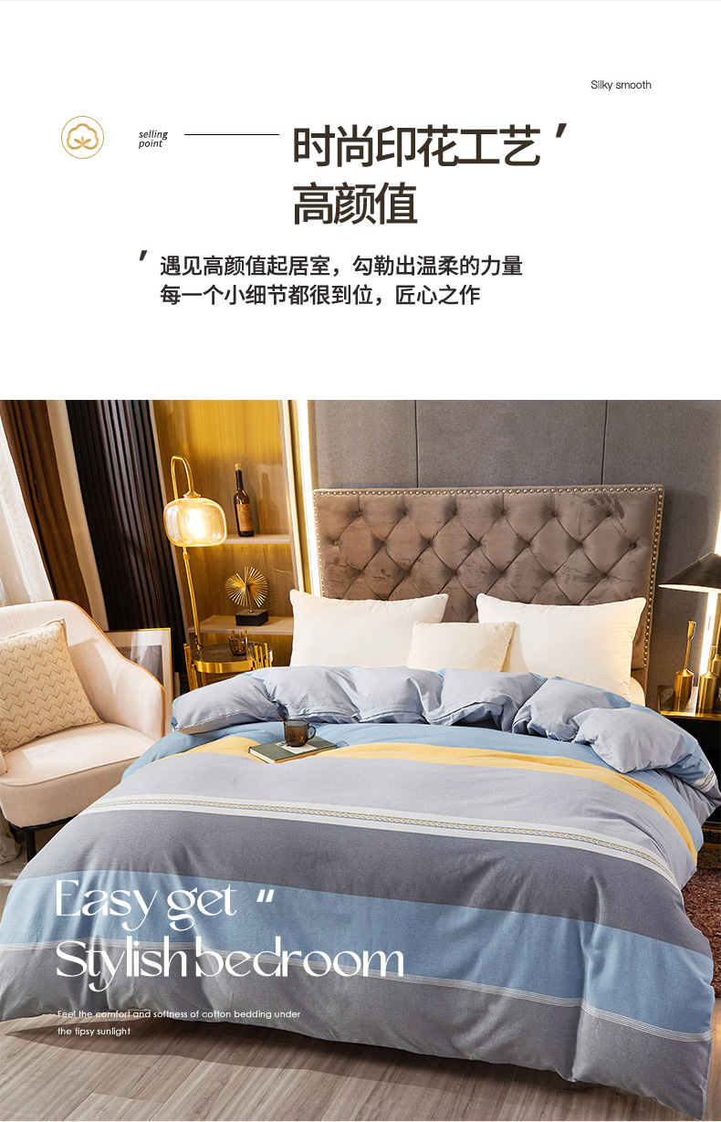 • 91家纺网 家纺一手货源 找家纺 伊而梦 2023新款全棉磨毛印花四件套系列单品被套 欧式条纹-蓝