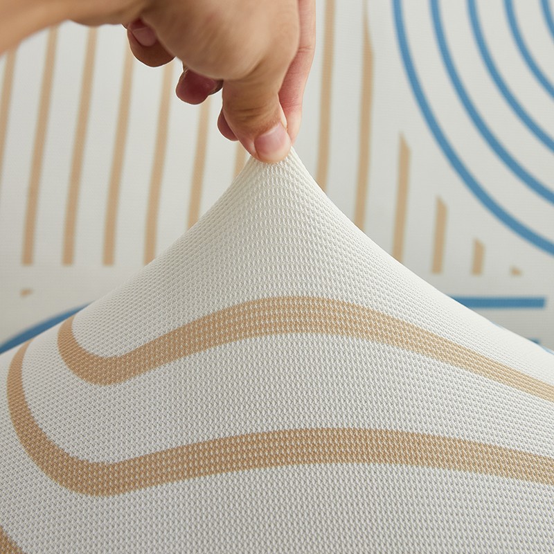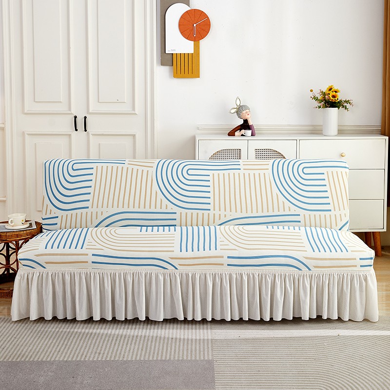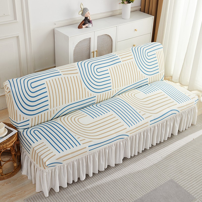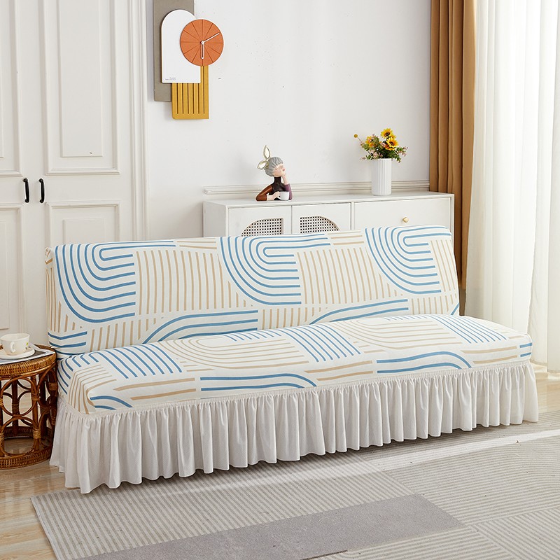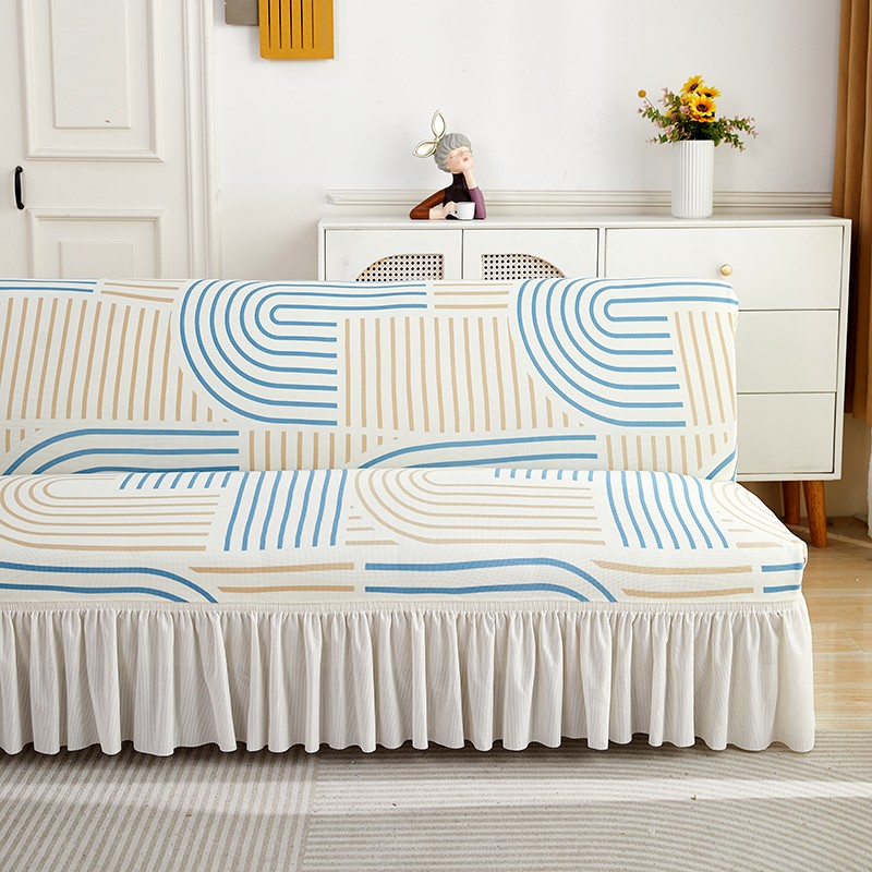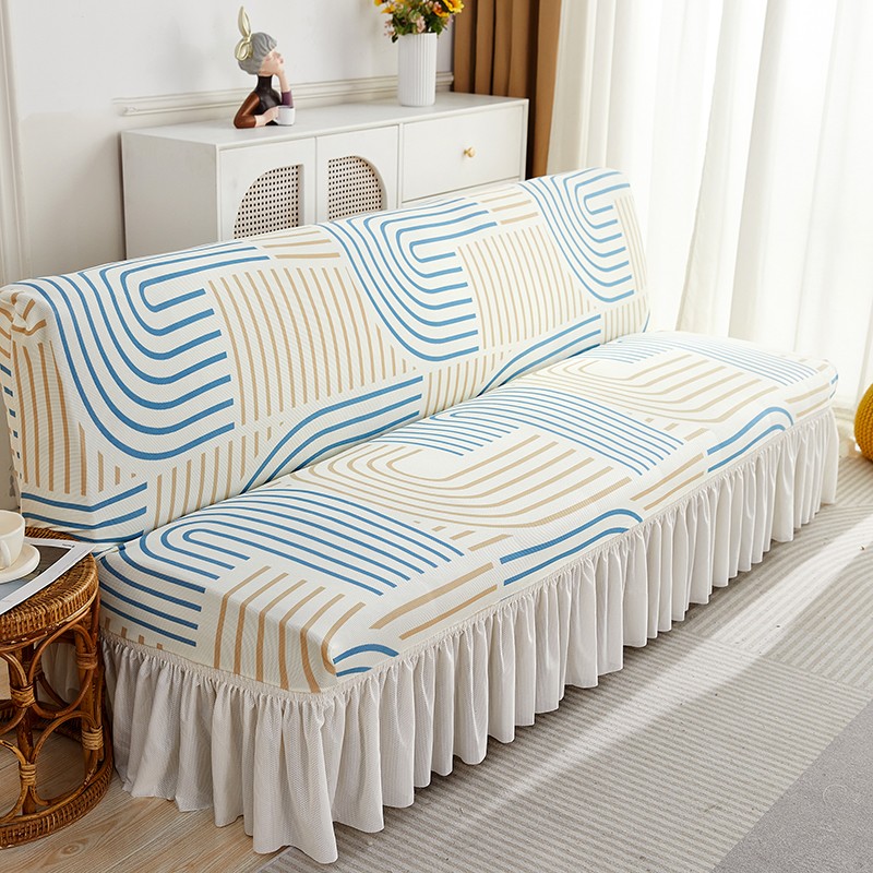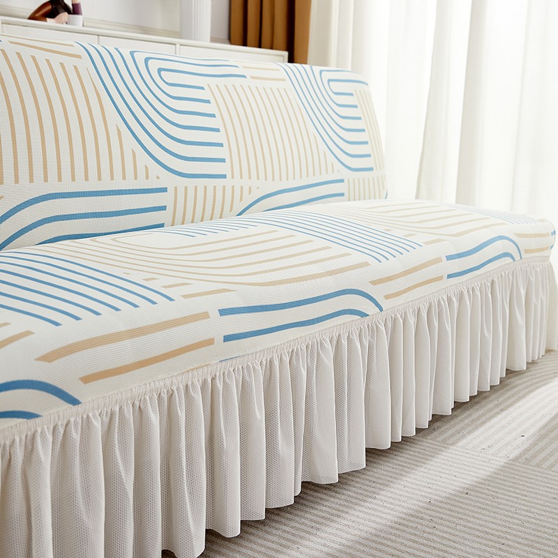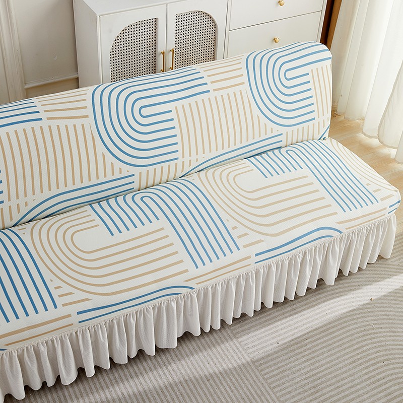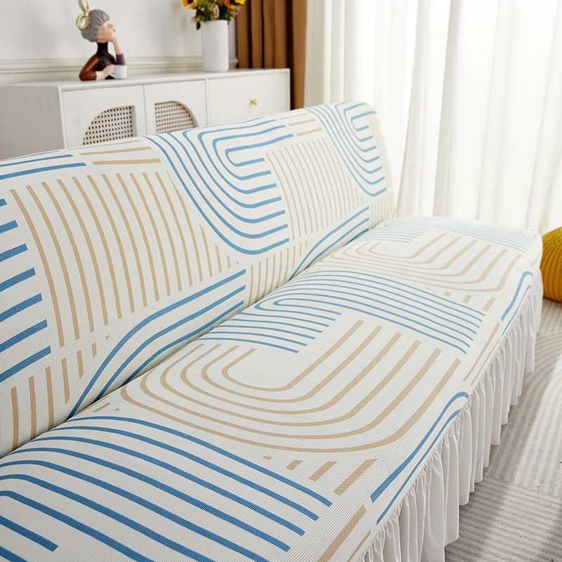 丝绮鹿 2023新款针织柔肤格沙发床套裙边款 几何-蓝