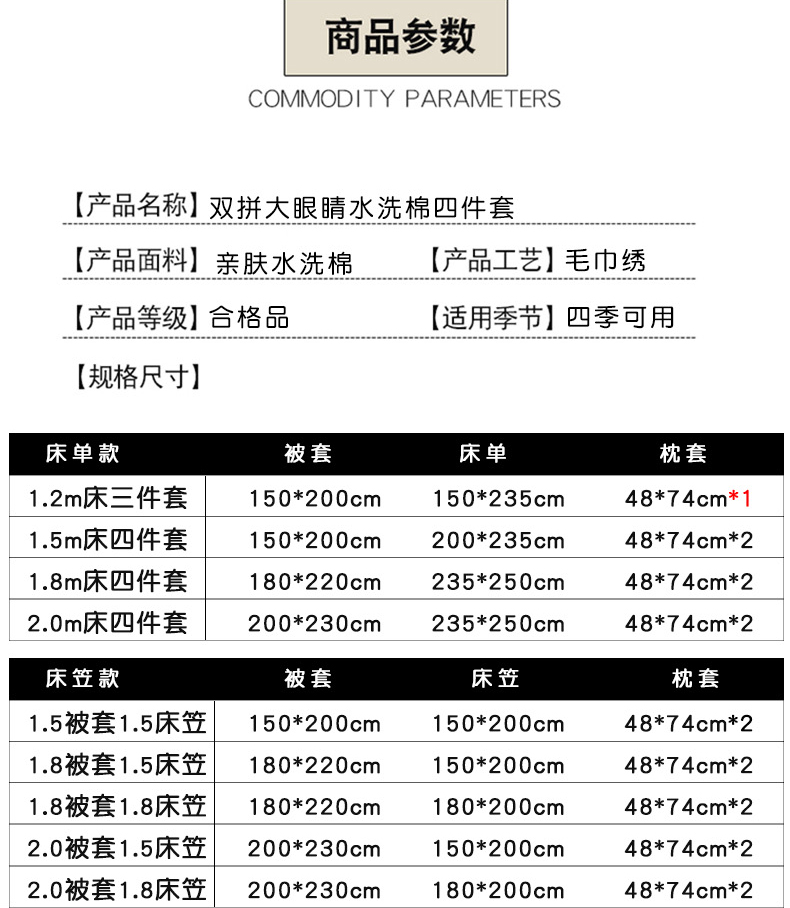 1.8m四件套(被套180*220cm) | ¥52.00 |