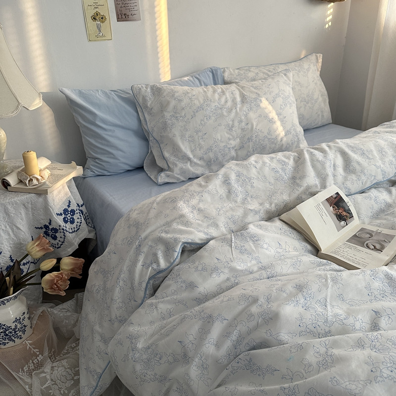 当前位置: 91家纺网 > 商品网购 > 床品套件 > 四件套 > 全棉普通四件套 > 总恋恋三季 2024新款轻法式小清新田园全棉印花嵌绳款四件套-场景一