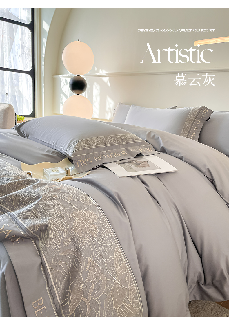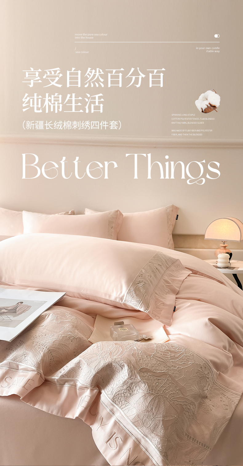 当前位置: 91家纺网 > 商品网购 > 床品套件 > 四件套 > 长绒棉四件套 > 【2024春夏爆款】100支长绒棉四件套全棉纯棉轻奢风重工刺绣纯色床单被套酒店风床上用品 清悦-燕麦奶